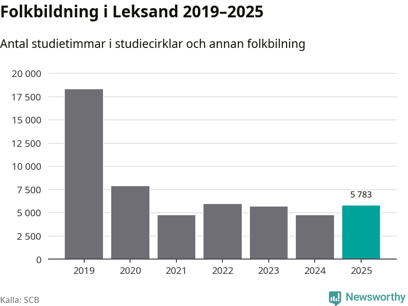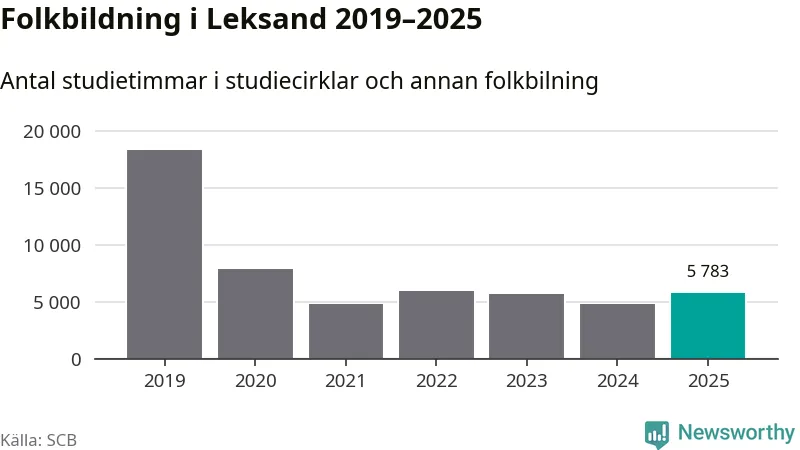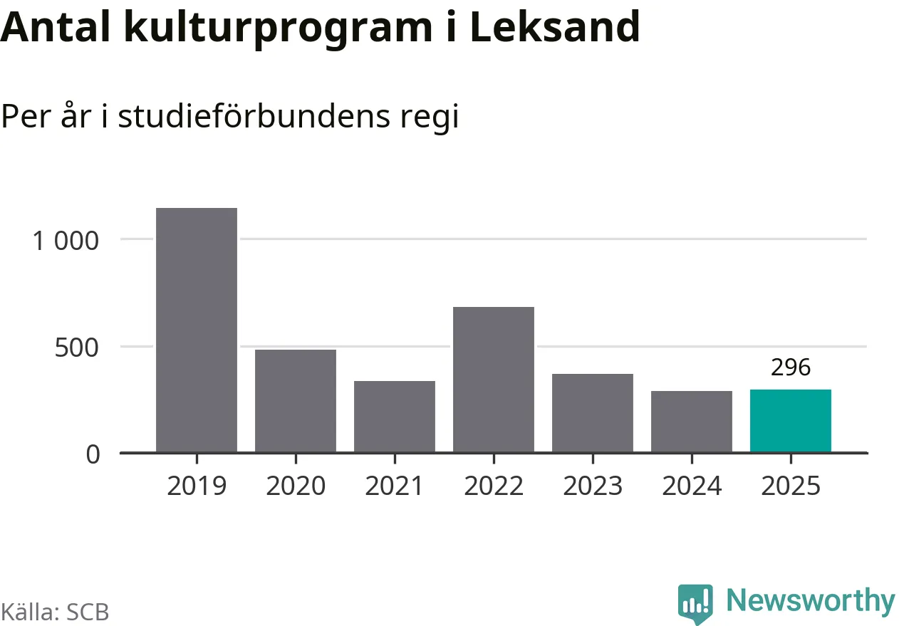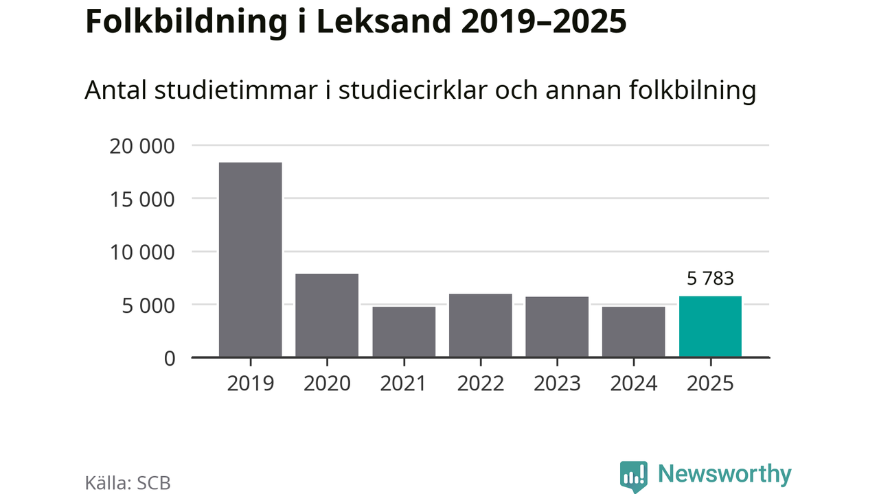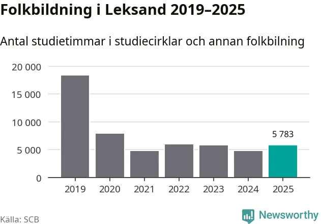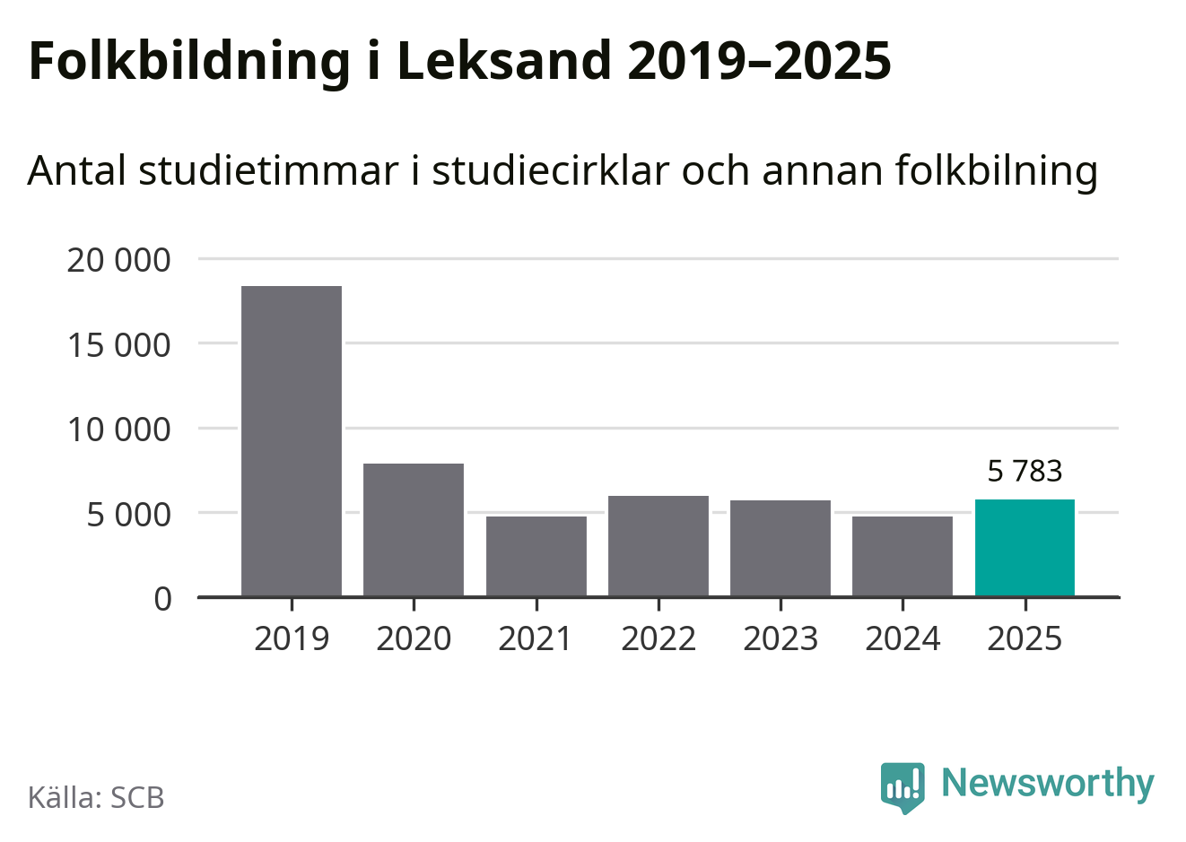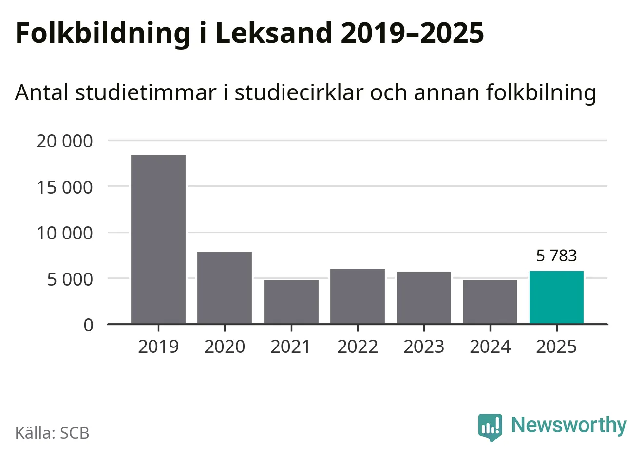 Sju av de studieförbund som 2025 fick bidrag från Folkbildningsrådet har haft någon form av verksamhet – antingen studiecirkel, annan folkbildning eller kulturprogram – i Leksand under de två senaste åren. Under 2025 ökade fem förbund antalet studietimmar i kommunen jämfört med året innan, medan Folkuniversitetet och NBV noterade färre timmar.
