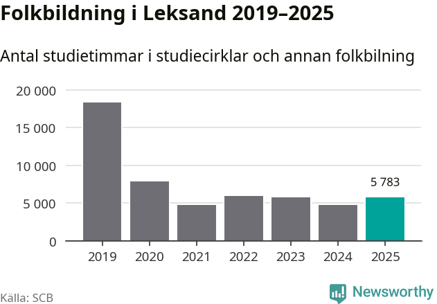 Men Leksand är en av 80 kommuner i landet där antalet studietimmar faktiskt ökade under under fjolåret. Omkring 5 800 studietimmar innebär en ökning med 21 procent jämfört med året innan. Dessutom var antalet kulturarrangemang i studieförbundens regi fler än året innan.