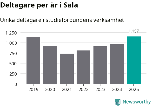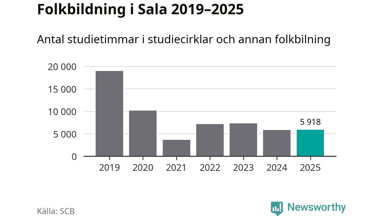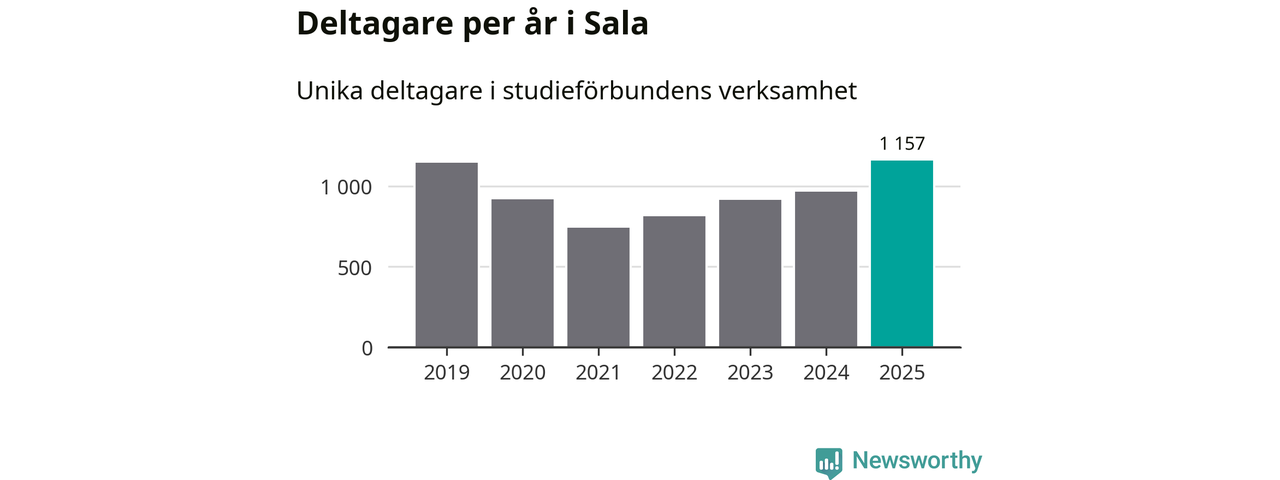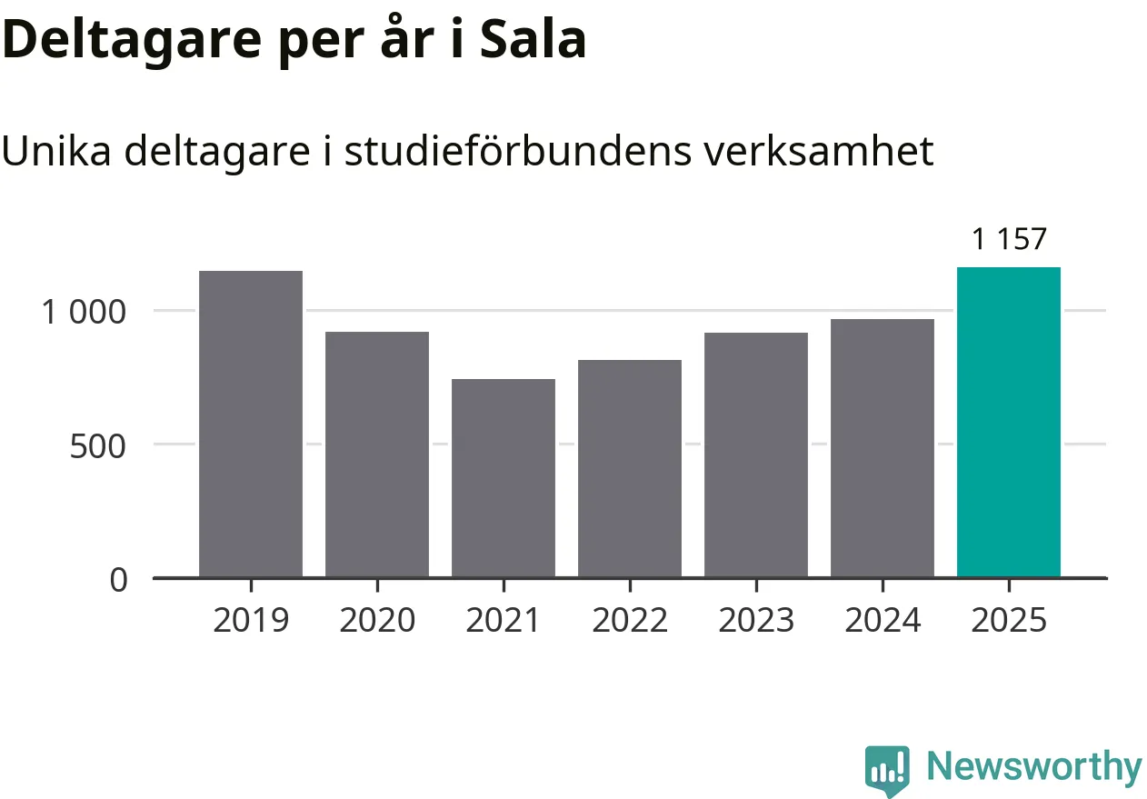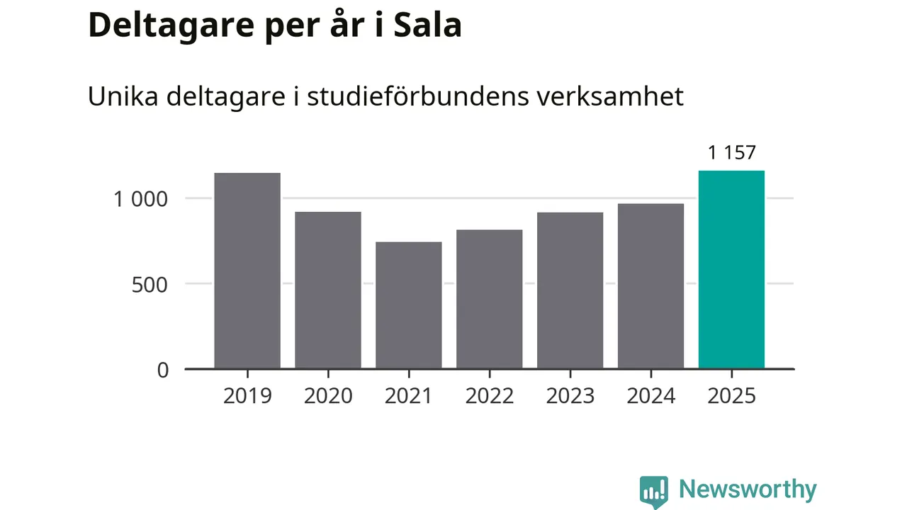 Antalet unika deltagare ökade i Sala i fjol: från 964 till 1 157 personer. Det innebär att fem procent av befolkningen i kommunen deltog i studieförbundens verksamhet under 2025, vilket är ungefär som rikssnittet.