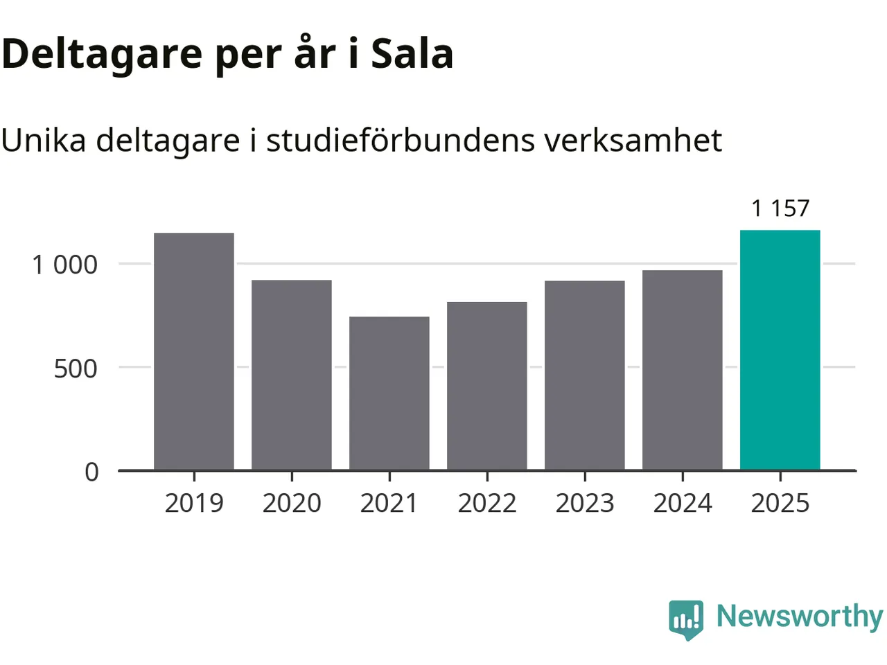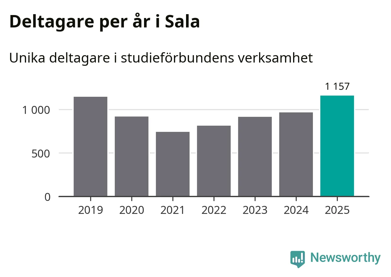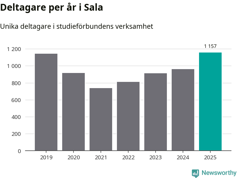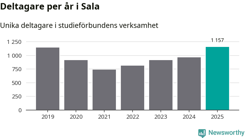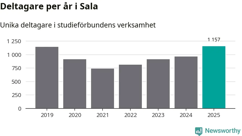 Antalet unika deltagare ökade i Sala i fjol: från 964 till 1 157 personer. Det innebär att fem procent av befolkningen i kommunen deltog i studieförbundens verksamhet under 2025, vilket är ungefär som rikssnittet.