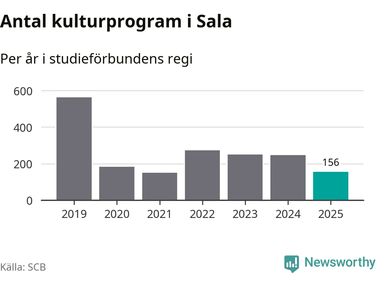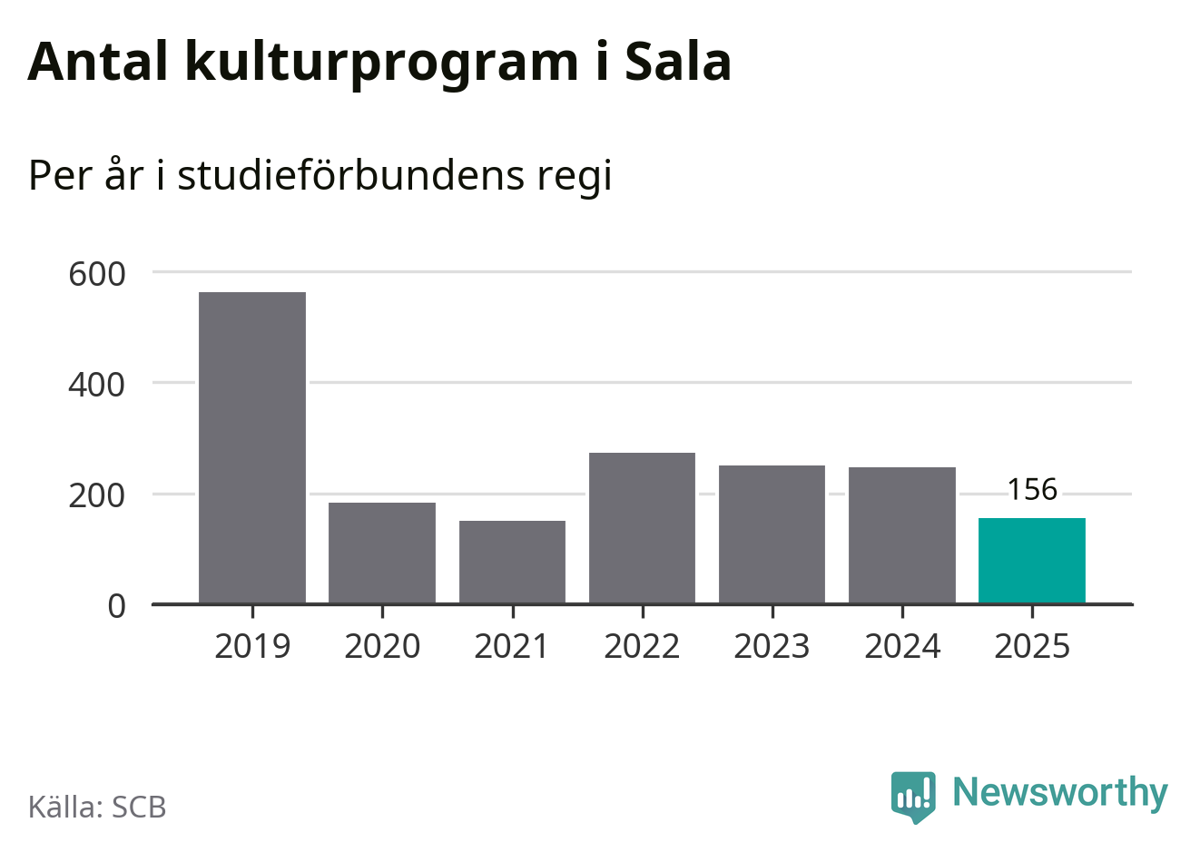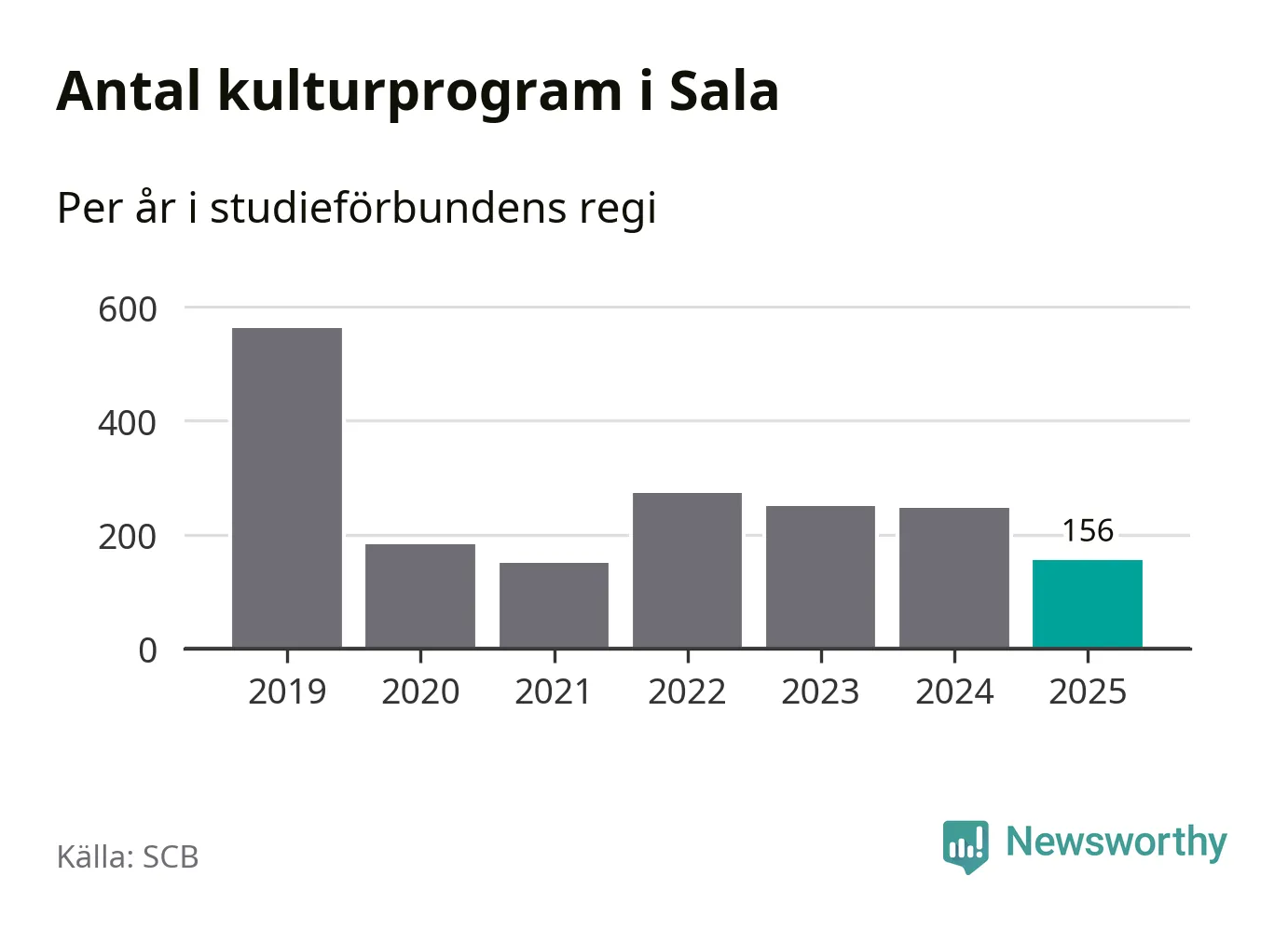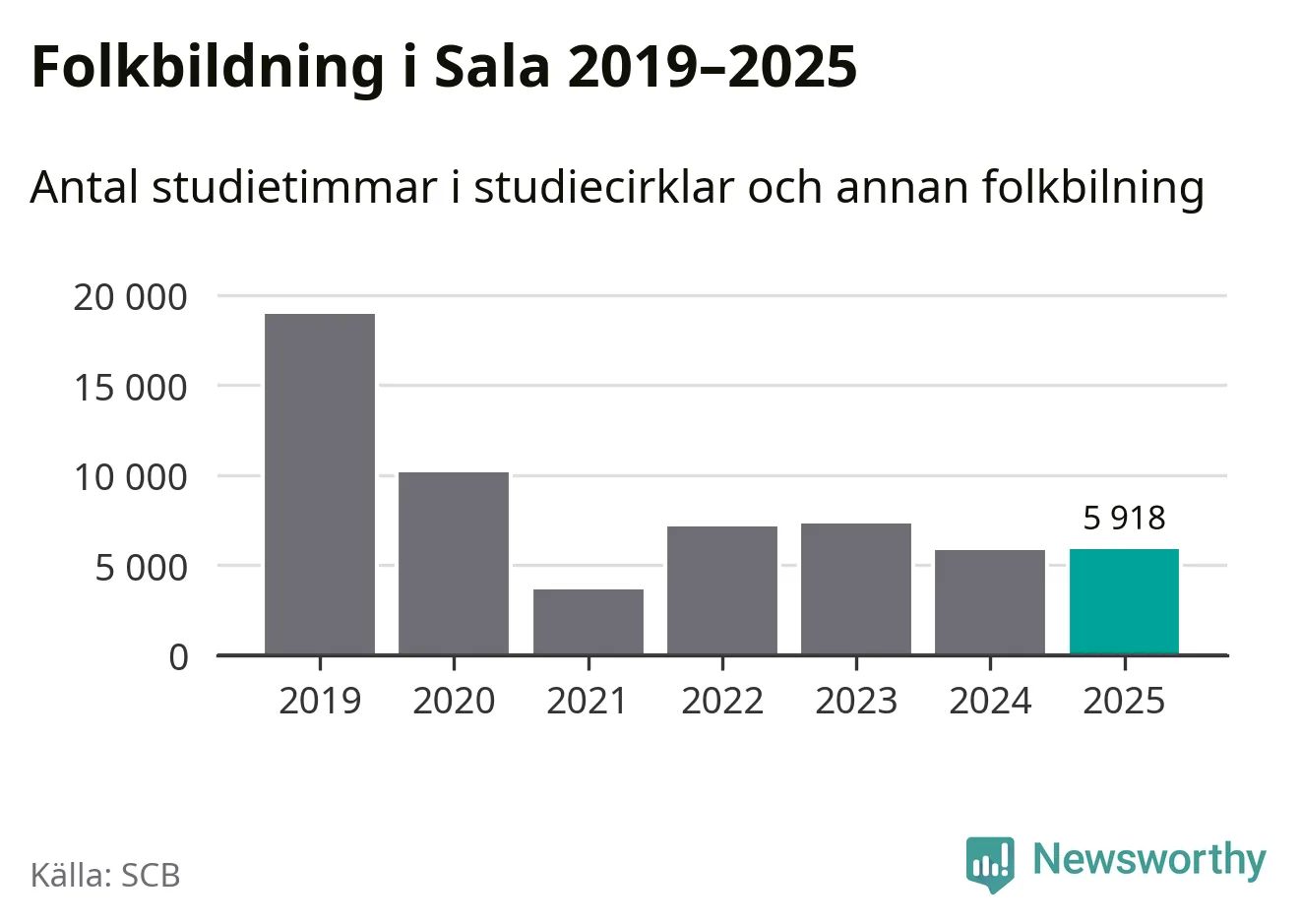 I Sala är antalet studietimmar ungefär lika många som året innan medan antalet kulturarrangemang i studieförbundens regi minskade.