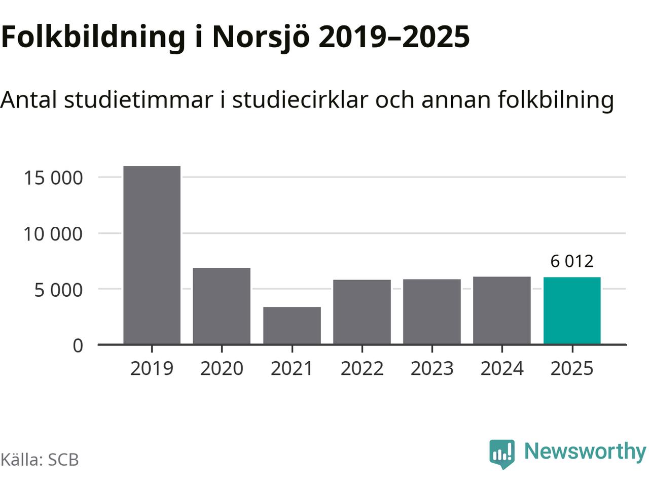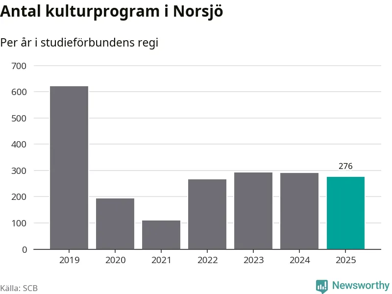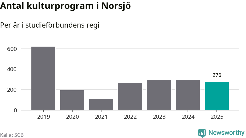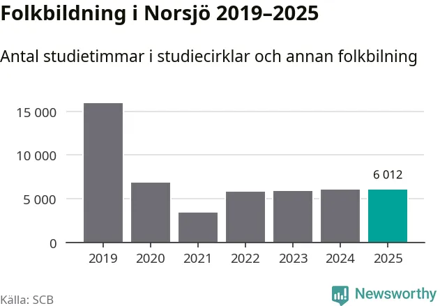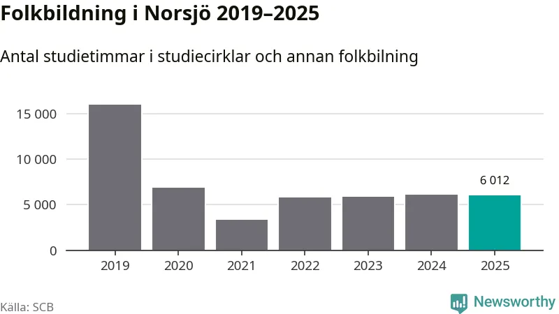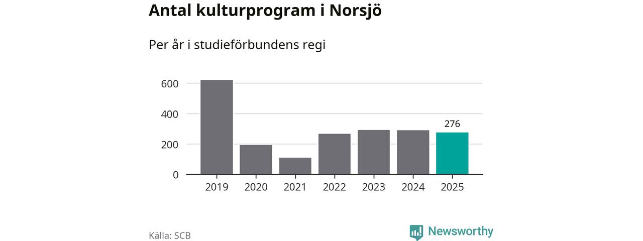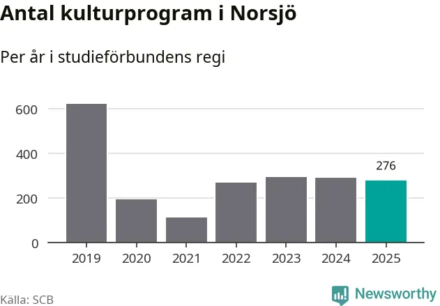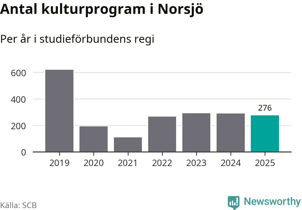 I Norsjö är antalet studietimmar nästan lika många som året innan medan antalet kulturarrangemang i studieförbundens regi minskade.