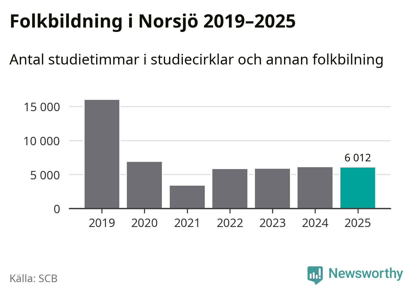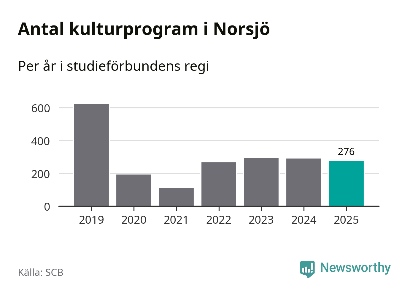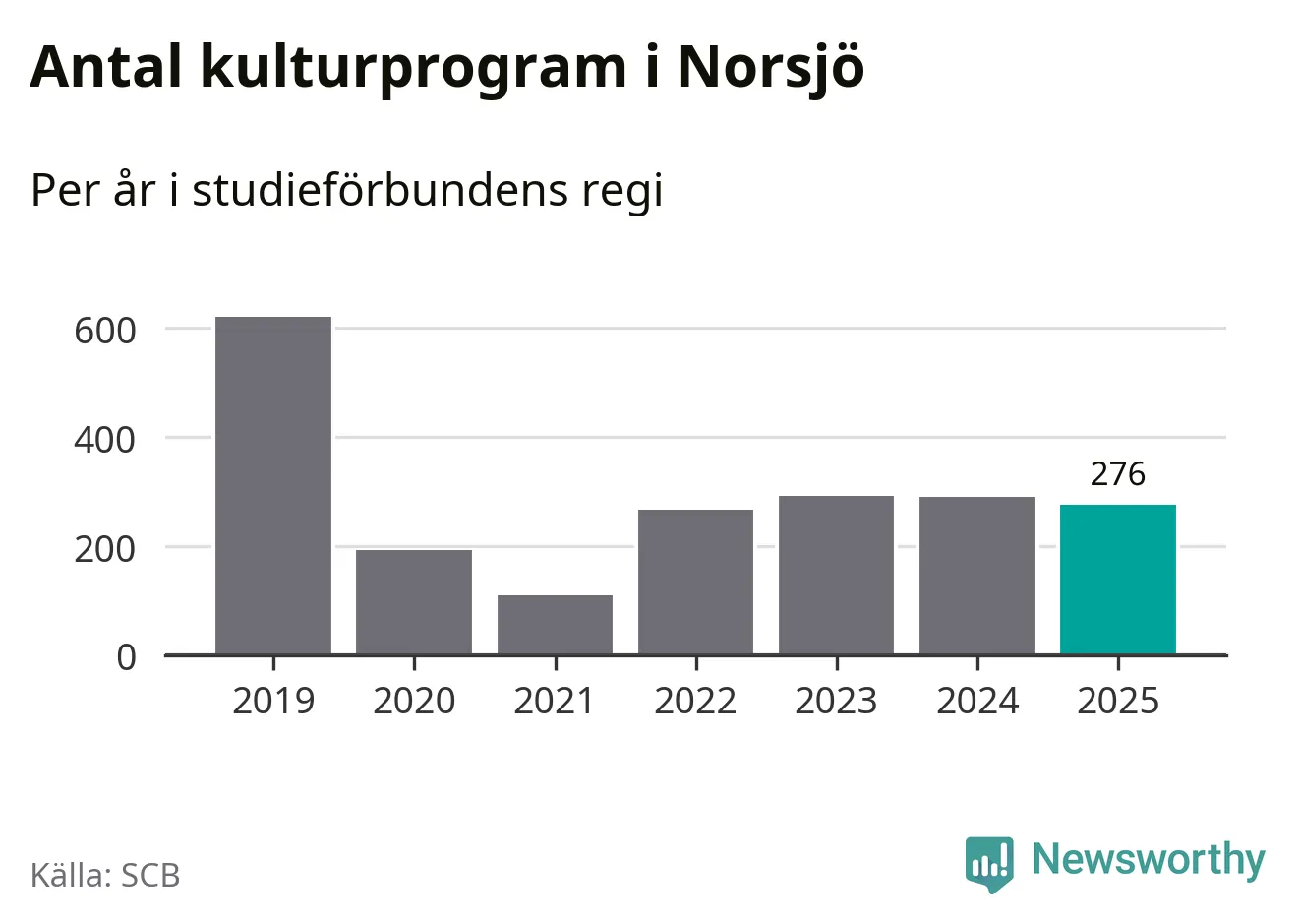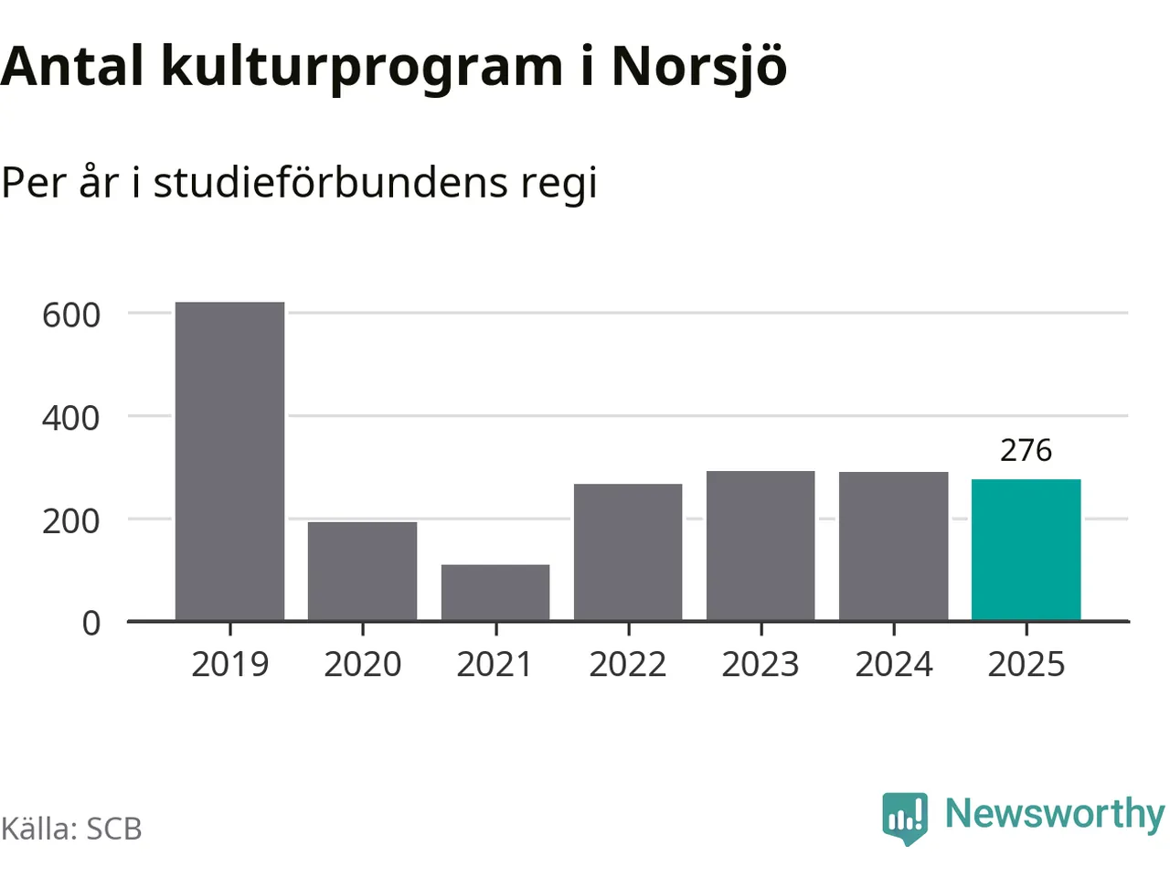I Norsjö är antalet studietimmar nästan lika många som året innan medan antalet kulturarrangemang i studieförbundens regi minskade.