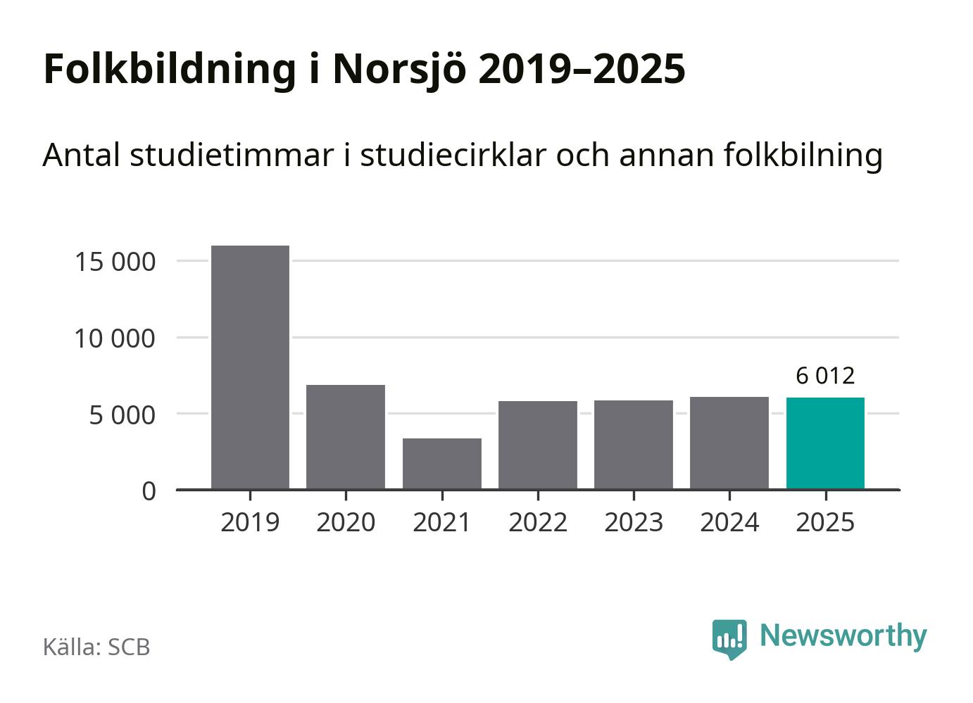 Sju av de studieförbund som 2025 fick bidrag från Folkbildningsrådet har haft någon form av verksamhet – antingen studiecirkel, annan folkbildning eller kulturprogram – i Norsjö under de två senaste åren. Under 2025 ökade Studiefrämjandet och Studieförbundet Vuxenskolan antalet studietimmar i kommunen jämfört med året innan, medan tre andra förbund i kommunen noterade färre timmar. Sensus hade ingen verksamhet i kommunen förra året.