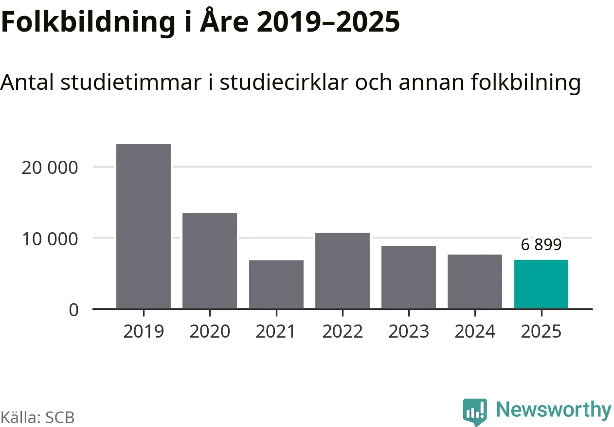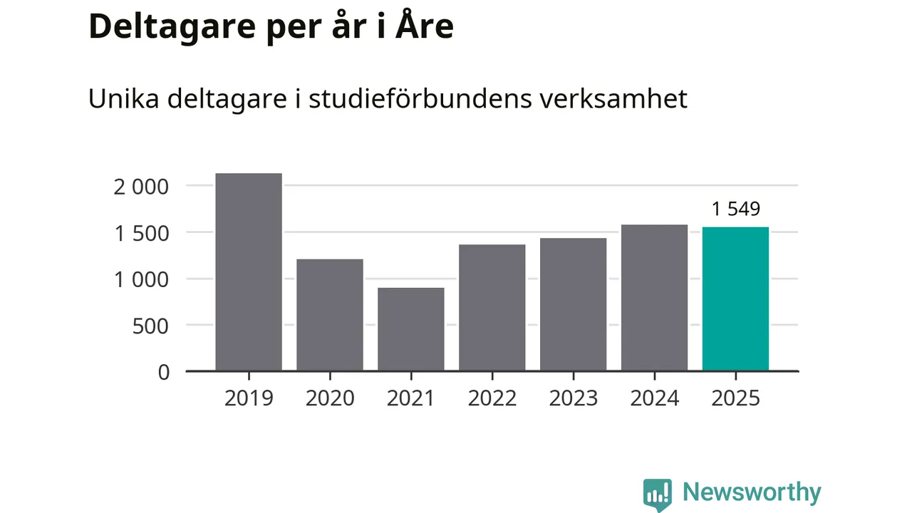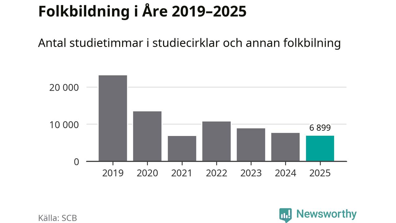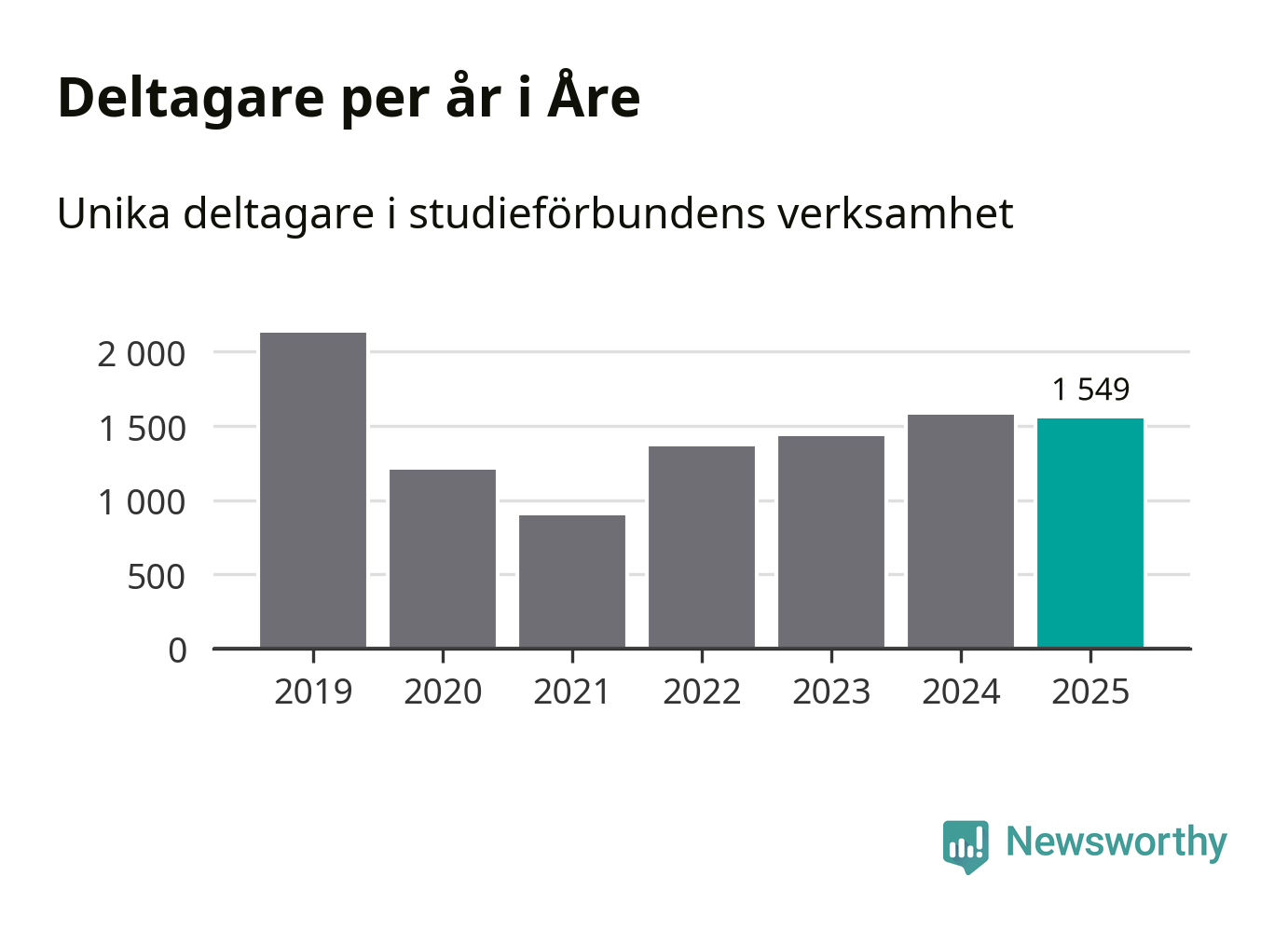 Studieförbunden drabbades hårt av pandemin. Även i Åre noterades det lägsta antalet studietimmar under 2021, som då var 71 procent färre än 2019 – vilket är ungefär samma nivå som 2025.