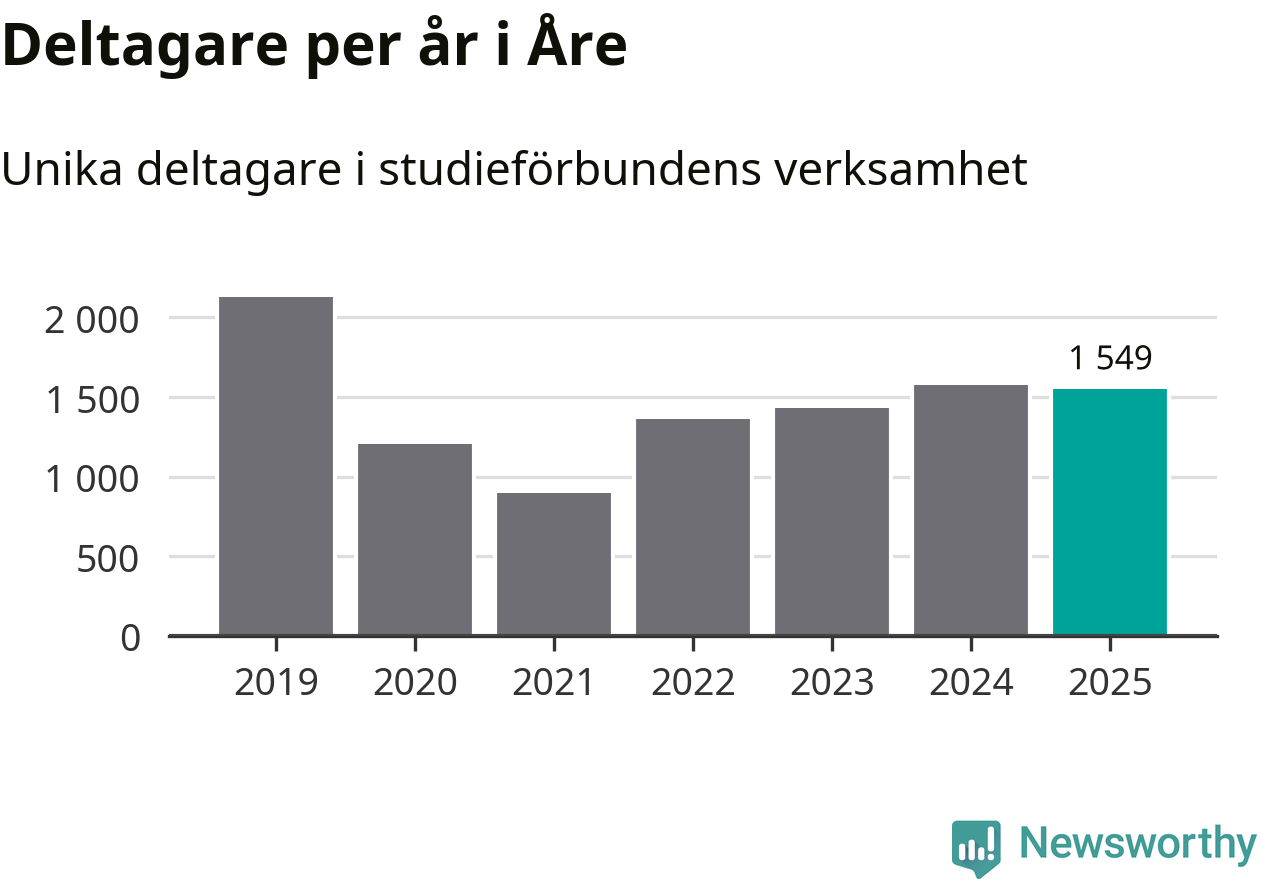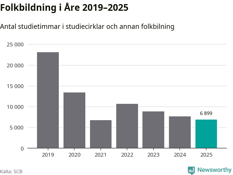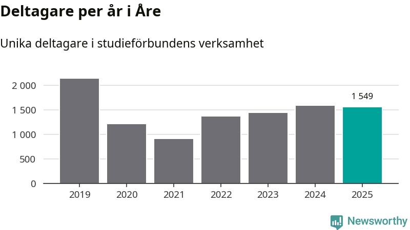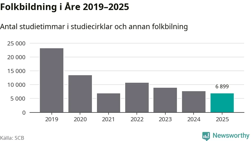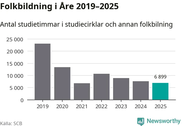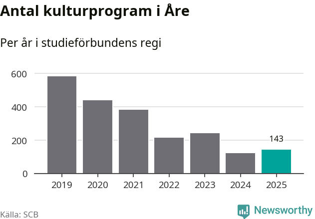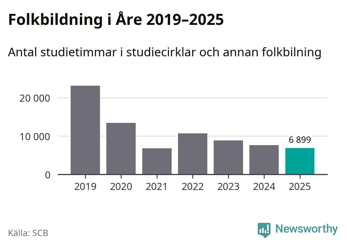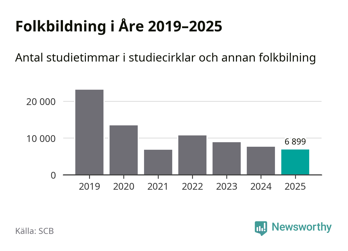 Studieförbunden drabbades hårt av pandemin. Även i Åre noterades det lägsta antalet studietimmar under 2021, som då var 71 procent färre än 2019 – vilket är ungefär samma nivå som 2025.