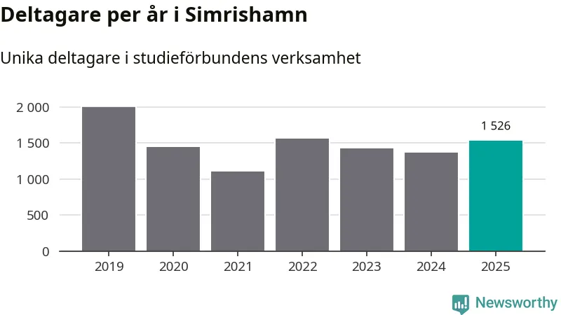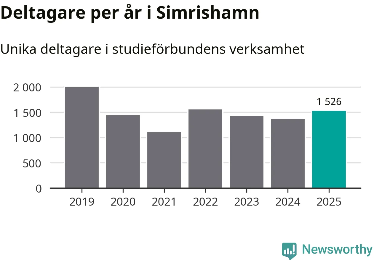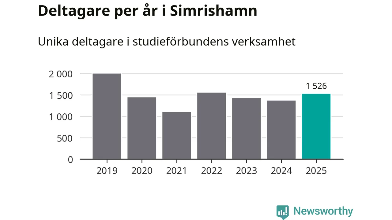 Antalet unika deltagare ökade i Simrishamn i fjol: från 1 367 till 1 526 personer. Det innebär att åtta procent av befolkningen i kommunen deltog i studieförbundens verksamhet under 2025, vilket är högre än rikssnittet.
