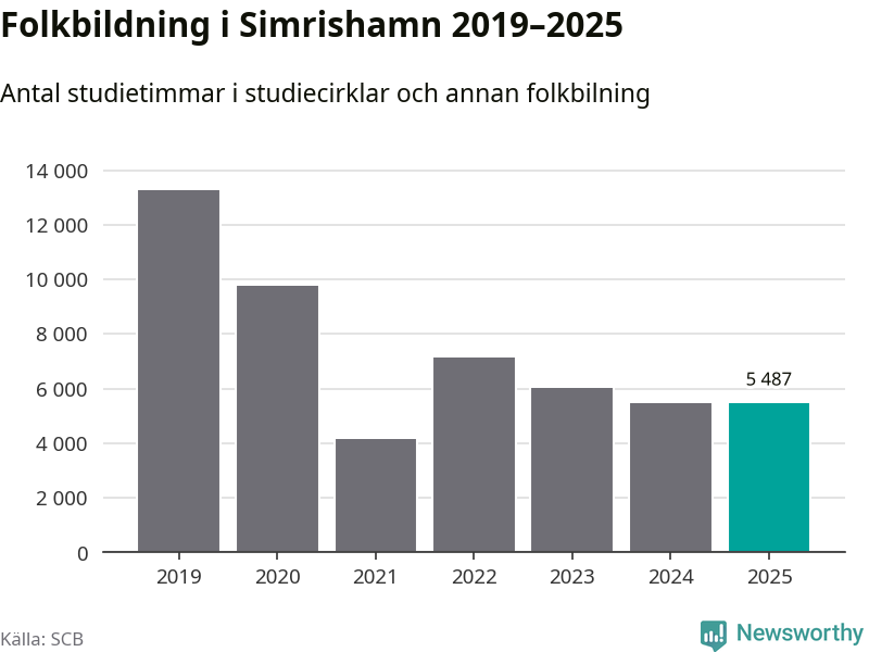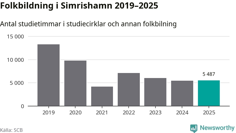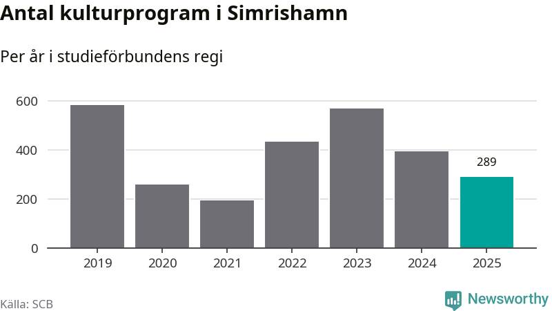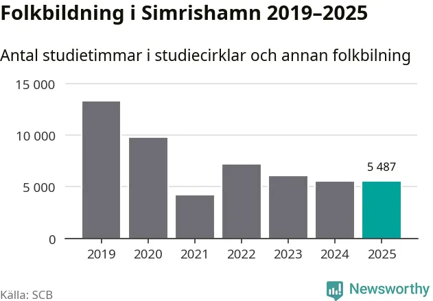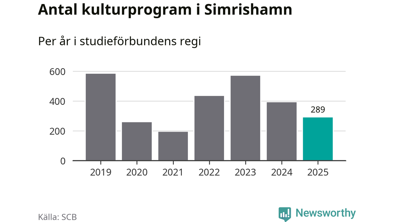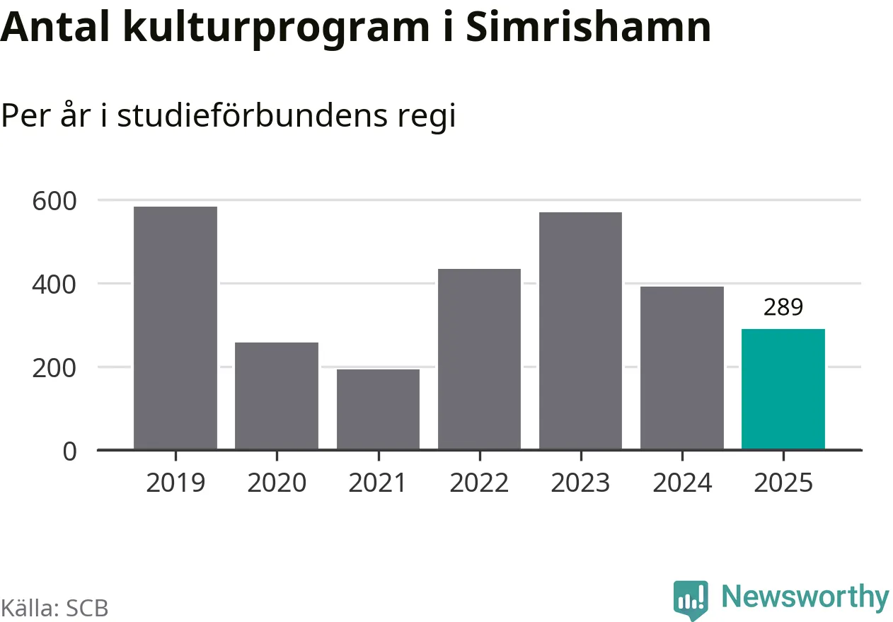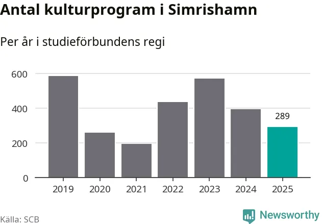I Simrishamn är antalet studietimmar nästan lika många som året innan medan antalet kulturarrangemang i studieförbundens regi minskade.