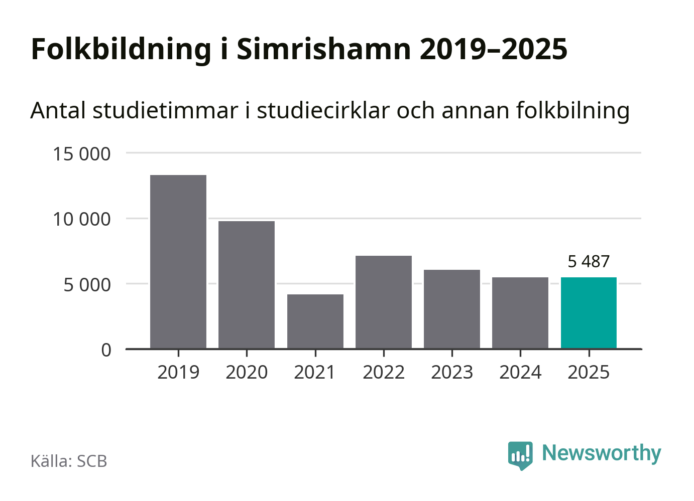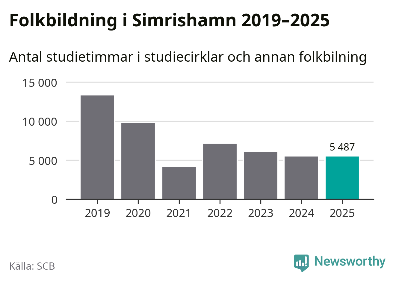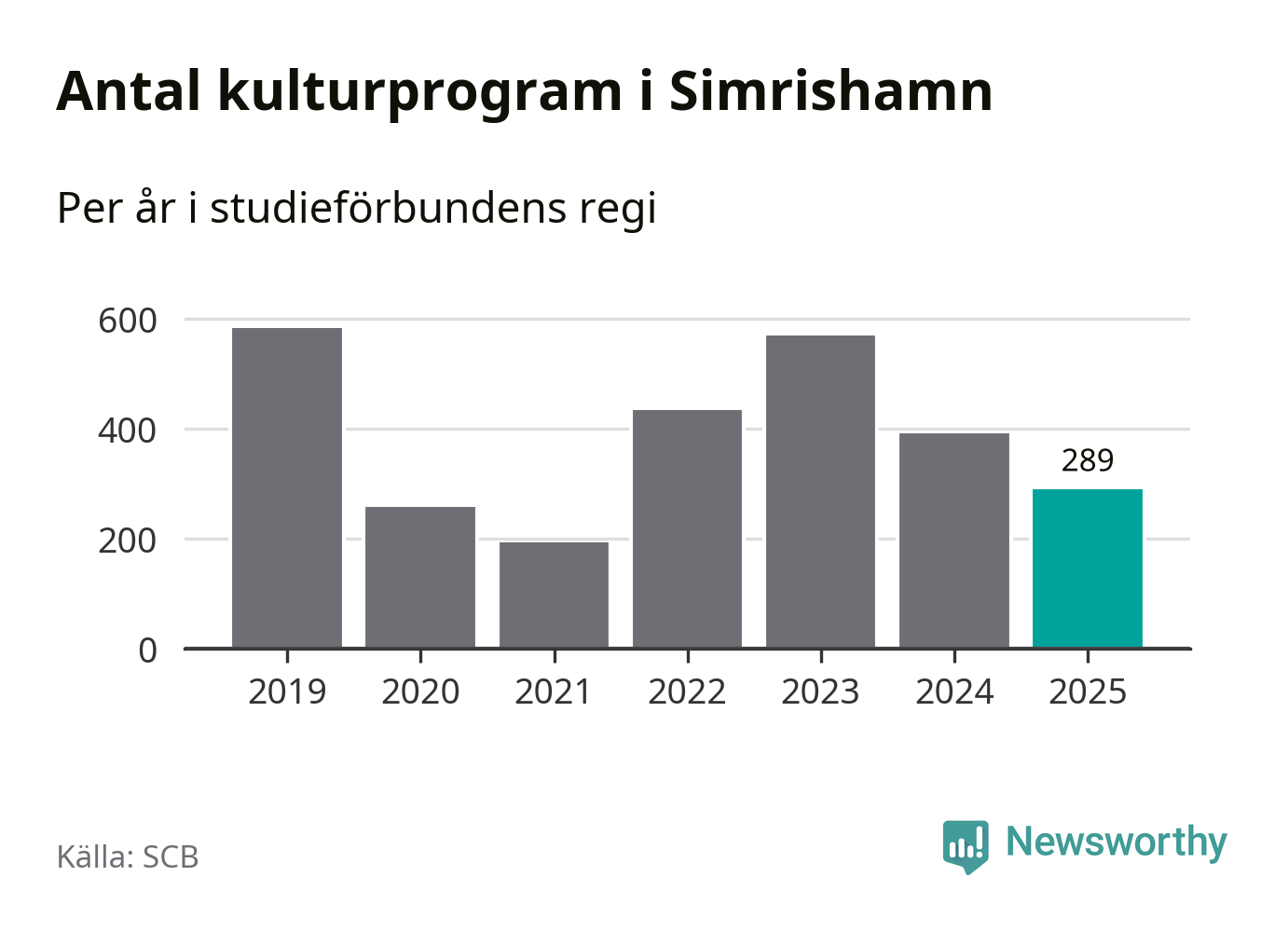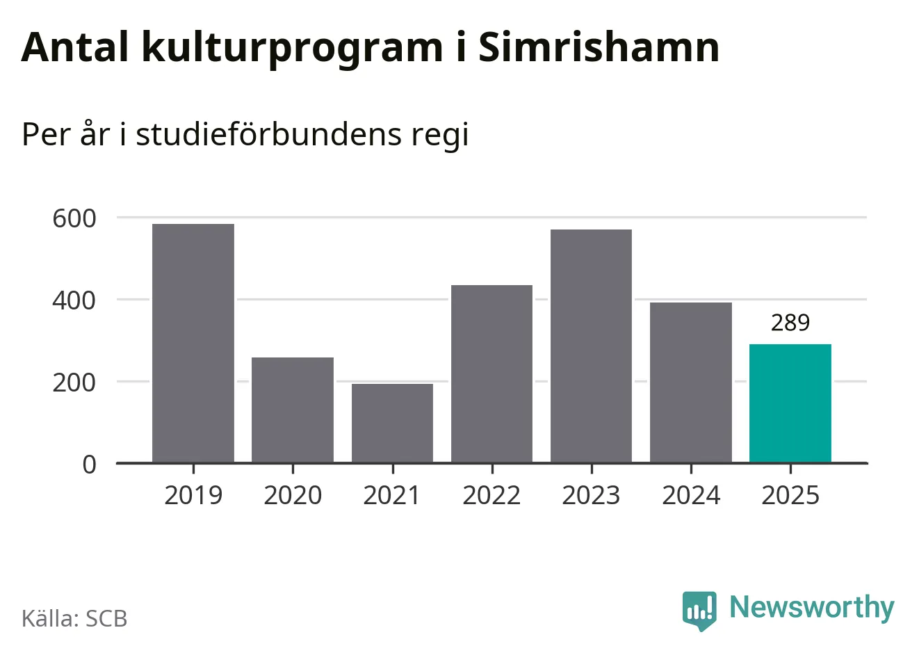 I Simrishamn är antalet studietimmar nästan lika många som året innan medan antalet kulturarrangemang i studieförbundens regi minskade.