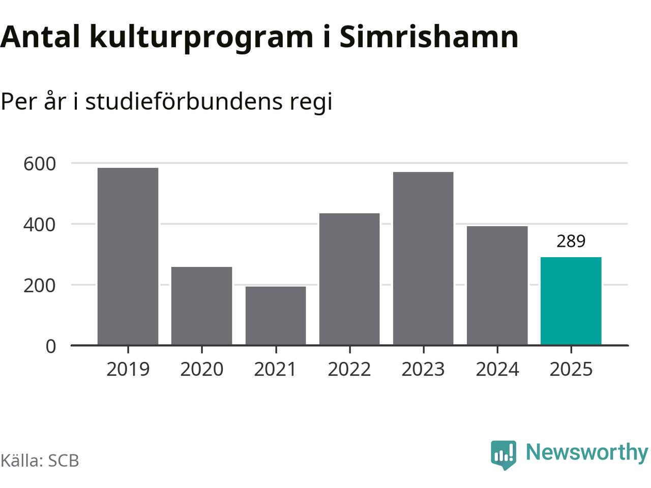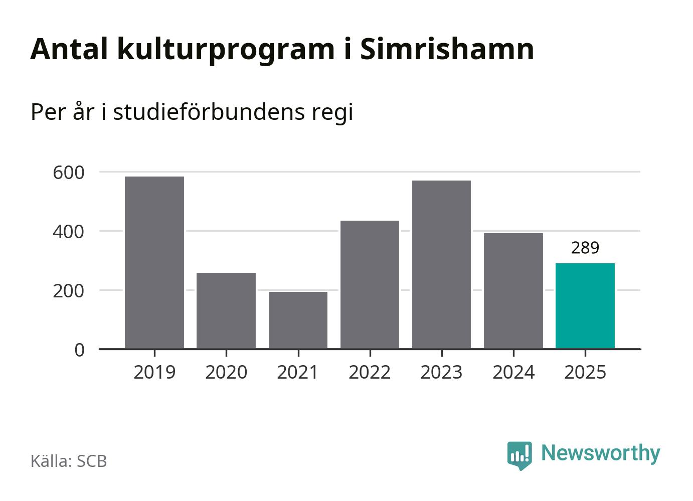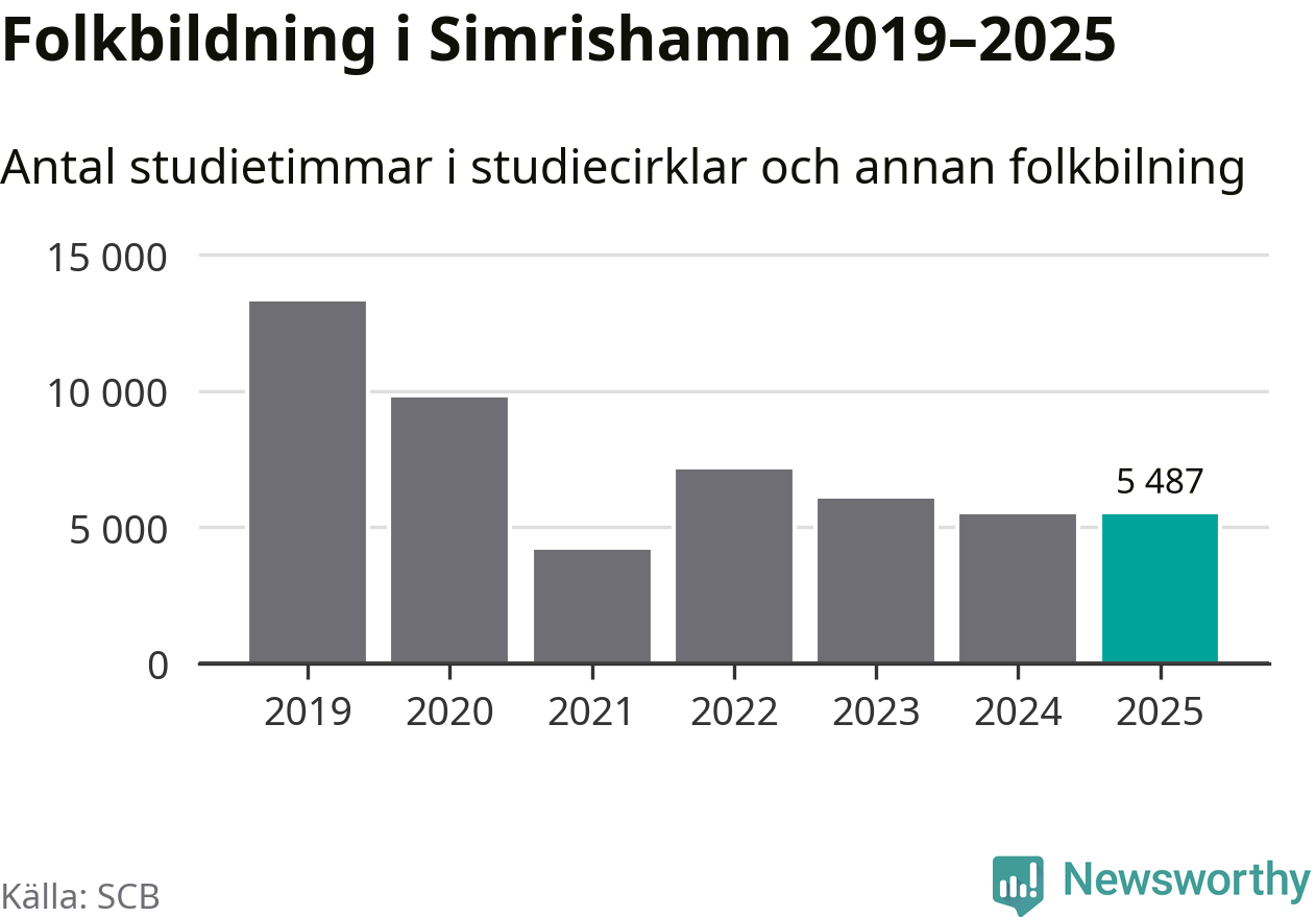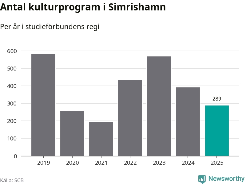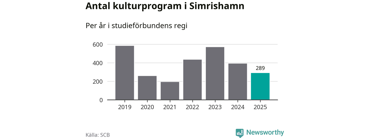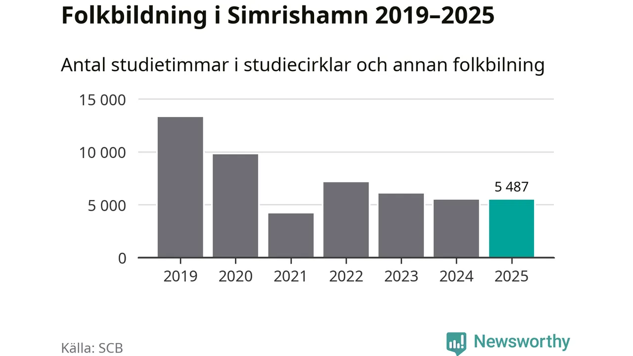 Åtta av de studieförbund som 2025 fick bidrag från Folkbildningsrådet har haft någon form av verksamhet – antingen studiecirkel, annan folkbildning eller kulturprogram – i Simrishamn under de två senaste åren. Under 2025 ökade Sensus och Studieförbundet Vuxenskolan antalet studietimmar i kommunen jämfört med året innan, medan fem andra förbund i kommunen noterade färre timmar.