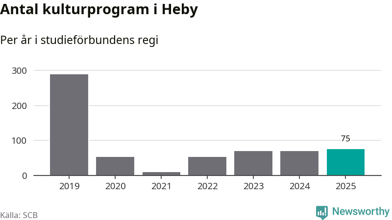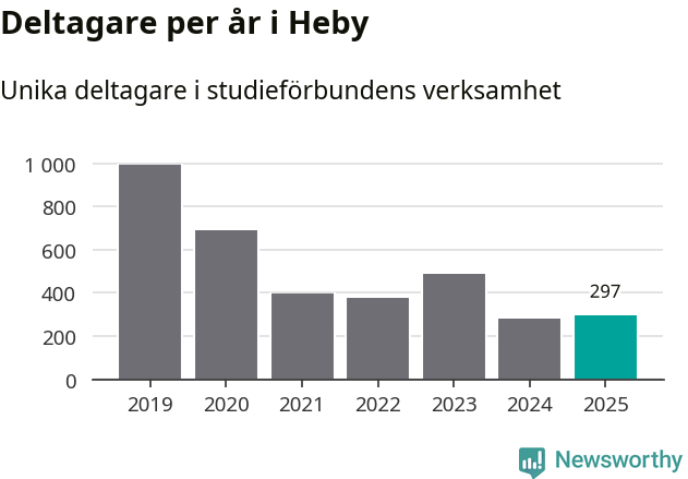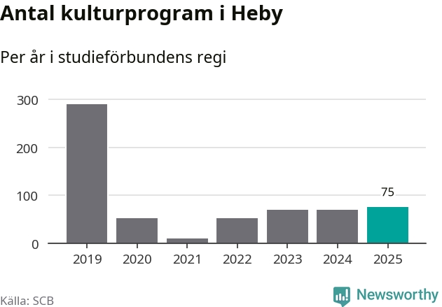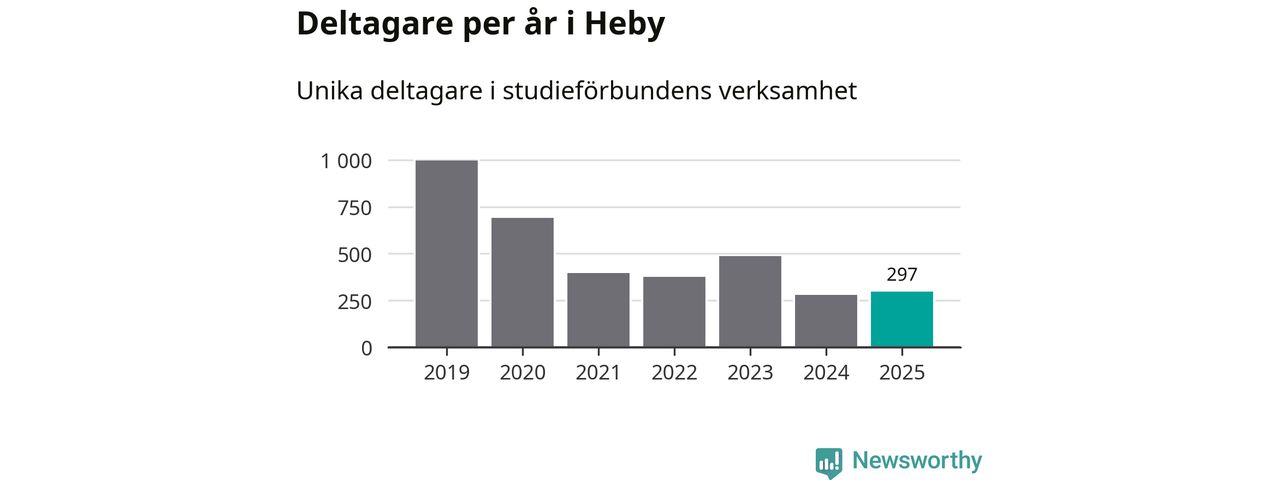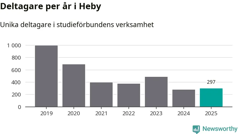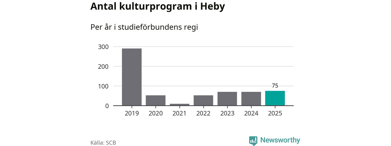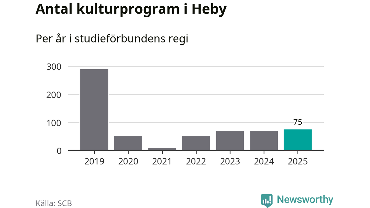 Antalet unika deltagare ökade i Heby i fjol: från 279 till 297 personer. Det innebär att två procent av befolkningen i kommunen deltog i studieförbundens verksamhet under 2025. Det är den näst lägsta andelen i Uppsala län.