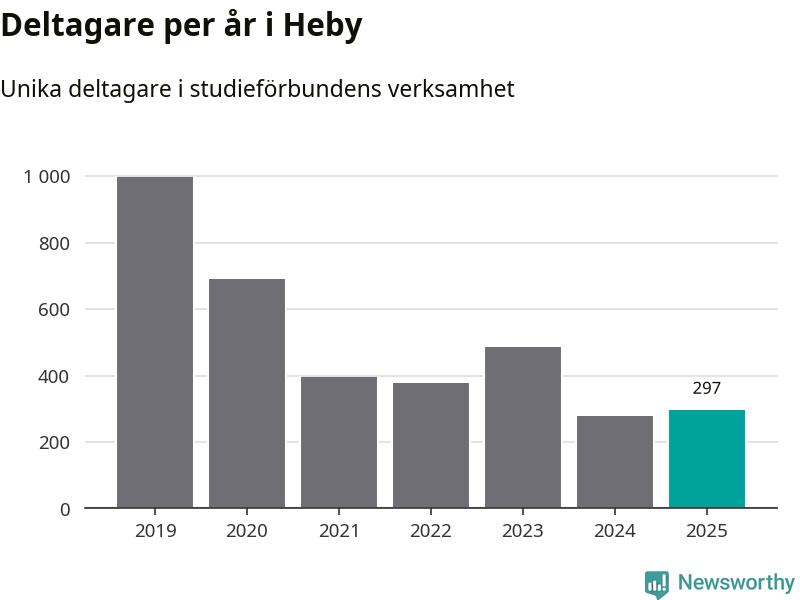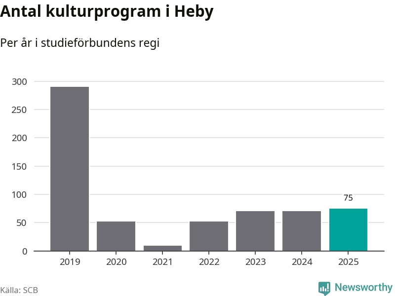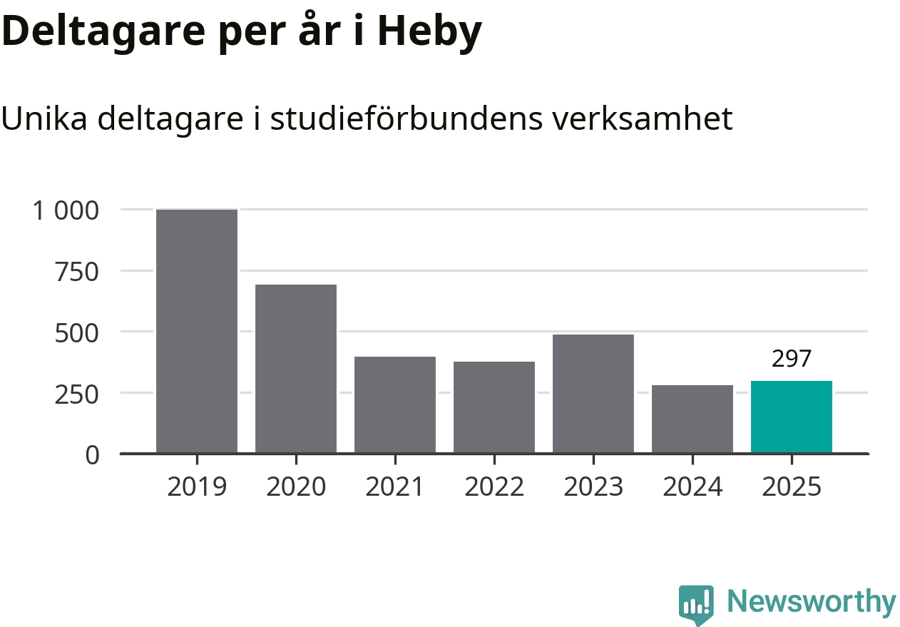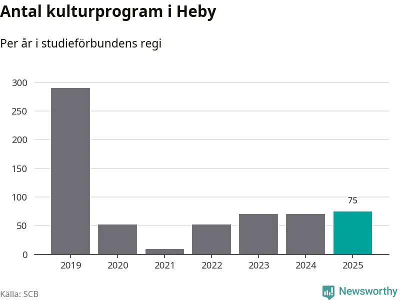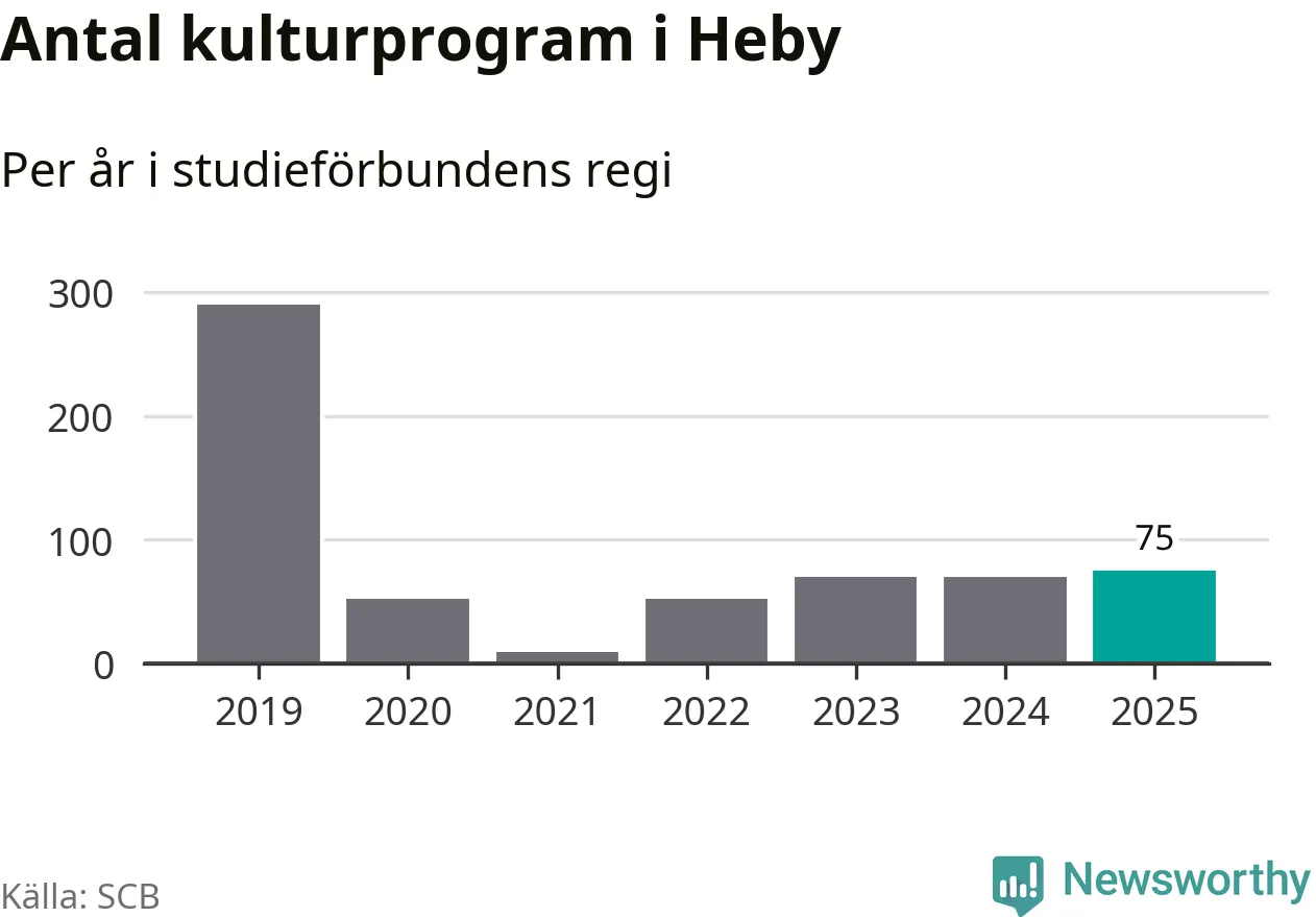 Antalet unika deltagare ökade i Heby i fjol: från 279 till 297 personer. Det innebär att två procent av befolkningen i kommunen deltog i studieförbundens verksamhet under 2025. Det är den näst lägsta andelen i Uppsala län.