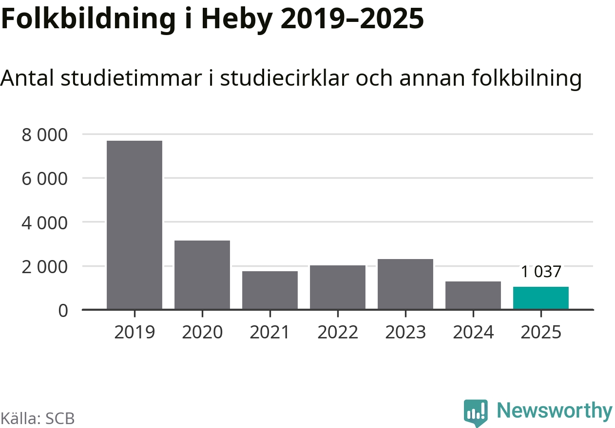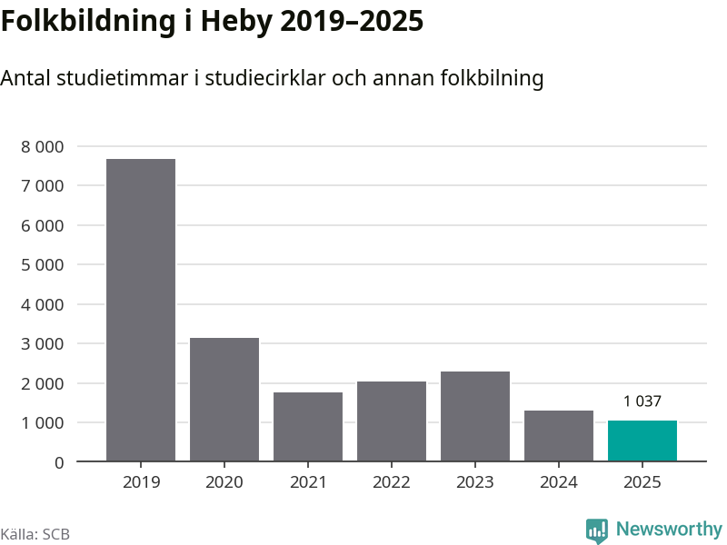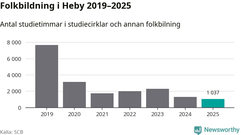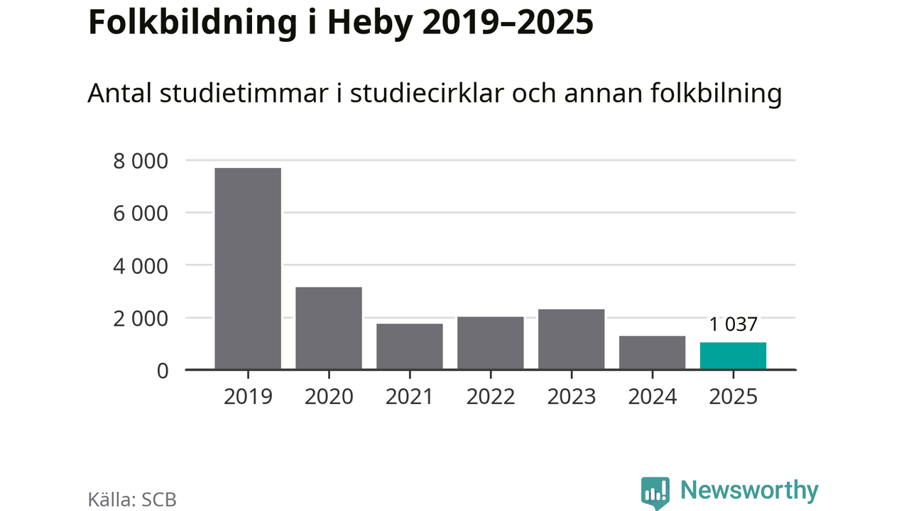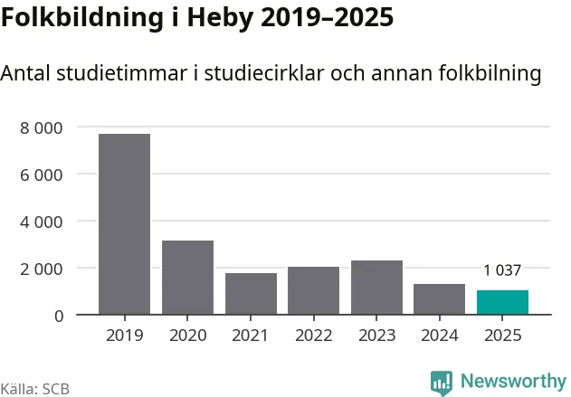 Studieförbunden drabbades hårt av pandemin. Även i Heby noterades det lägsta antalet studietimmar under 2021, som då var 77 procent färre än 2019 – vilket fortfarande är fler än 2025.