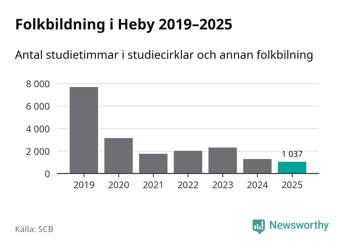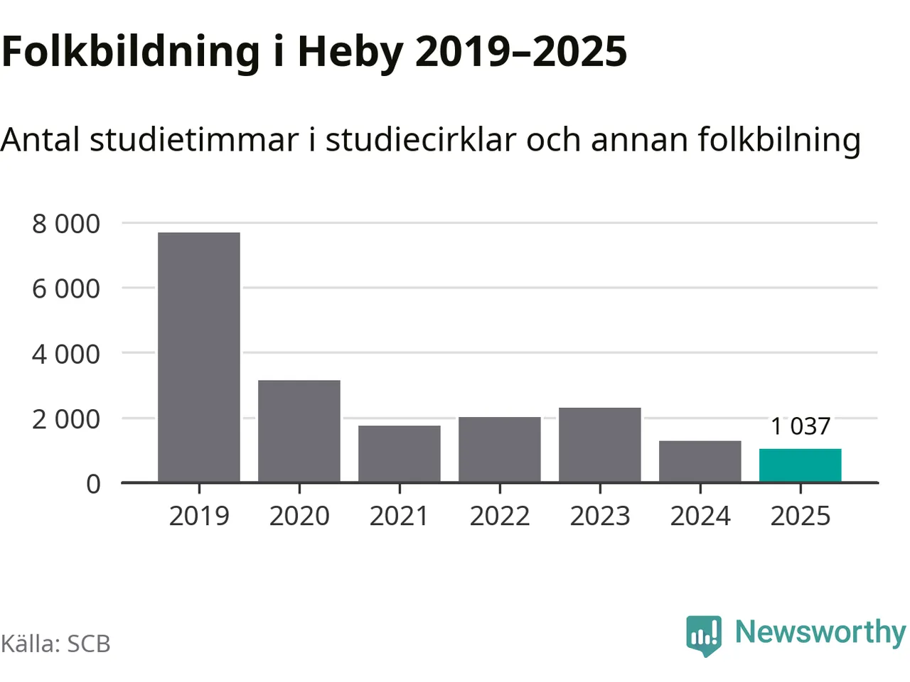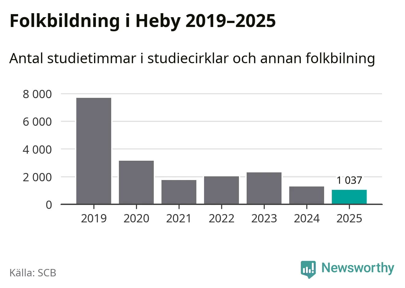 Studieförbunden drabbades hårt av pandemin. Även i Heby noterades det lägsta antalet studietimmar under 2021, som då var 77 procent färre än 2019 – vilket fortfarande är fler än 2025.