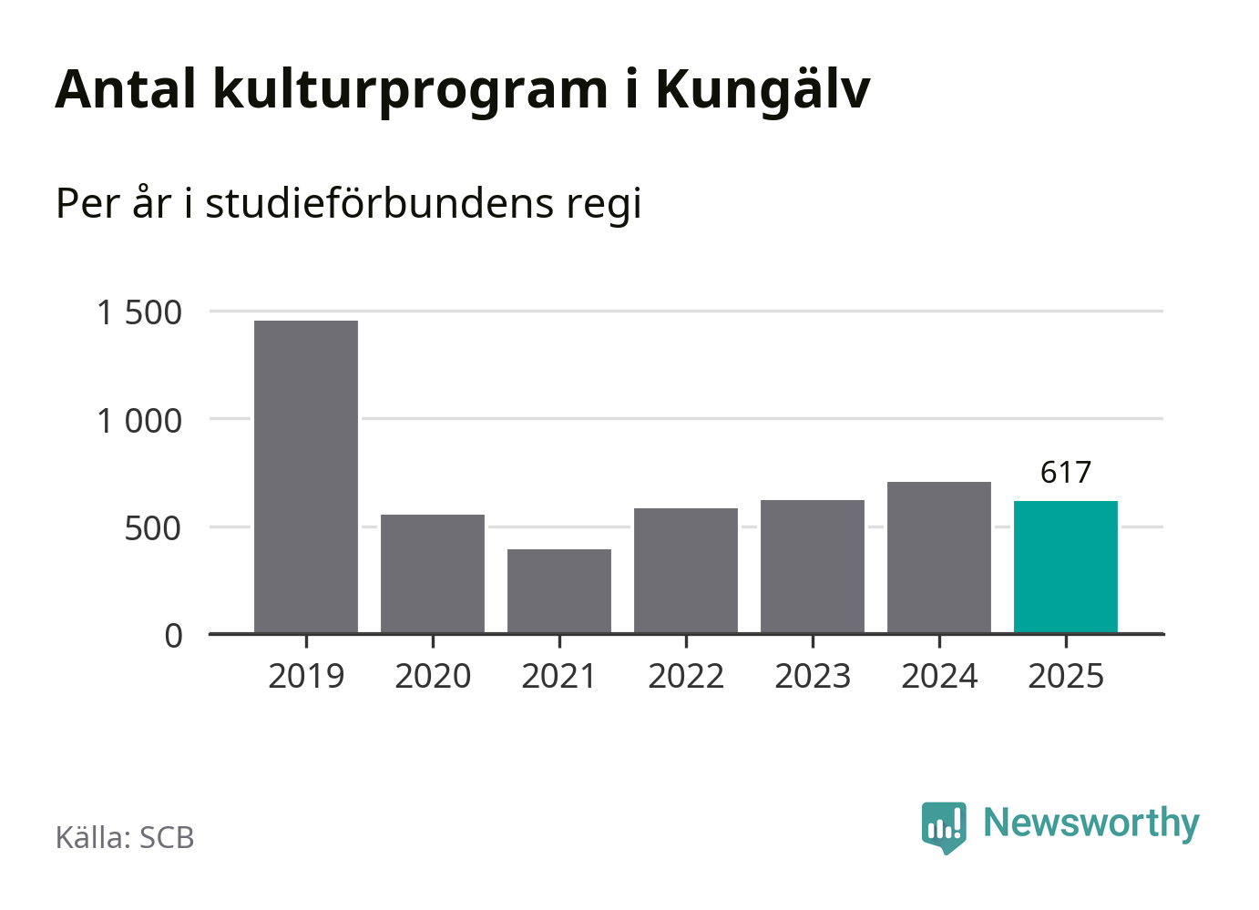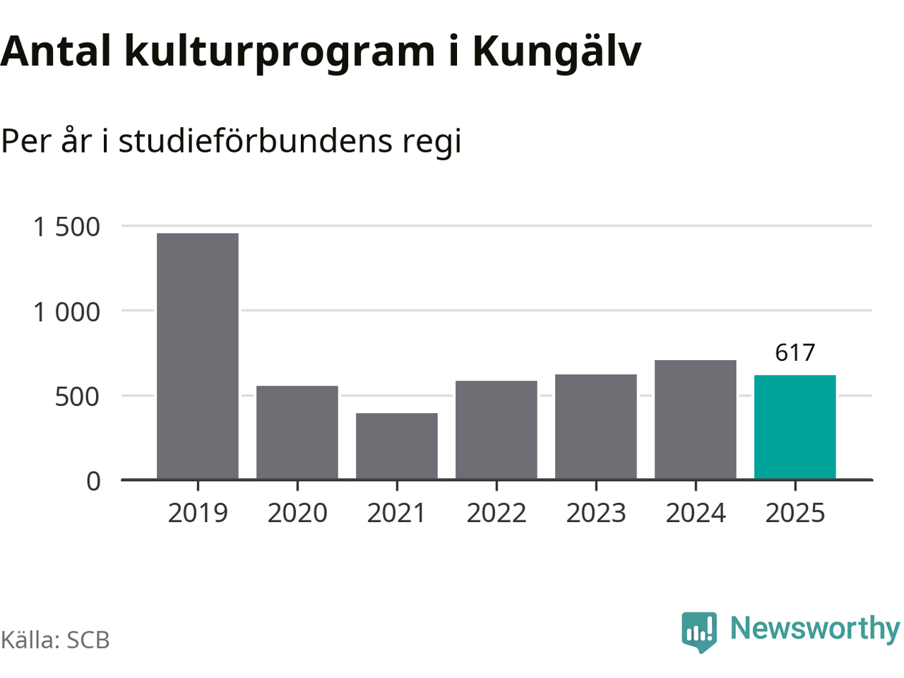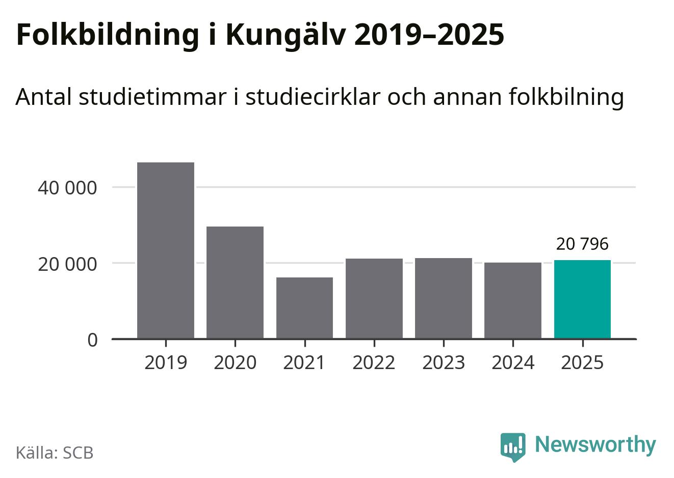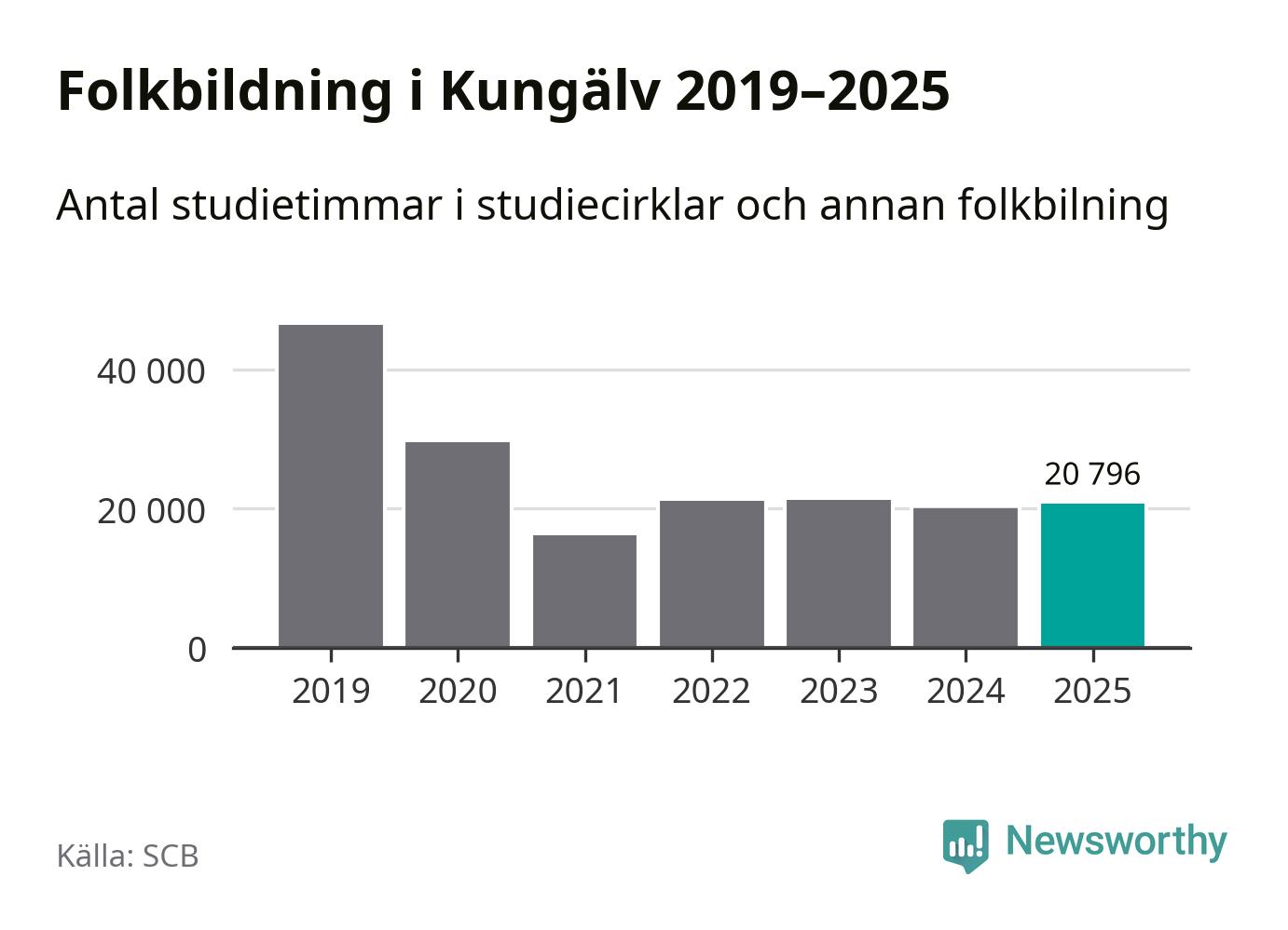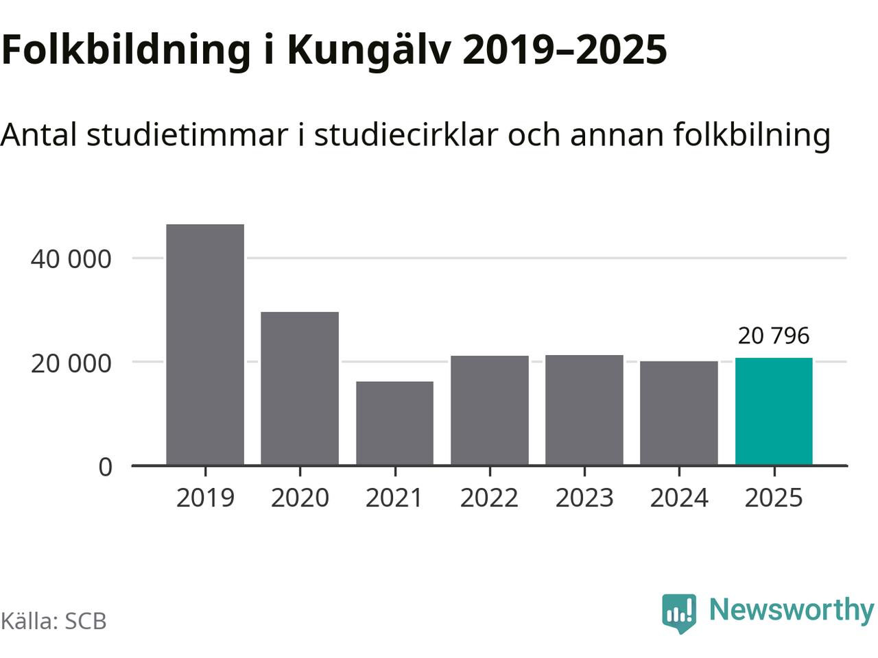 Sett till unika deltagare är folkbildningen på tillbakagång i Kungälv. 2025 deltog 4 048 personer i studieförbundens verksamhet, vilket är en minskning med tre procent jämfört med året innan. Det innebär att åtta procent av befolkningen i kommunen deltog i studieförbundens verksamhet under 2025, vilket är högre än rikssnittet.
