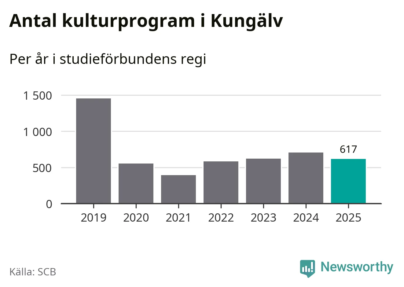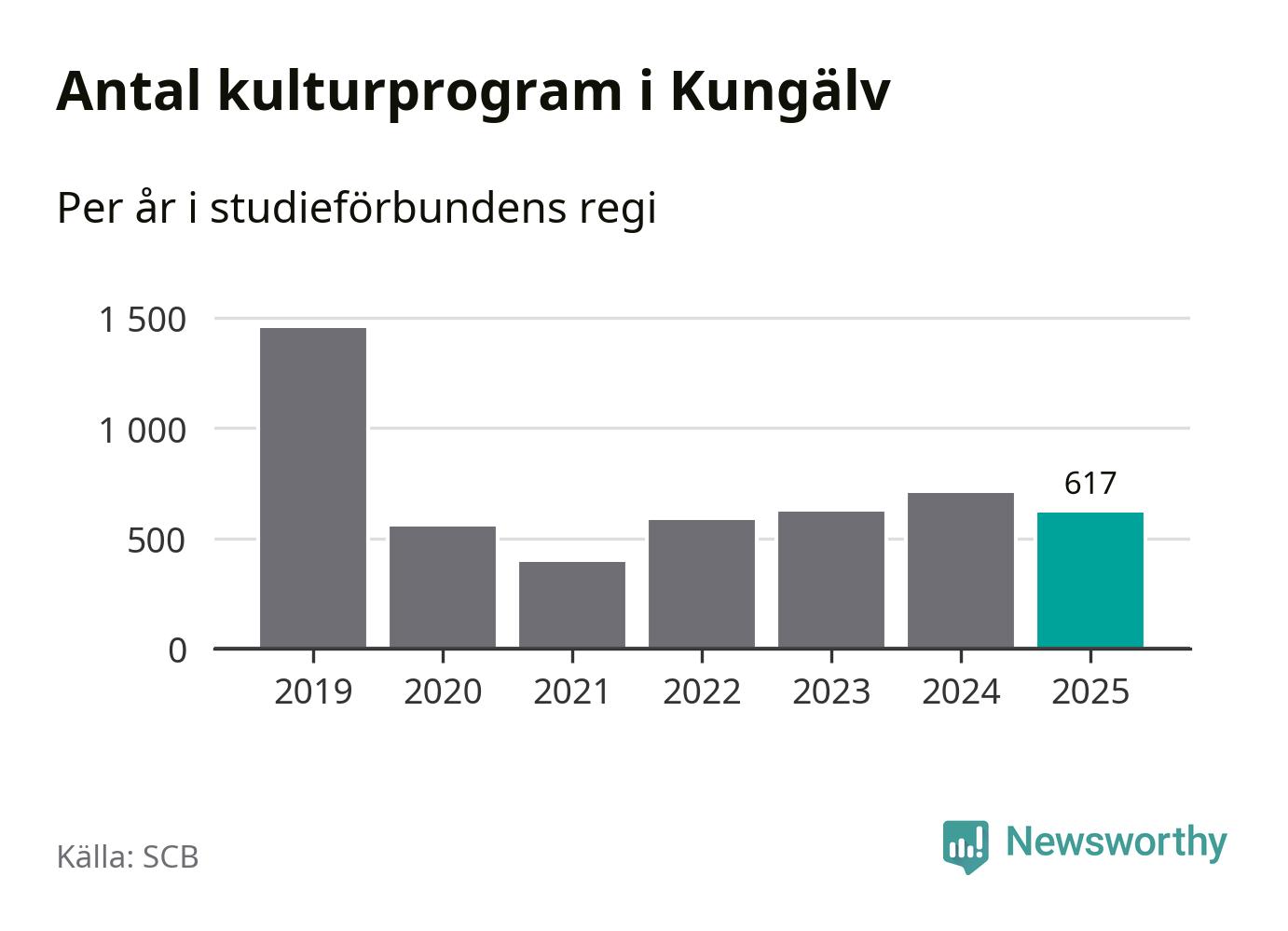 Åtta av de studieförbund som 2025 fick bidrag från Folkbildningsrådet har haft någon form av verksamhet – antingen studiecirkel, annan folkbildning eller kulturprogram – i Kungälv under de två senaste åren. Under 2025 ökade fem förbund antalet studietimmar i kommunen jämfört med året innan, medan de tre andra förbunden i kommunen noterade färre timmar.