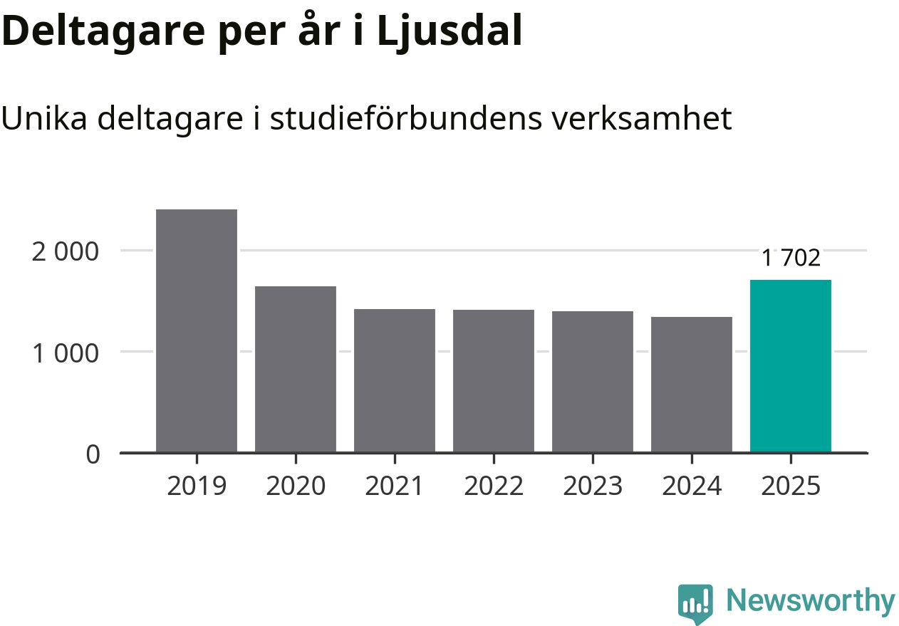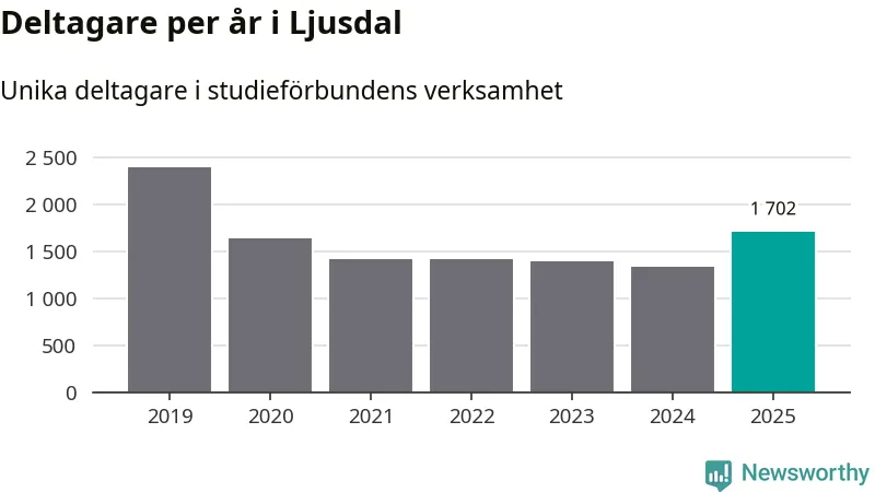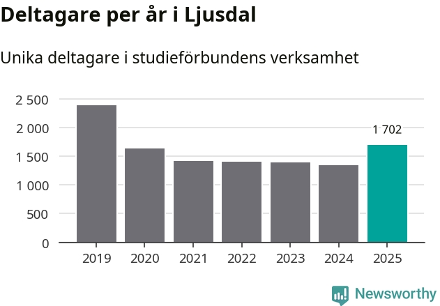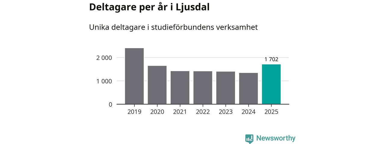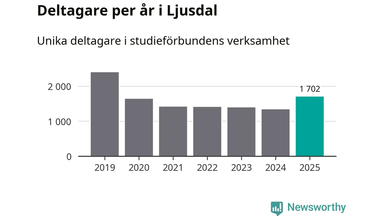 Antalet unika deltagare ökade i Ljusdal i fjol: från 1 339 till 1 702 personer. Det innebär att var tionde invånare i kommunen deltog i studieförbundens verksamhet under 2025. Det är den högsta andelen i Gävleborg.