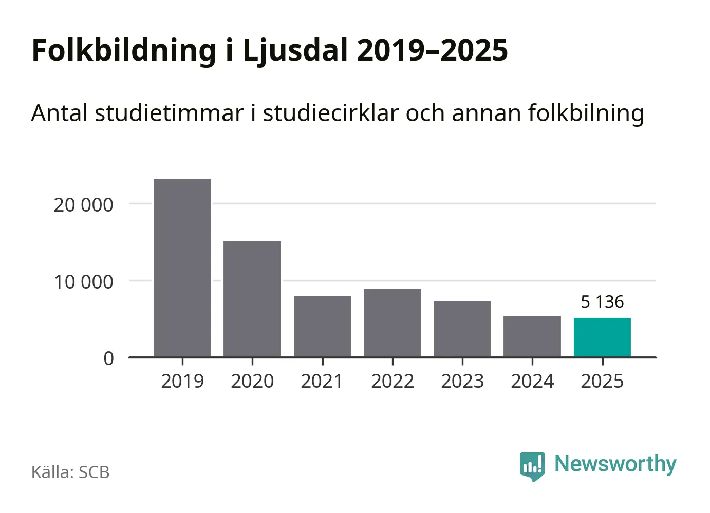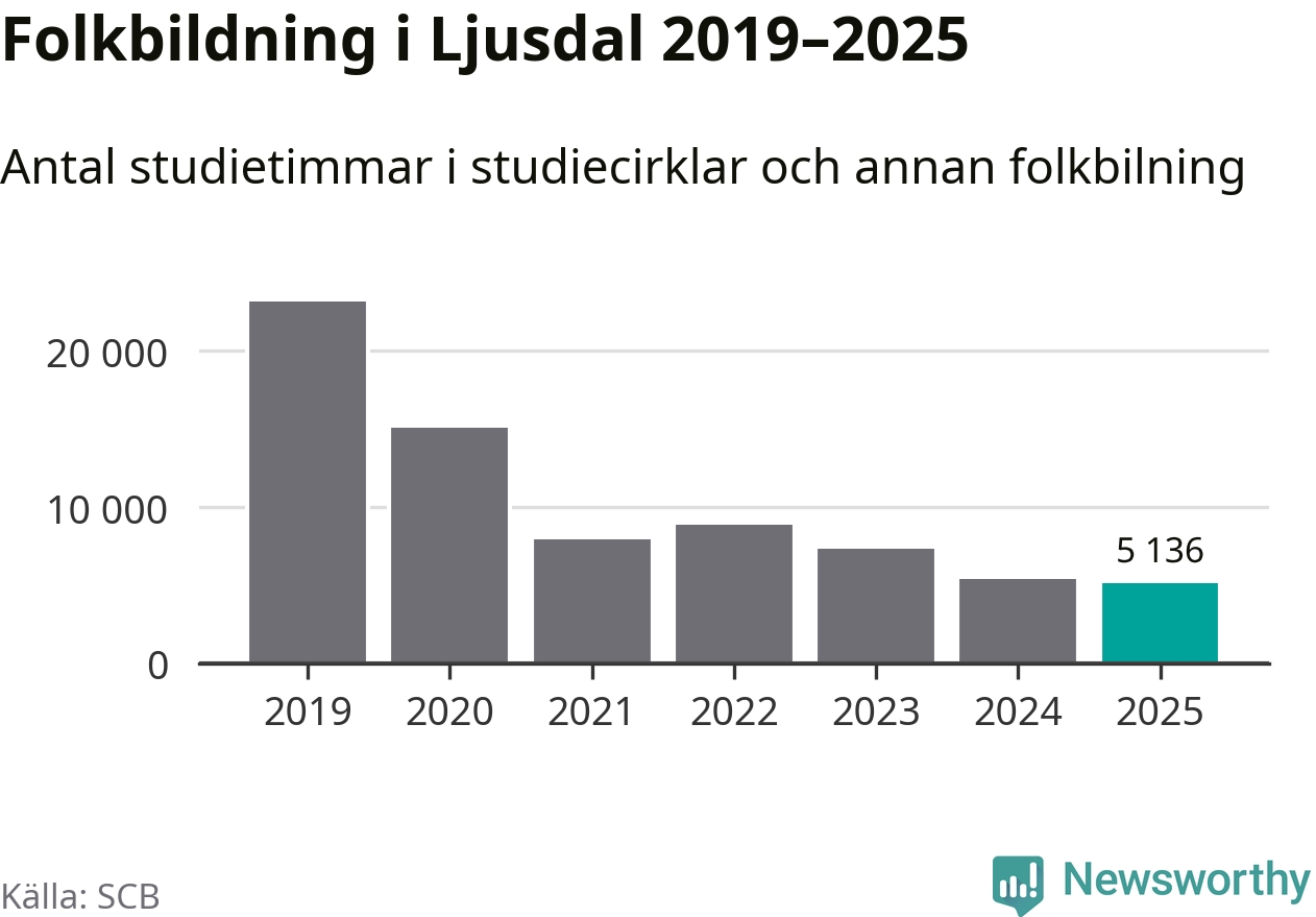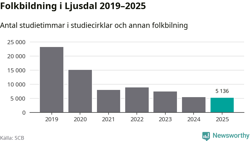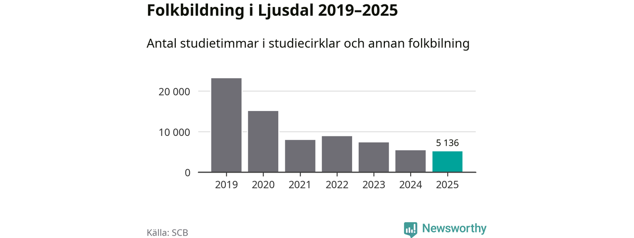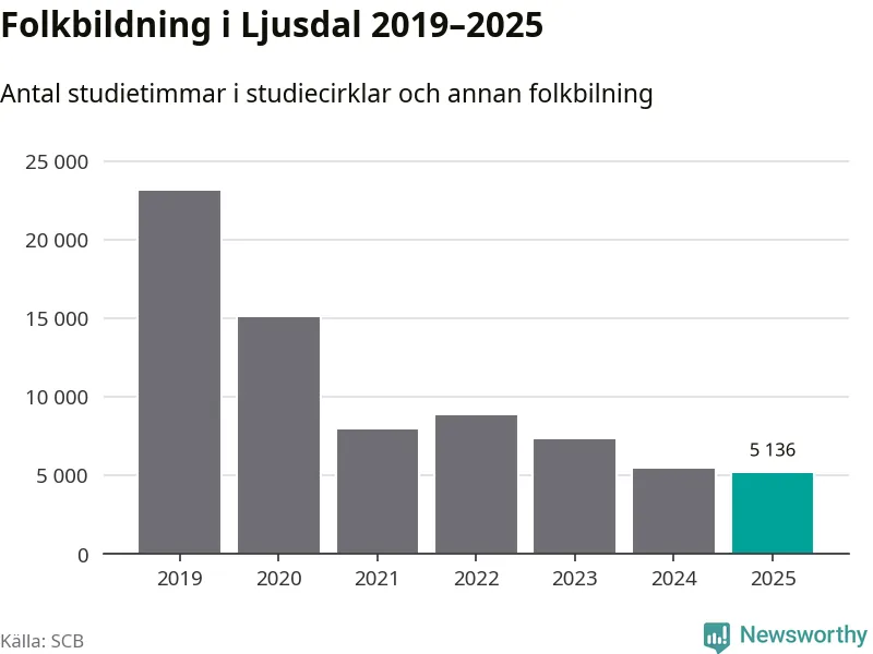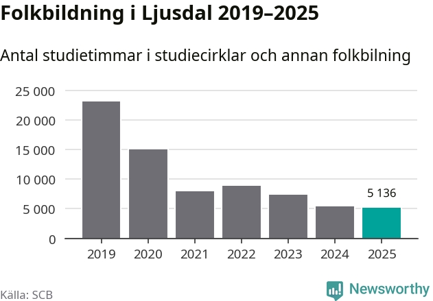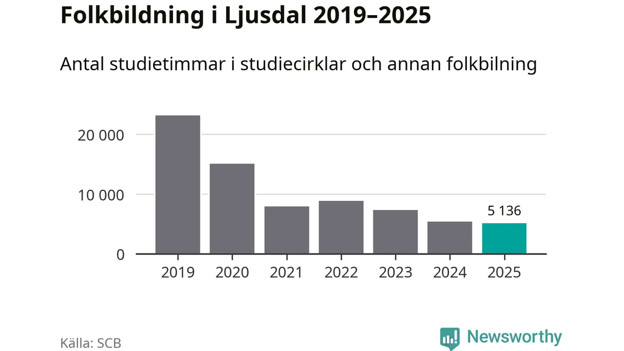Studieförbunden drabbades hårt av pandemin. Även i Ljusdal noterades det lägsta antalet studietimmar under 2021, som då var 66 procent färre än 2019 – vilket fortfarande är fler än 2025.