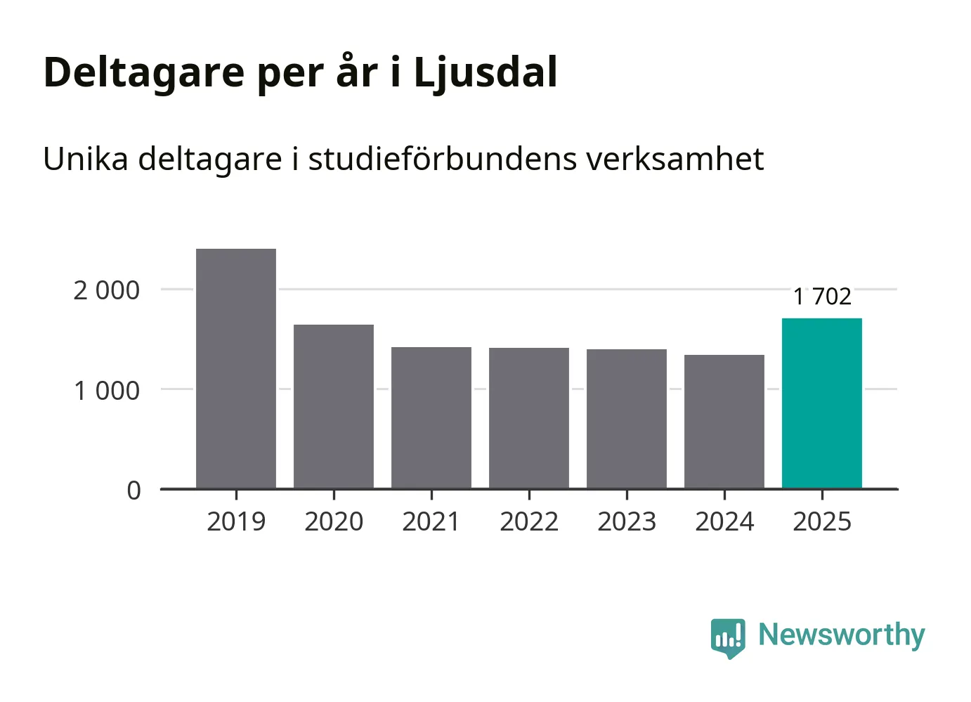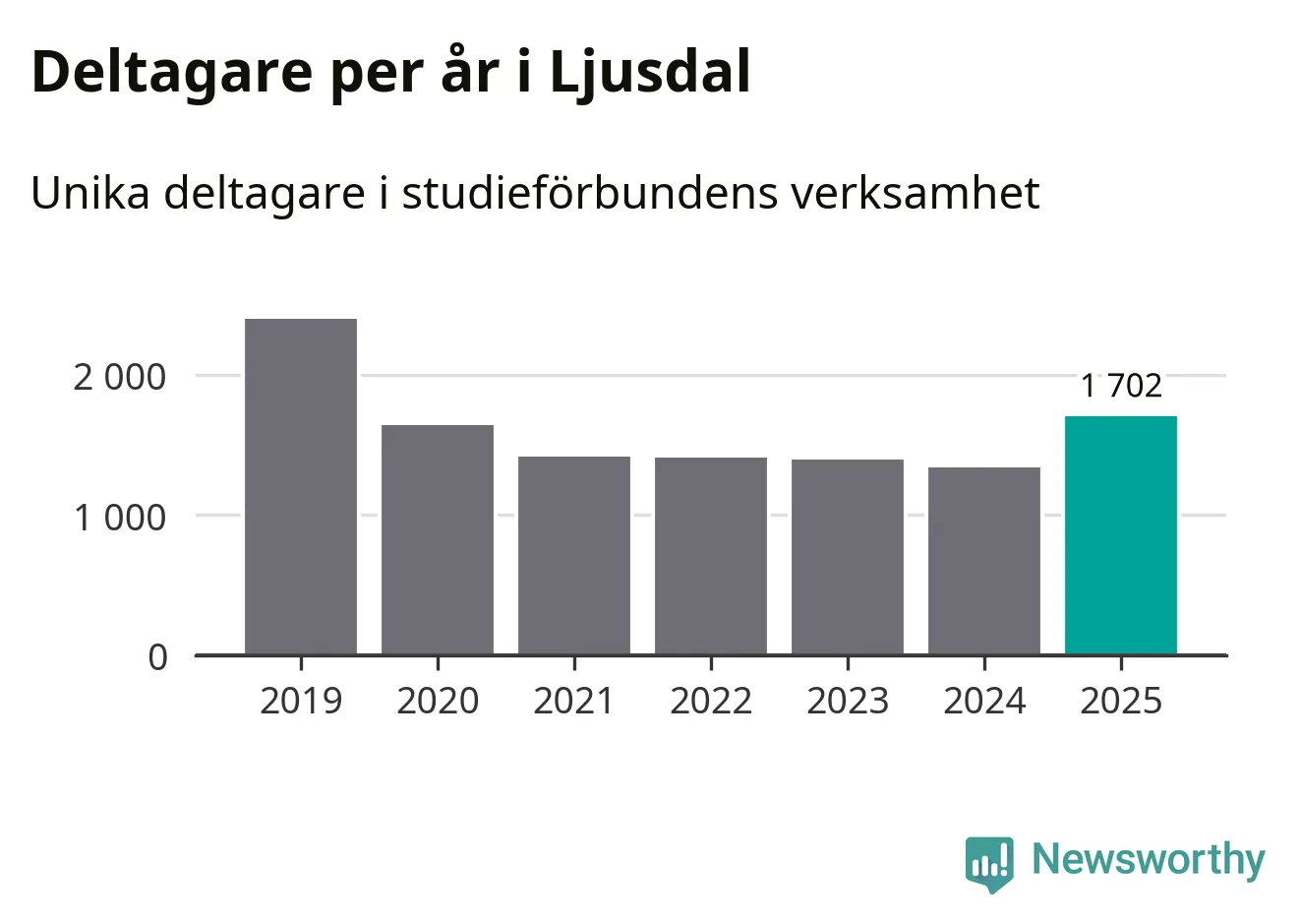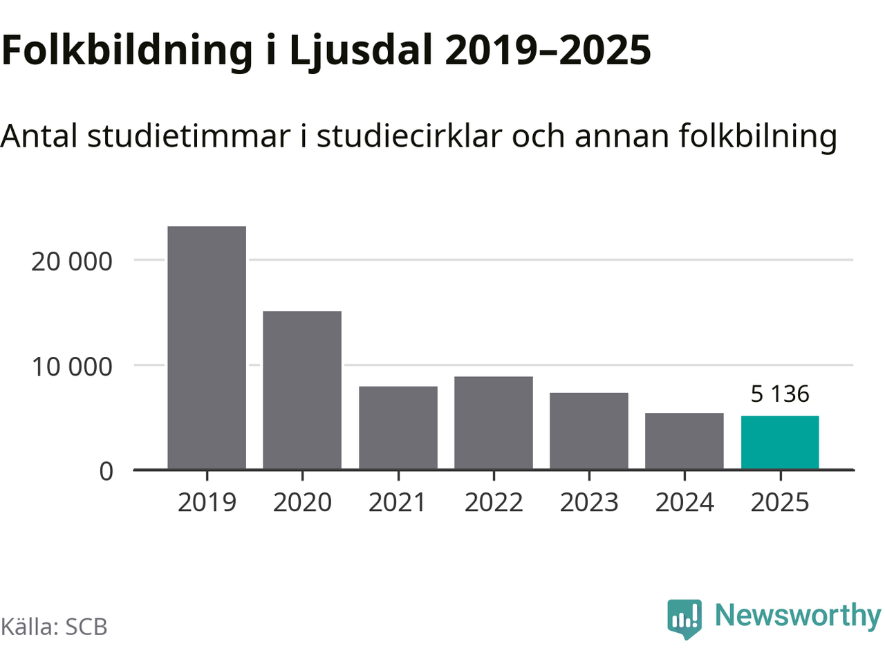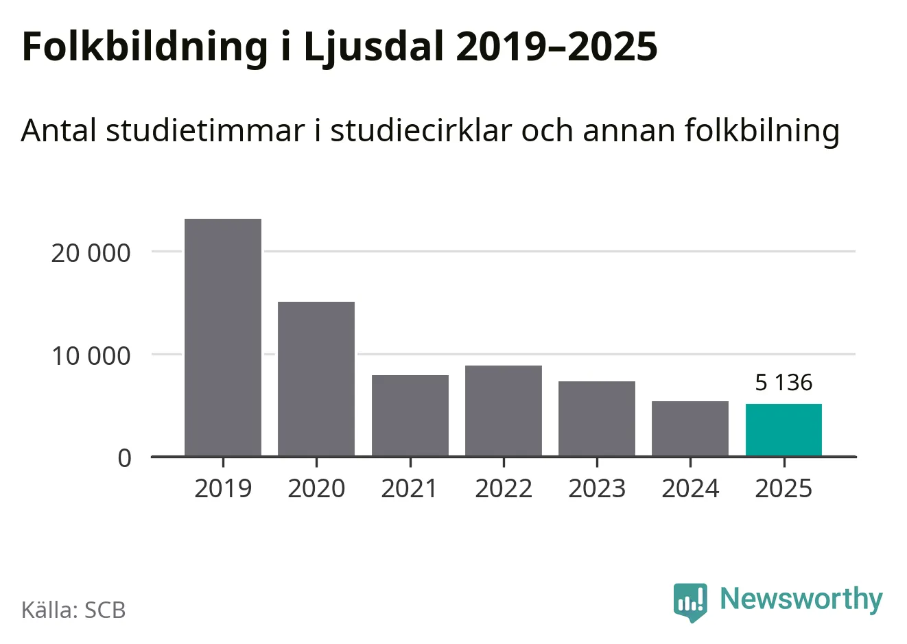 Studieförbunden drabbades hårt av pandemin. Även i Ljusdal noterades det lägsta antalet studietimmar under 2021, som då var 66 procent färre än 2019 – vilket fortfarande är fler än 2025.