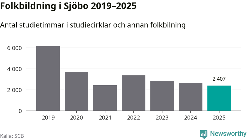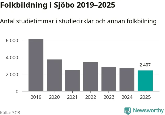 Studieförbunden drabbades hårt av pandemin. Även i Sjöbo noterades det lägsta antalet studietimmar under 2021, som då var 60 procent färre än 2019 – vilket är ungefär samma nivå som 2025.