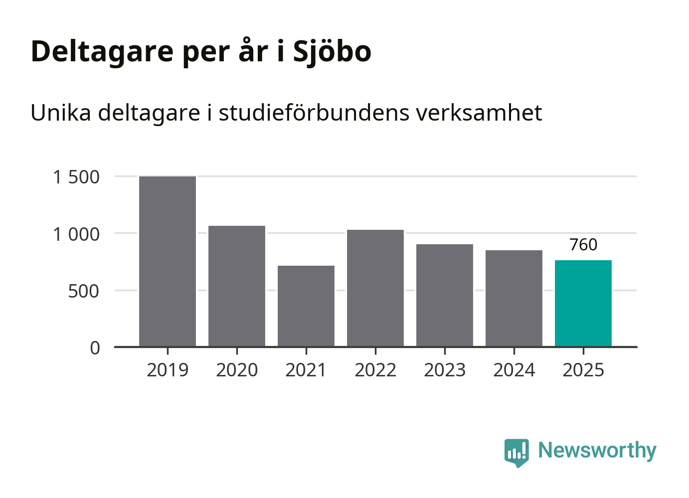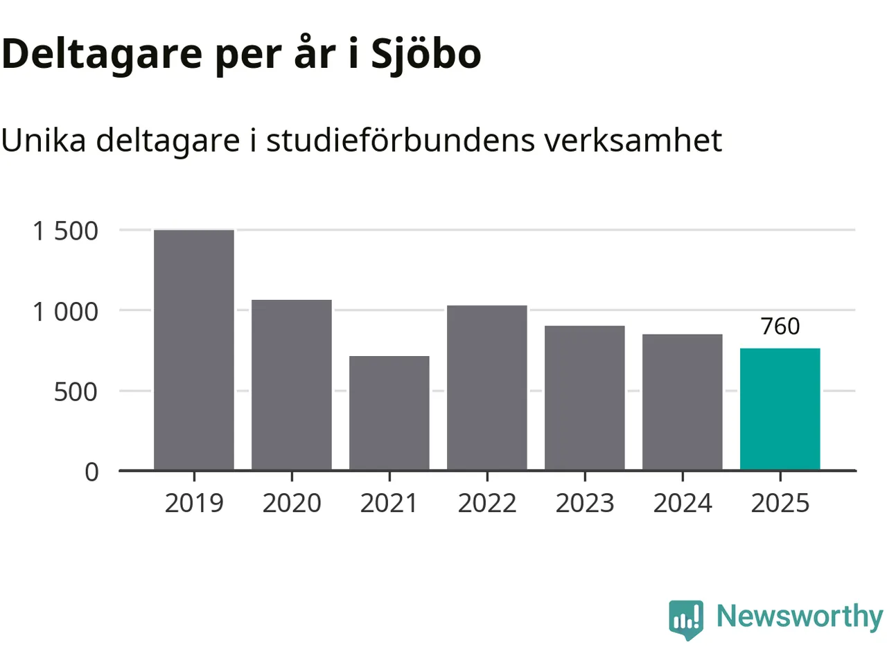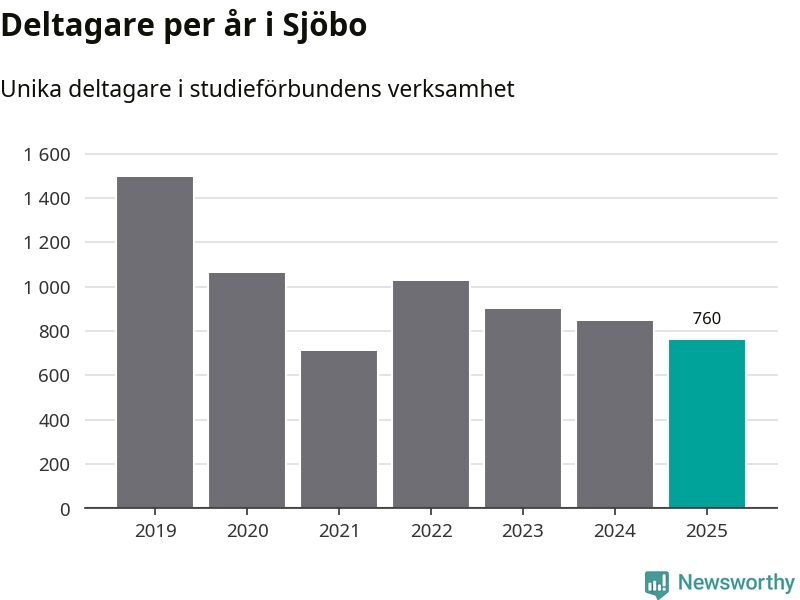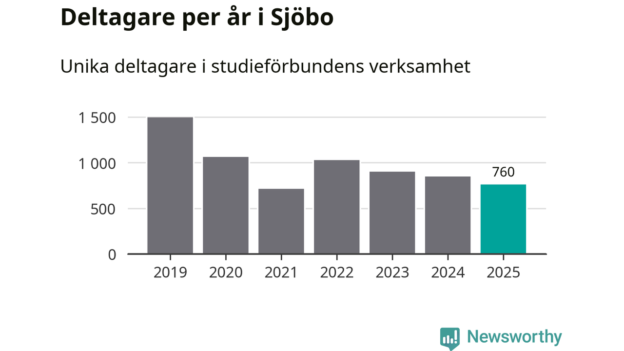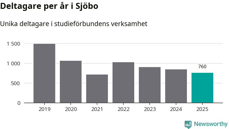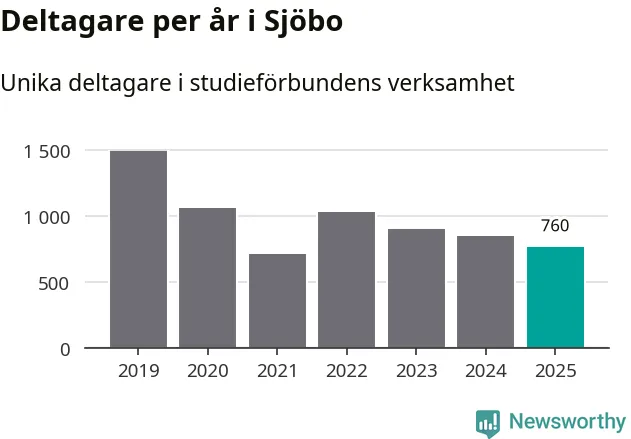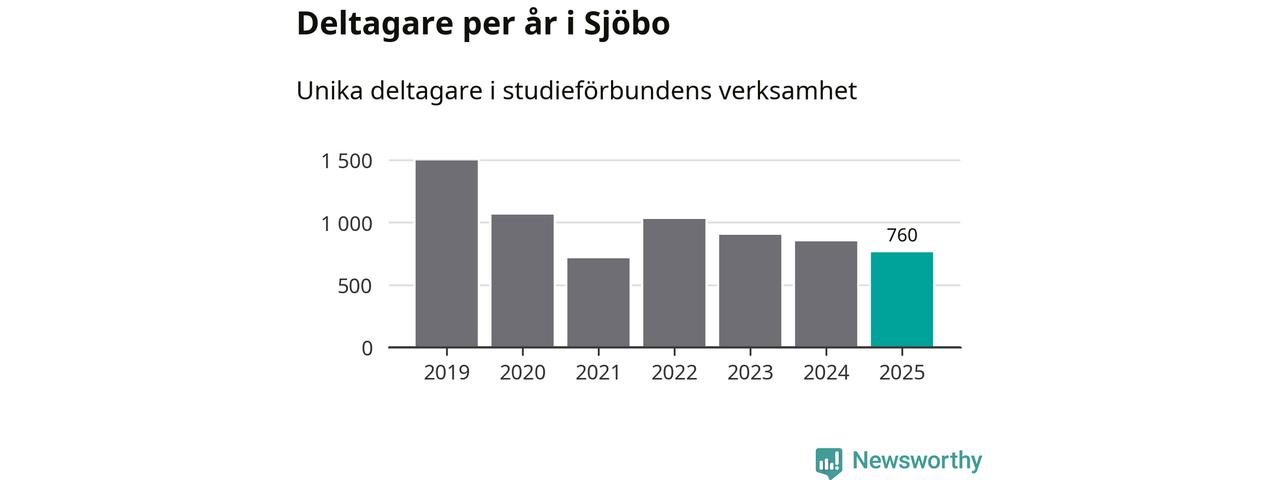 Även sett till unika deltagare är folkbildningen på tillbakagång i Sjöbo. 2025 deltog 760 personer i studieförbundens verksamhet, vilket är en minskning med tio procent jämfört med året innan. Det innebär att fyra procent av befolkningen i kommunen deltog i studieförbundens verksamhet under 2025, vilket är ungefär som rikssnittet.