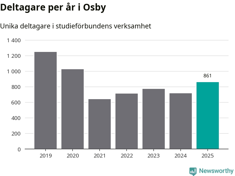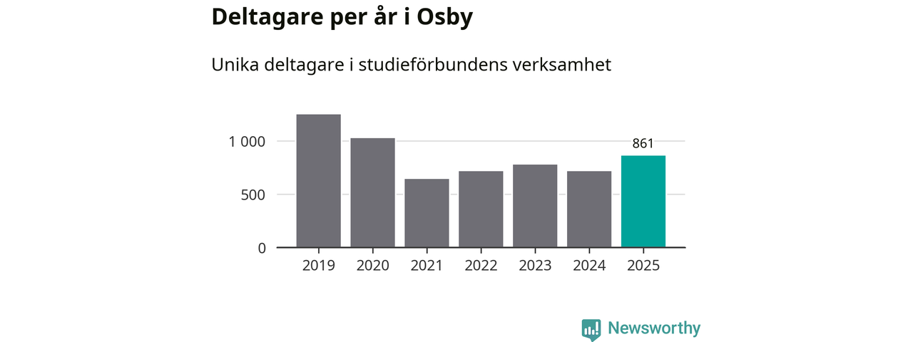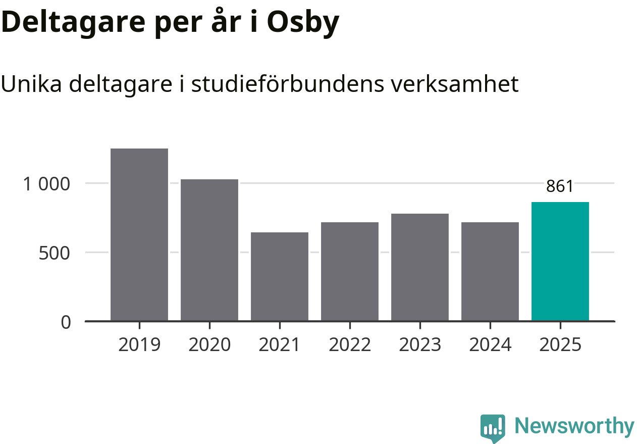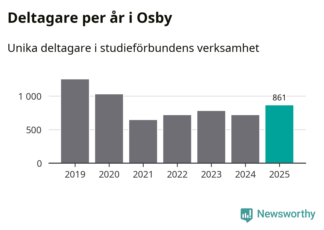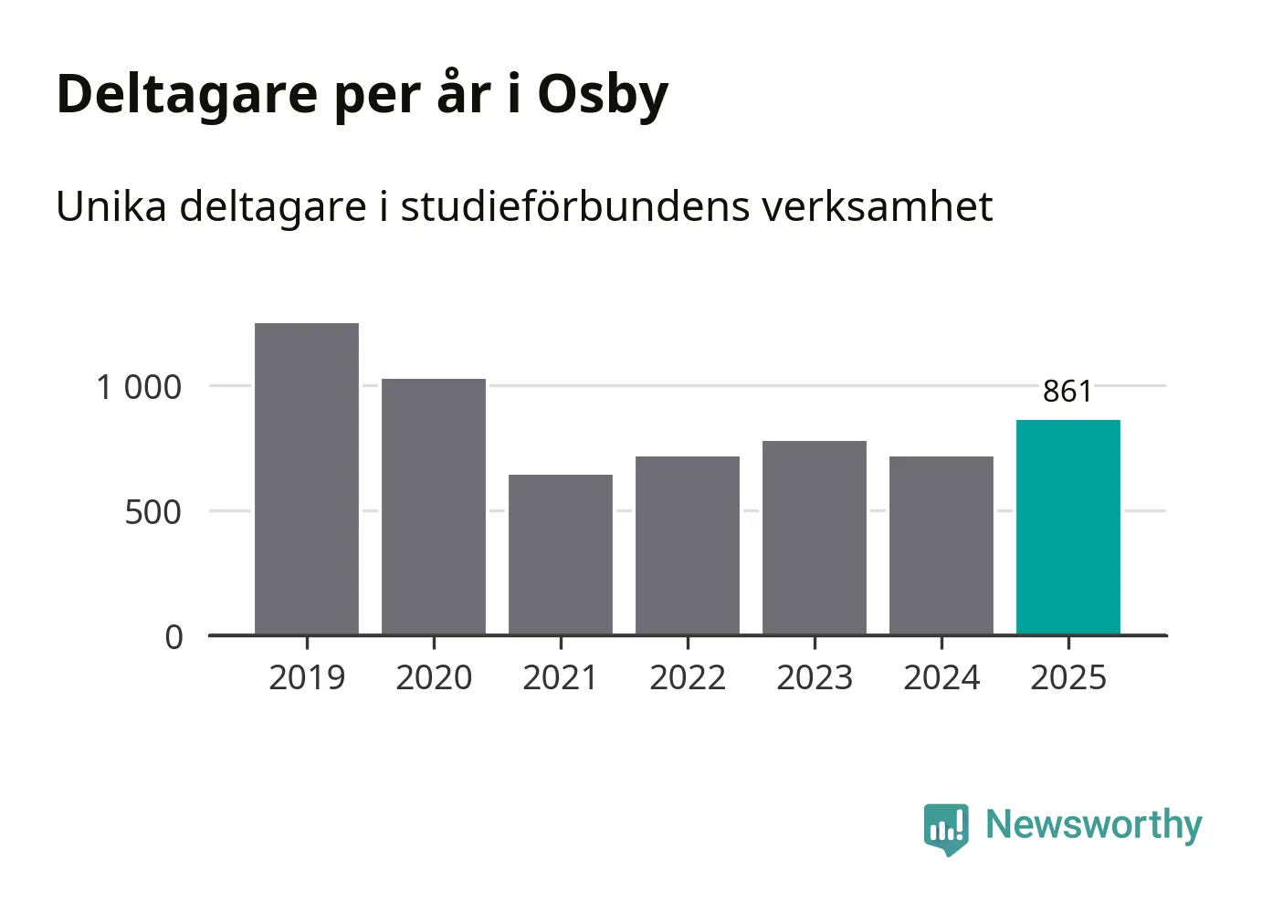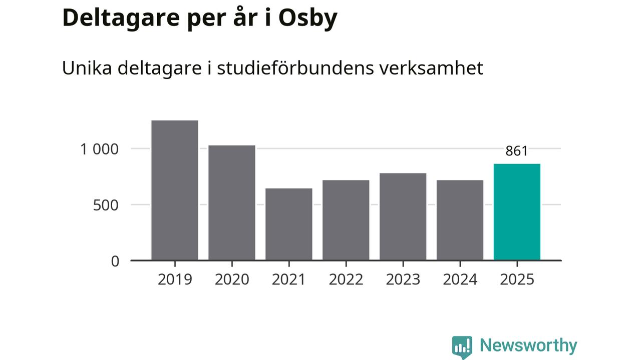 Antalet unika deltagare ökade i Osby i fjol: från 716 till 861 personer. Det innebär att sju procent av befolkningen i kommunen deltog i studieförbundens verksamhet under 2025, vilket är ungefär som rikssnittet.
