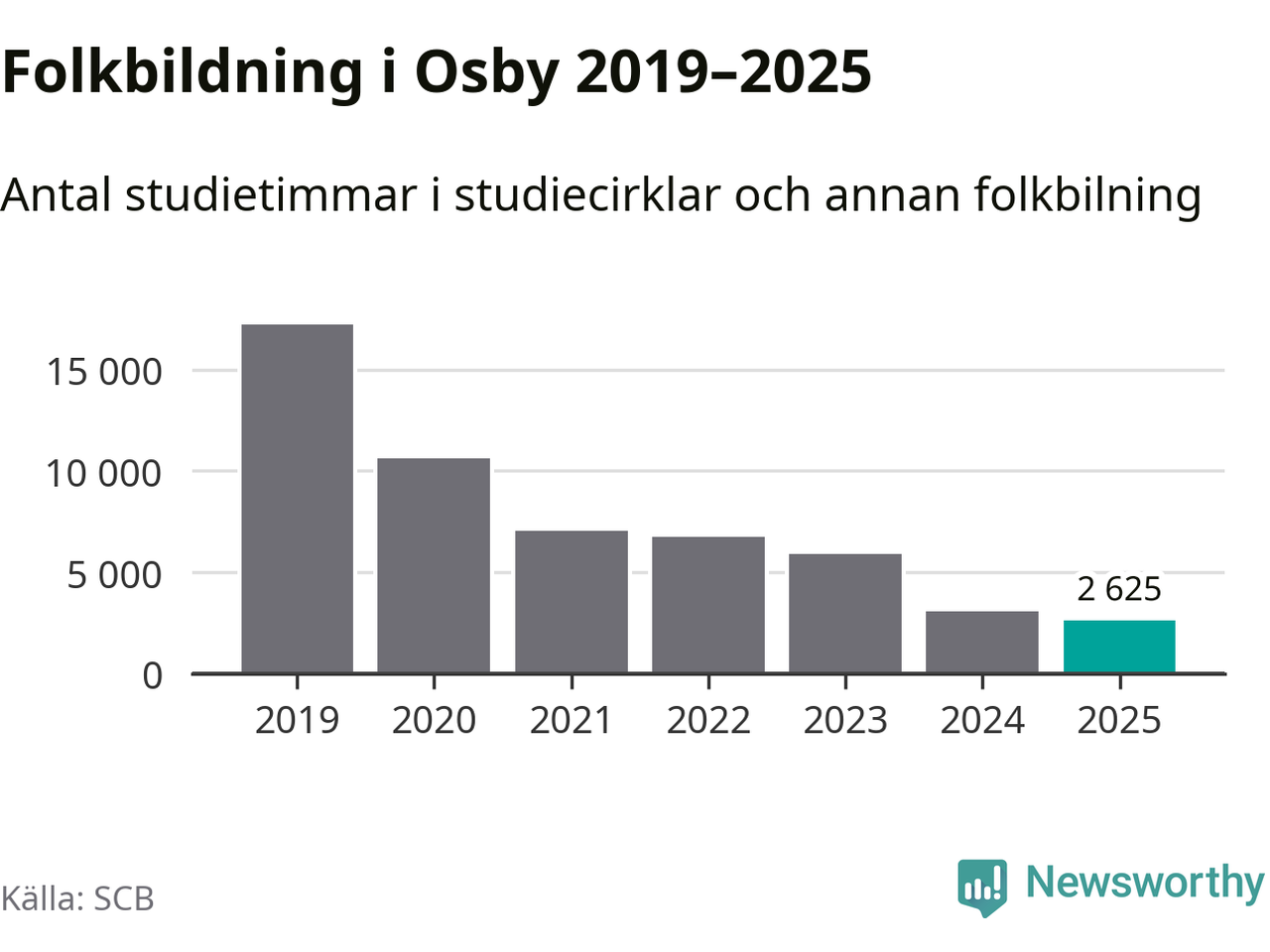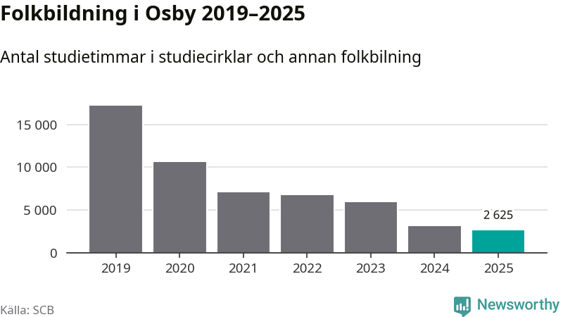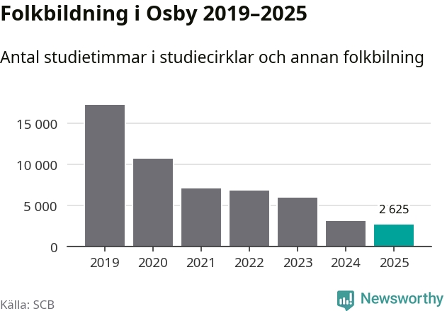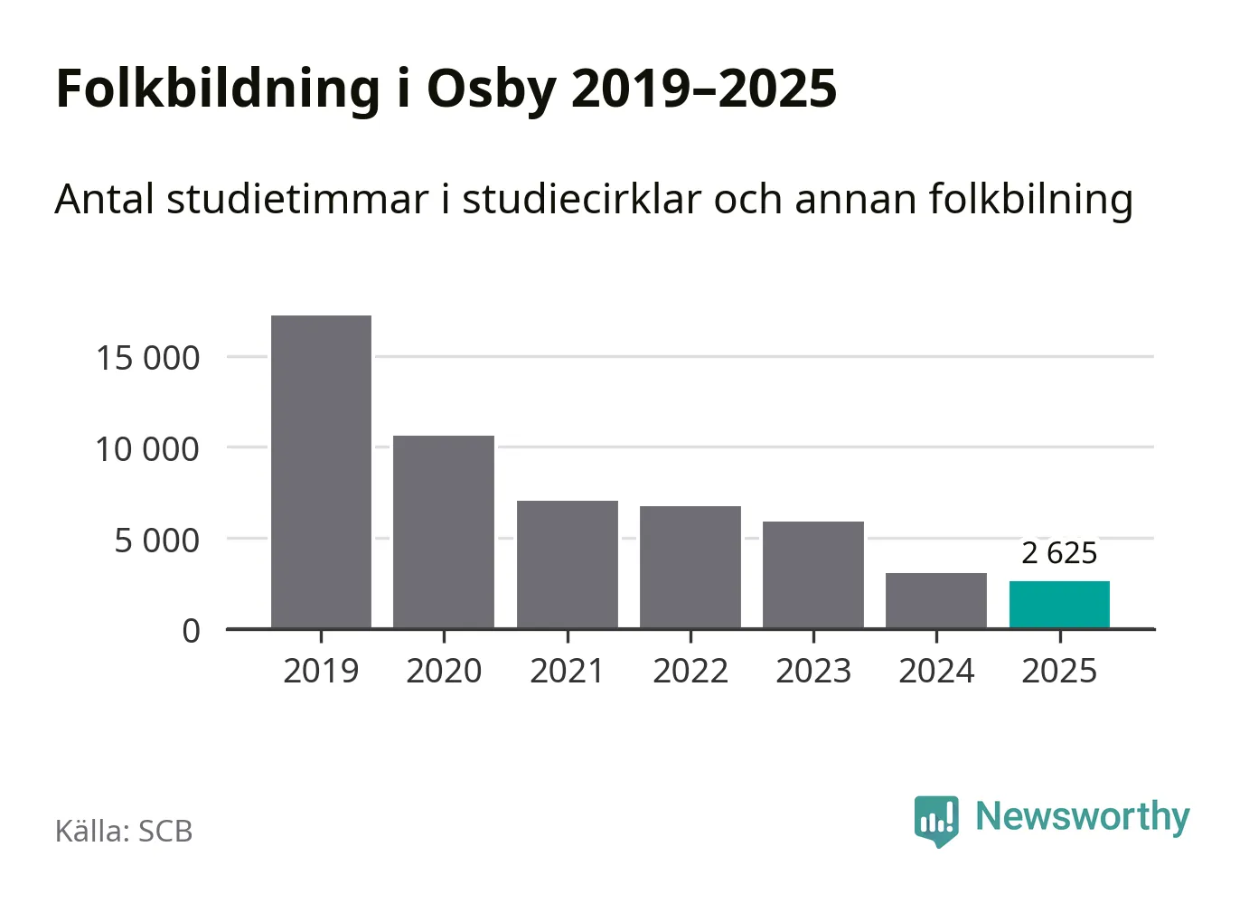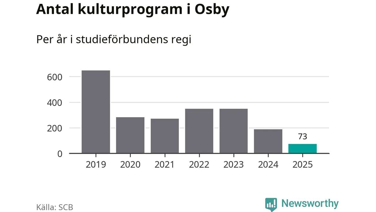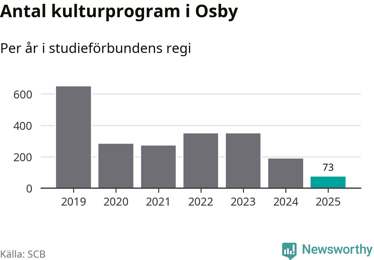 I Osby är minskningen ännu större: förra året hade studieförbunden omkring 2 600 studietimmar i kommunen, vilket är en minskning med 15 procent jämfört med året innan. Även antalet kulturprogram i studieförbundens regi minskade, från 189 till 73 stycken.