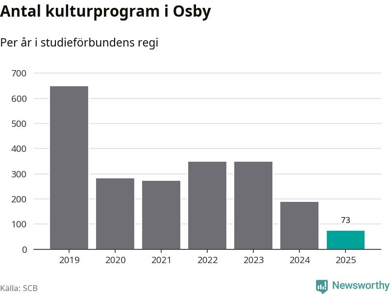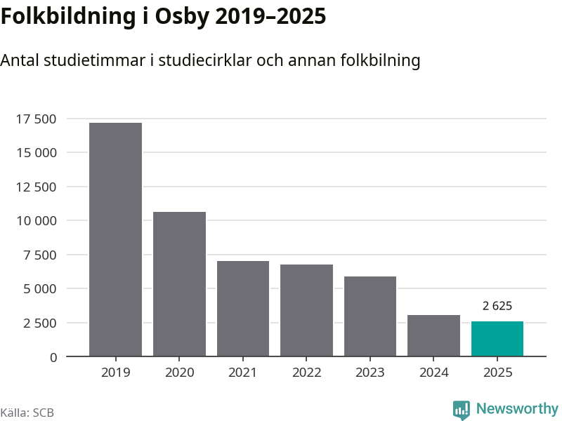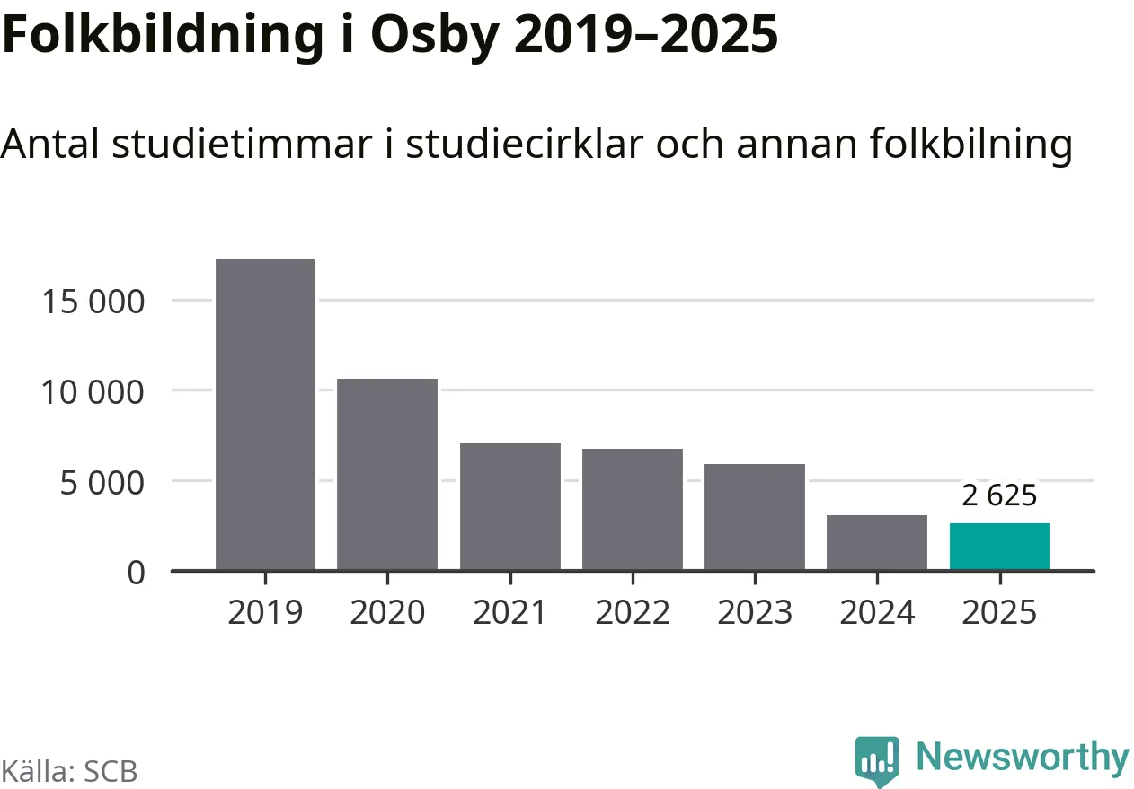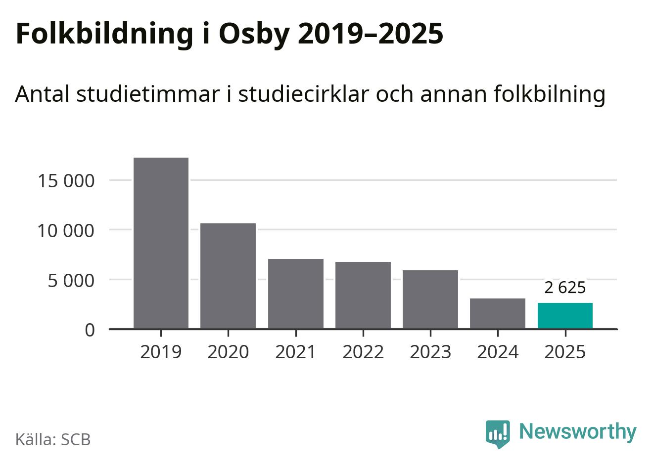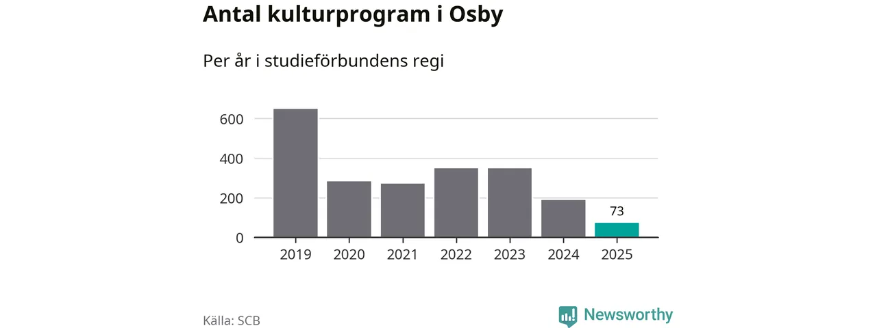 I Osby är minskningen ännu större: förra året hade studieförbunden omkring 2 600 studietimmar i kommunen, vilket är en minskning med 15 procent jämfört med året innan. Även antalet kulturprogram i studieförbundens regi minskade, från 189 till 73 stycken.