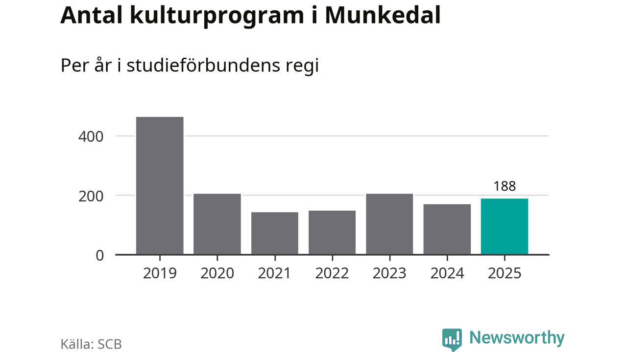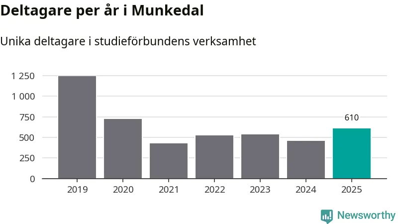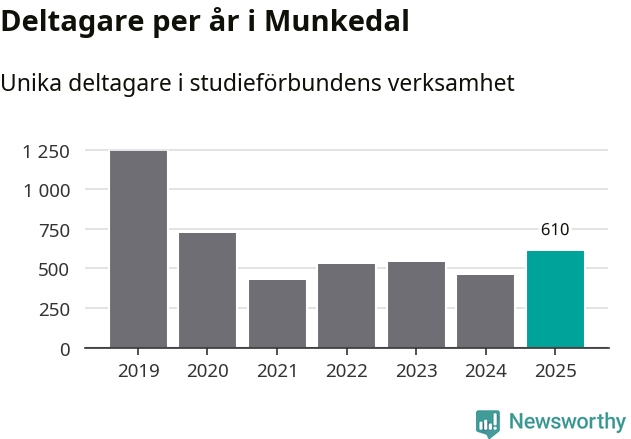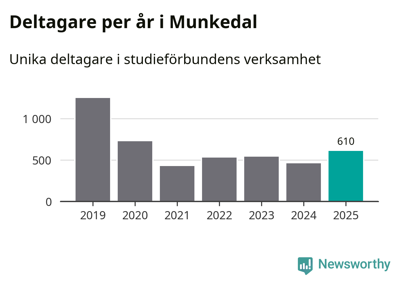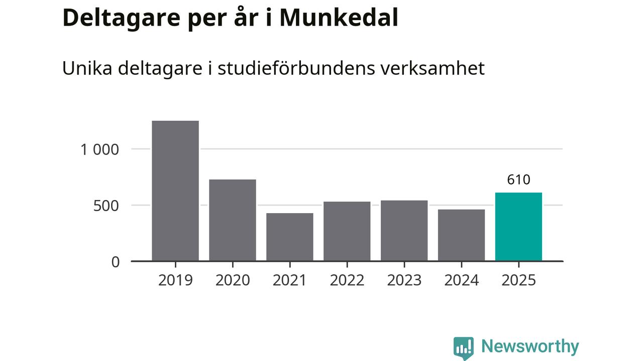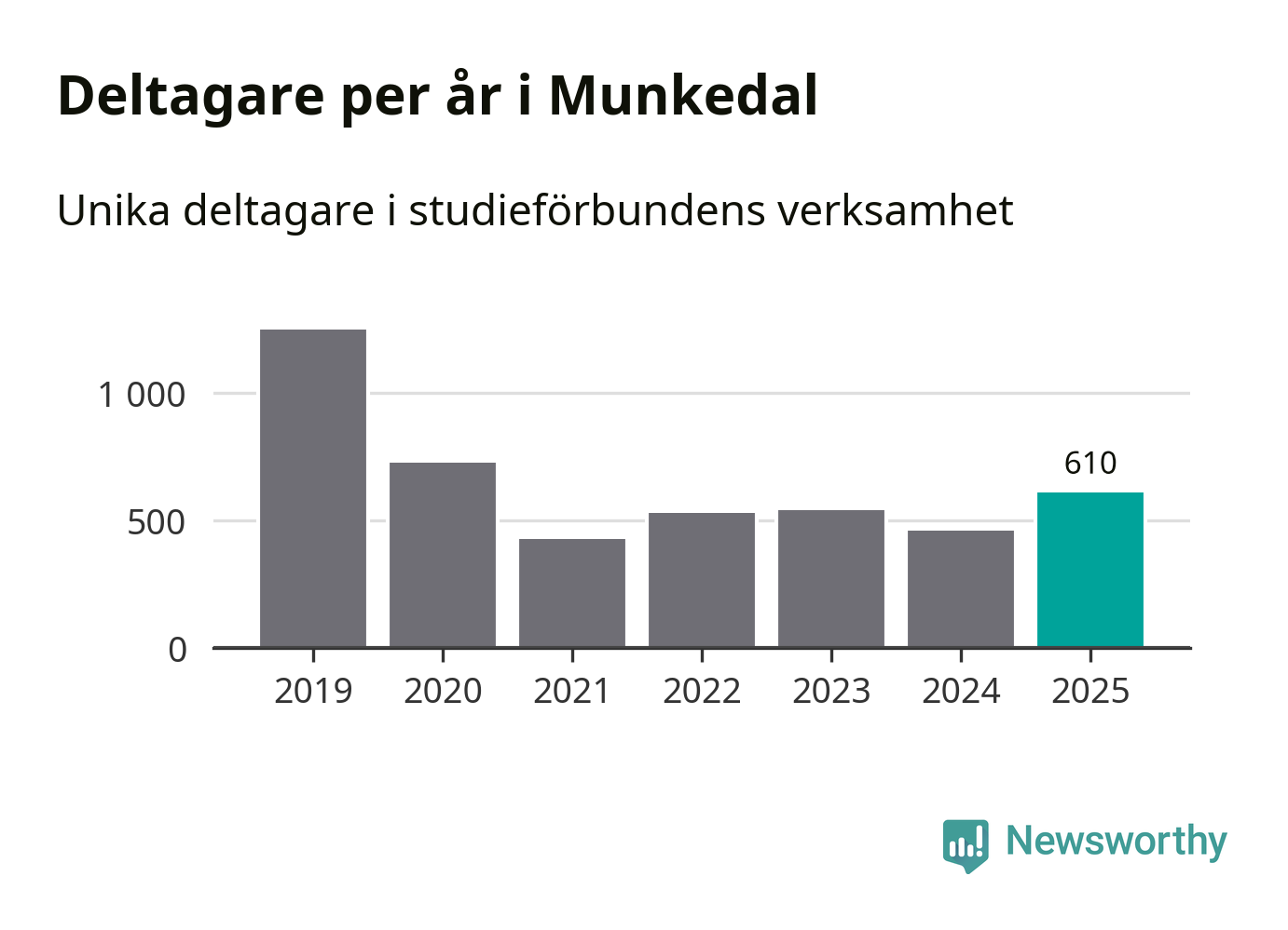 Även antalet unika deltagare ökade i Munkedal i fjol: från 459 till 610 personer. Det innebär att sex procent av befolkningen i kommunen deltog i studieförbundens verksamhet under 2025, vilket är ungefär som rikssnittet.