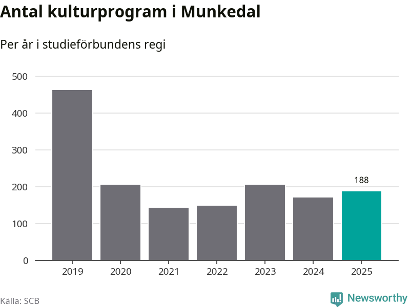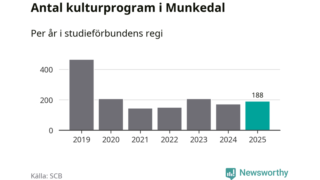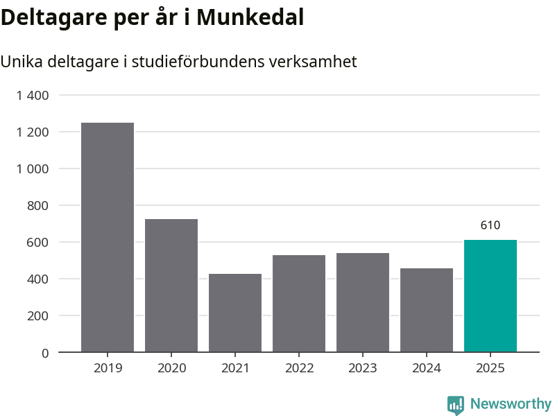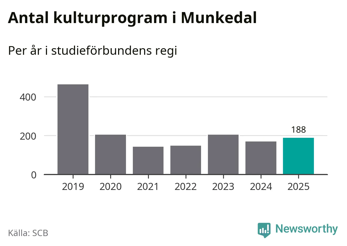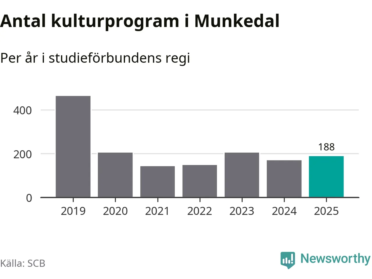 Även antalet unika deltagare ökade i Munkedal i fjol: från 459 till 610 personer. Det innebär att sex procent av befolkningen i kommunen deltog i studieförbundens verksamhet under 2025, vilket är ungefär som rikssnittet.