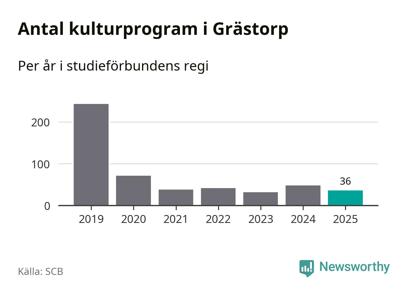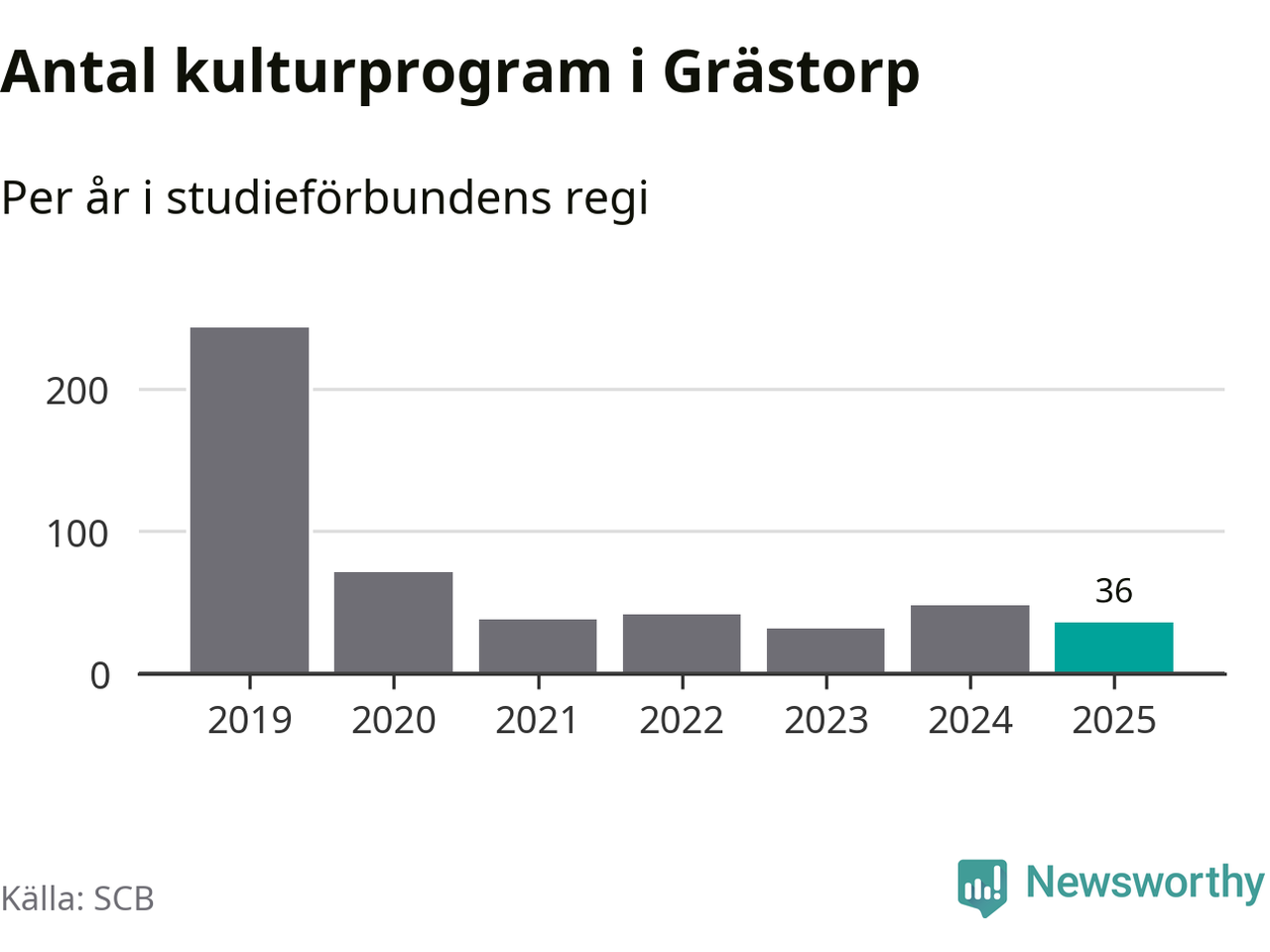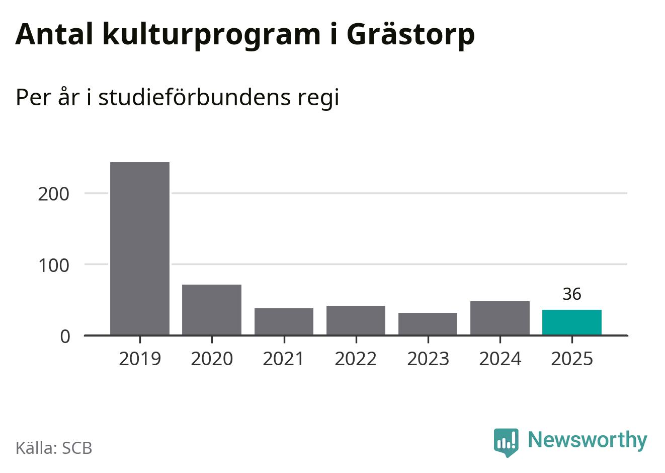 I Grästorp är minskningen ännu större: förra året hade studieförbunden omkring 1 500 studietimmar i kommunen, vilket är en minskning med 13 procent jämfört med året innan. Även antalet kulturprogram i studieförbundens regi minskade, från 48 till 36 stycken.