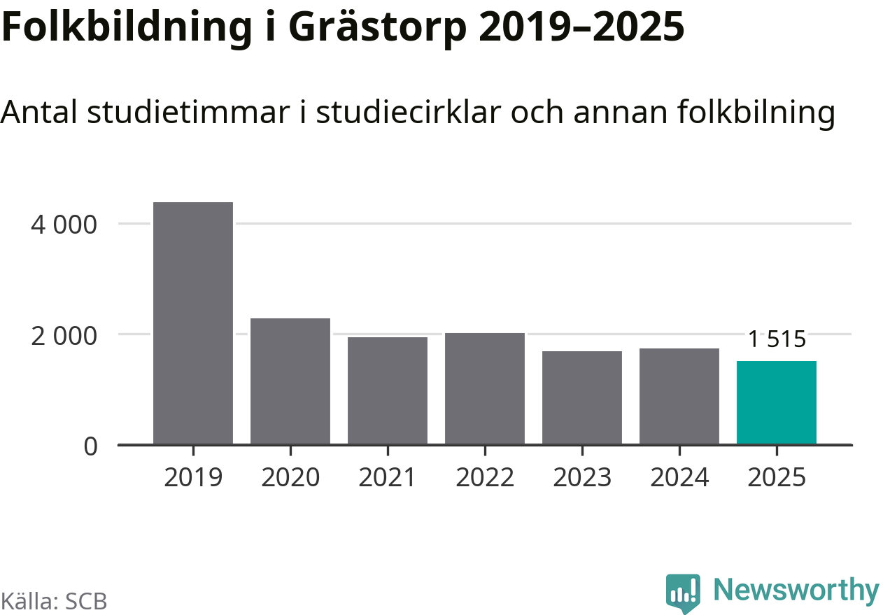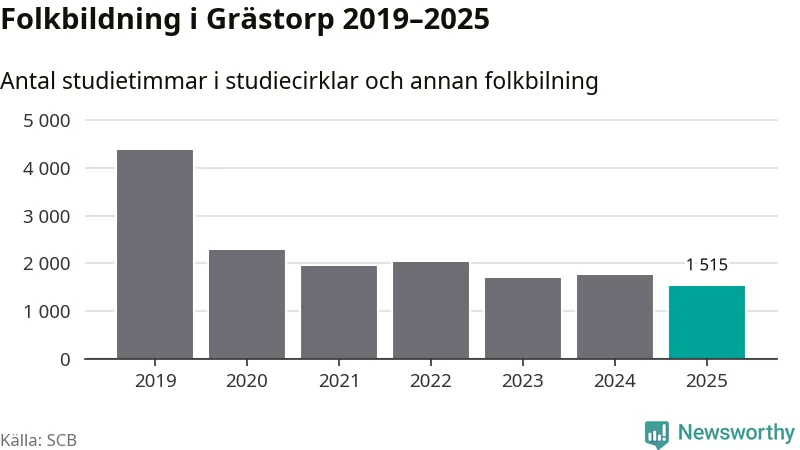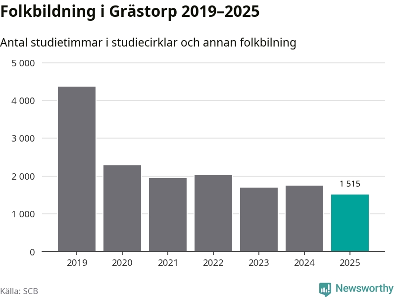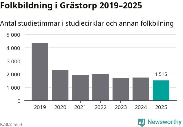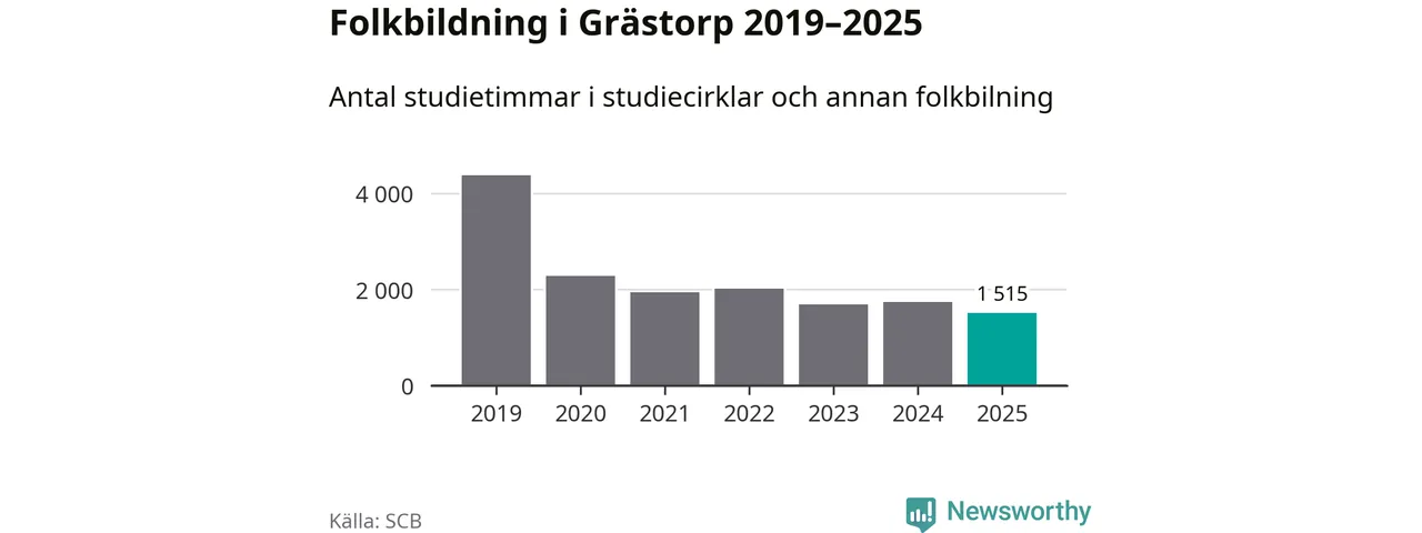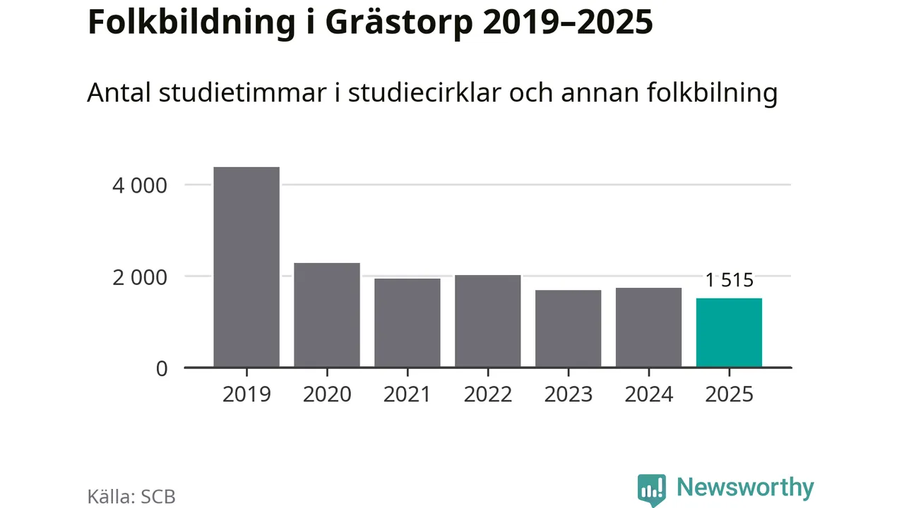 Studieförbunden drabbades hårt av pandemin. Även i Grästorp noterades det lägsta antalet studietimmar under 2021, som då var 56 procent färre än 2019 – vilket fortfarande är fler än 2025.