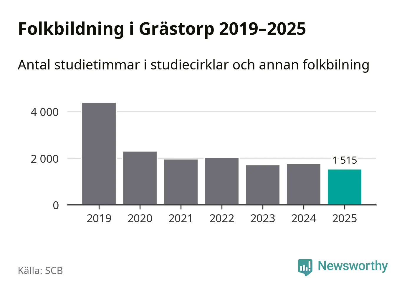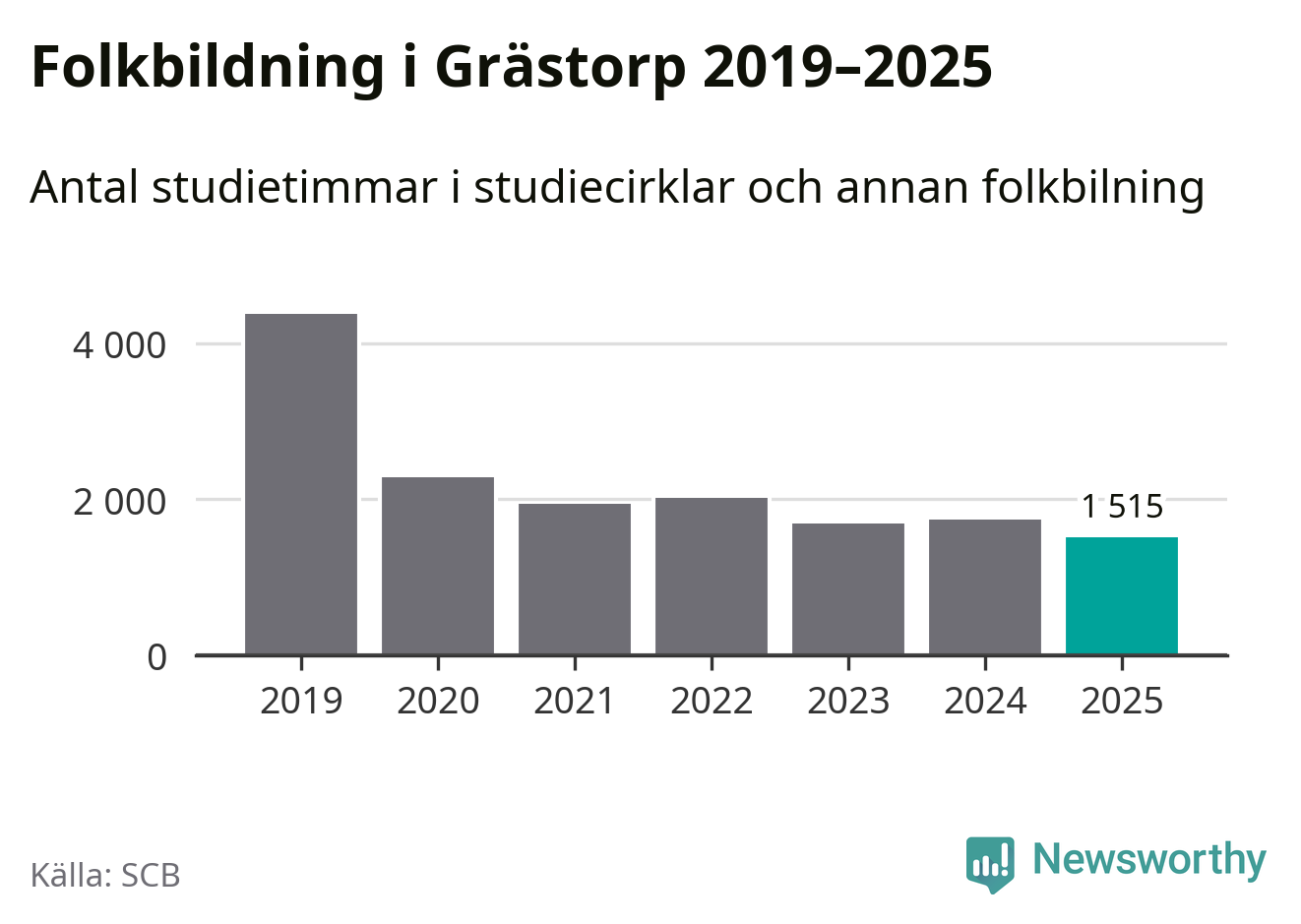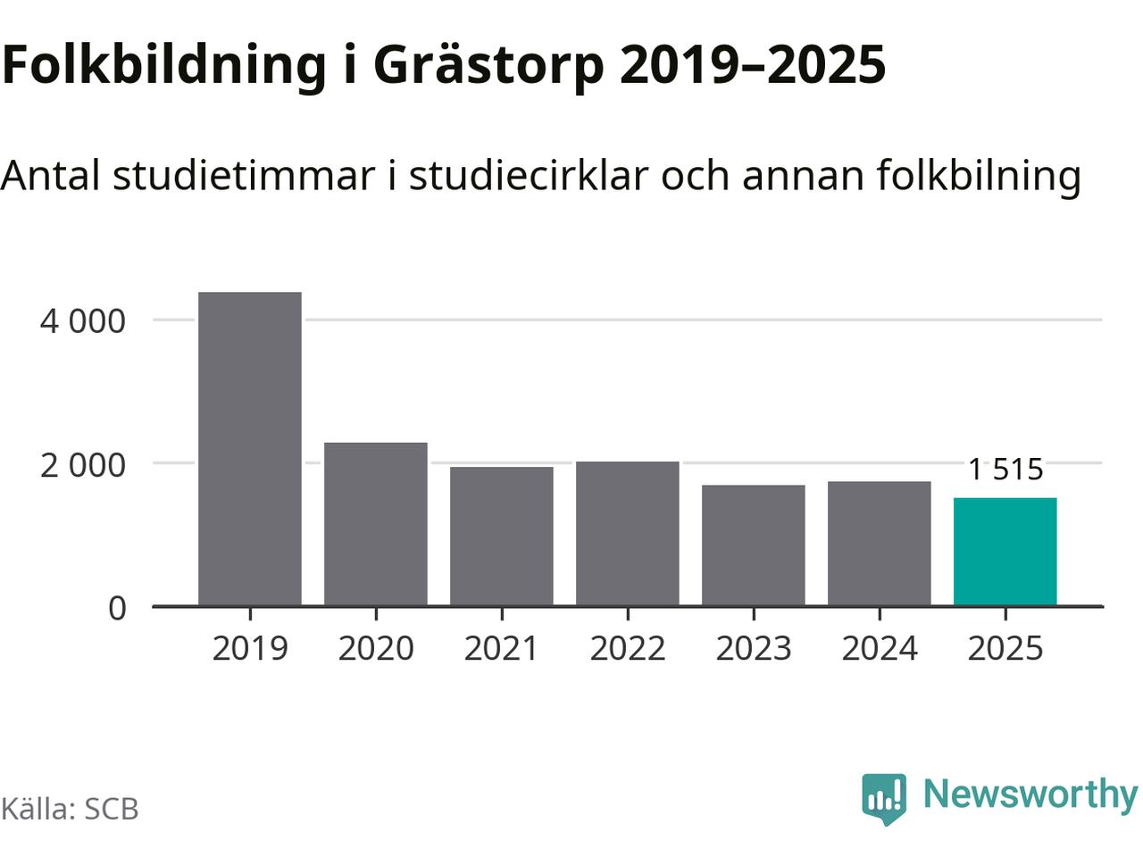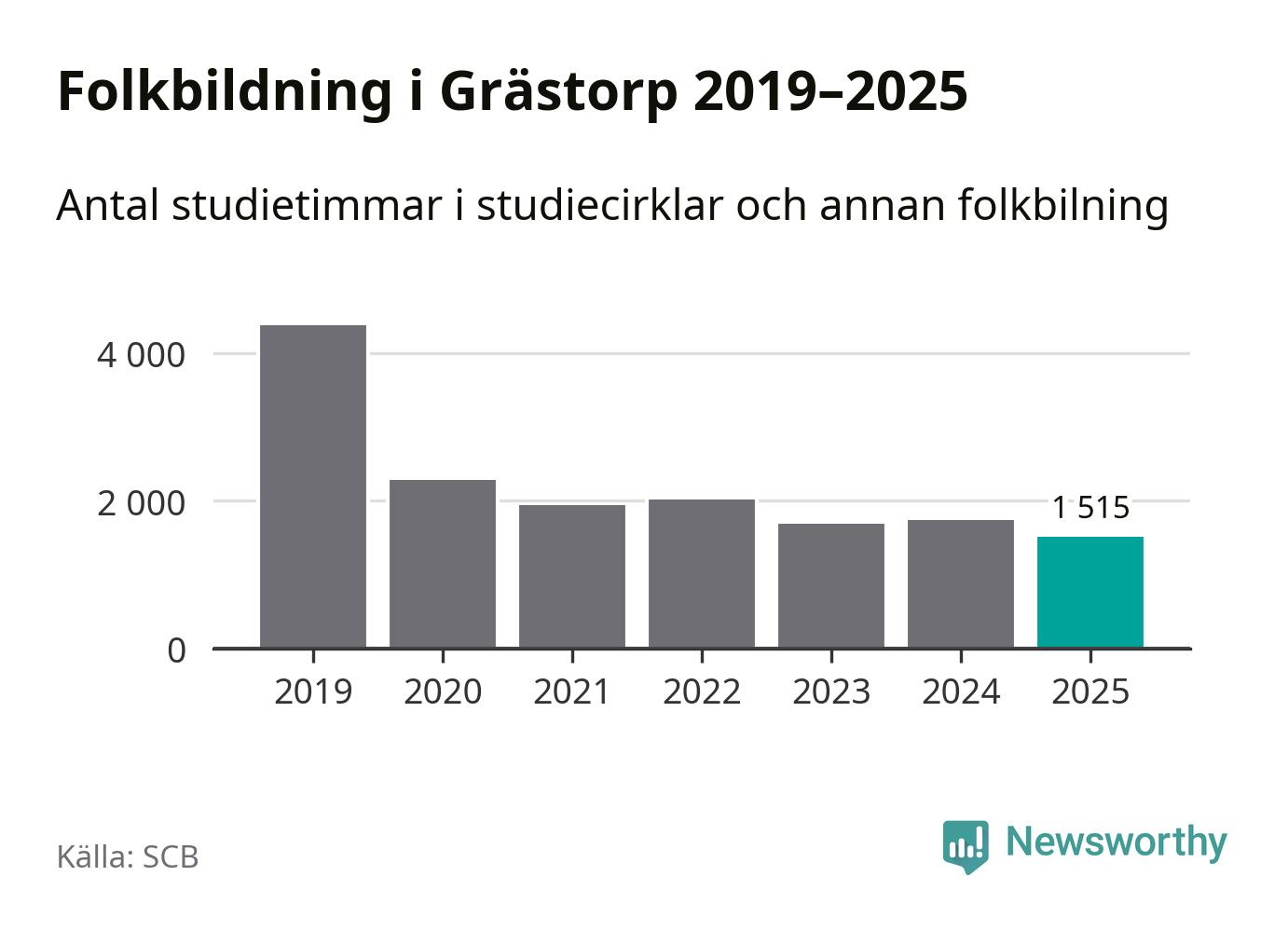 Studieförbunden drabbades hårt av pandemin. Även i Grästorp noterades det lägsta antalet studietimmar under 2021, som då var 56 procent färre än 2019 – vilket fortfarande är fler än 2025.