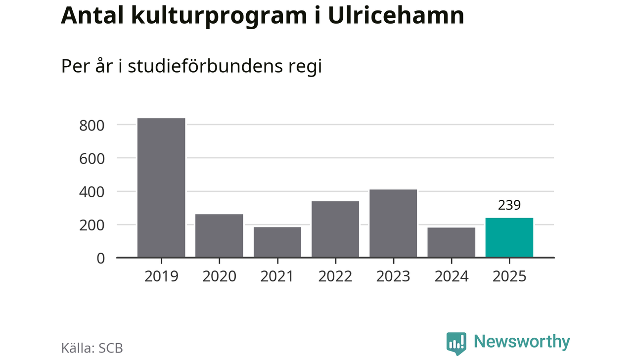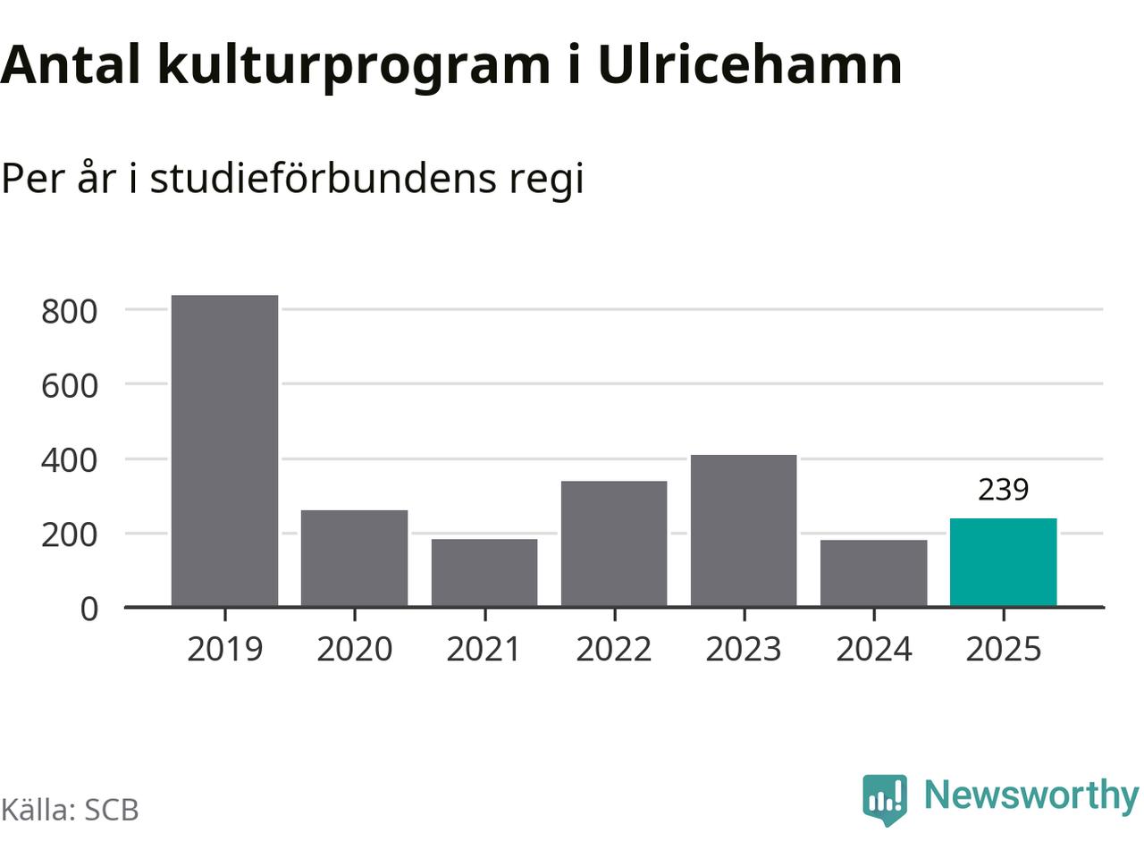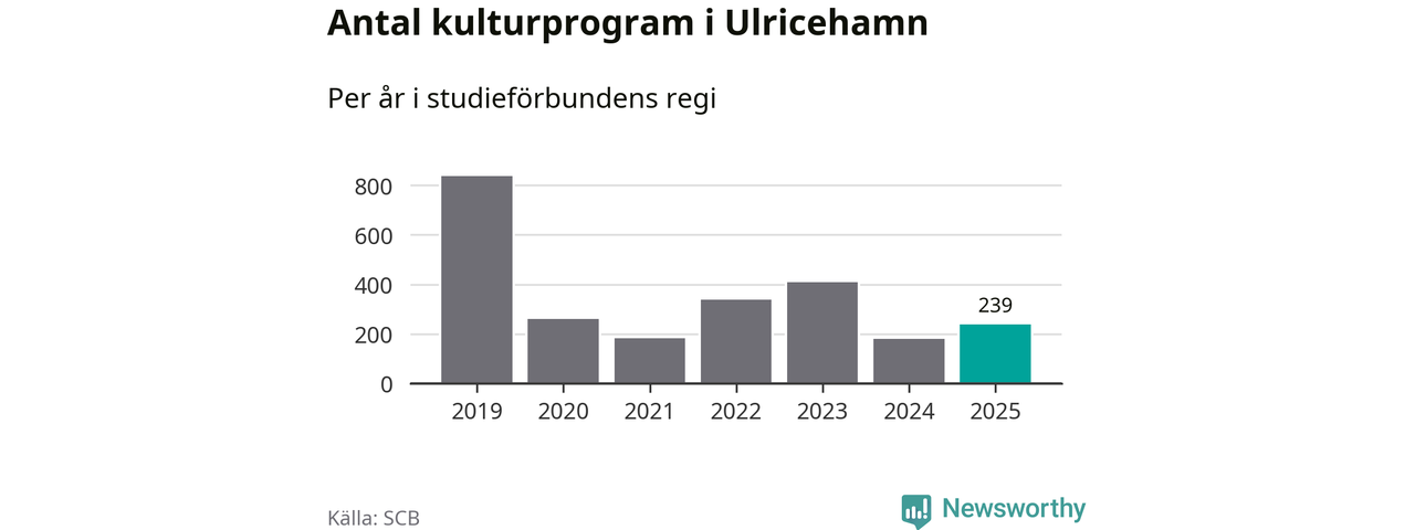 Åtta av de studieförbund som 2025 fick bidrag från Folkbildningsrådet har haft någon form av verksamhet – antingen studiecirkel, annan folkbildning eller kulturprogram – i Ulricehamn under de två senaste åren. Under 2025 ökade Studiefrämjandet antalet studietimmar i kommunen jämfört med året innan, medan sex andra förbund i kommunen noterade färre timmar. Folkuniversitetet har bara arrangerat kulturprogram under 2025.