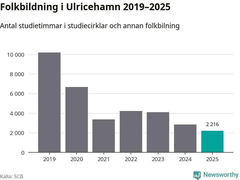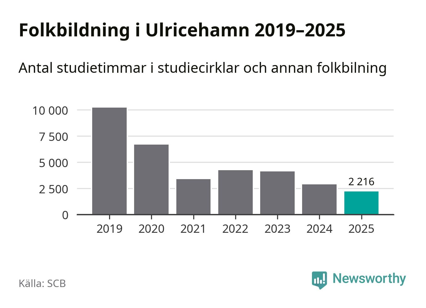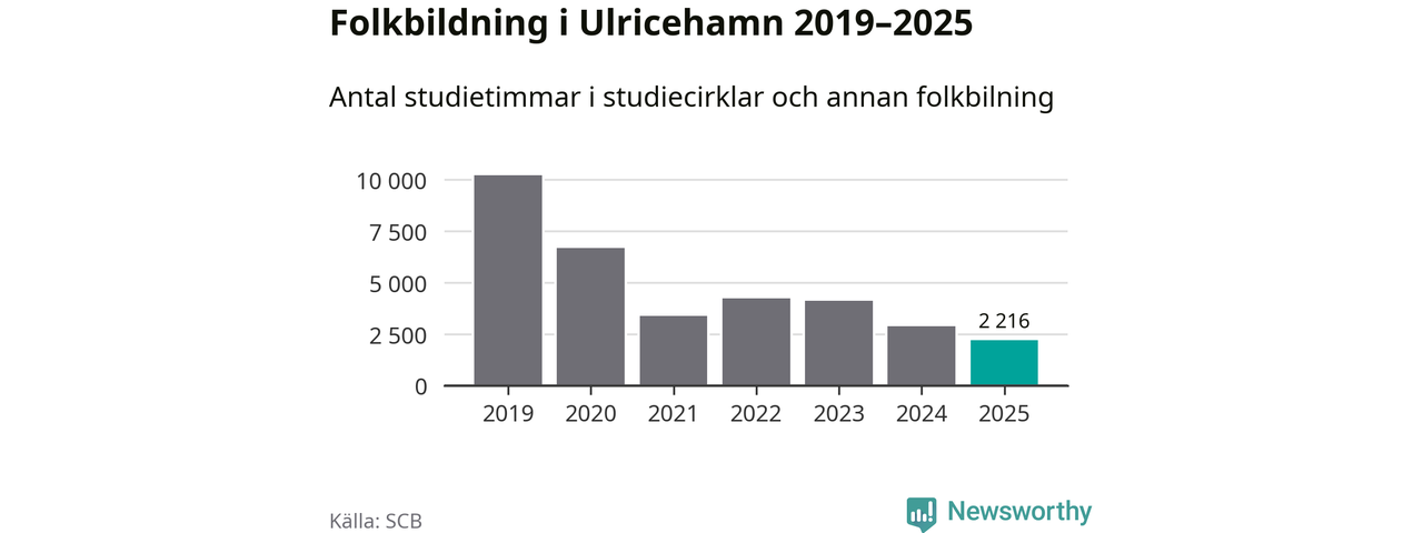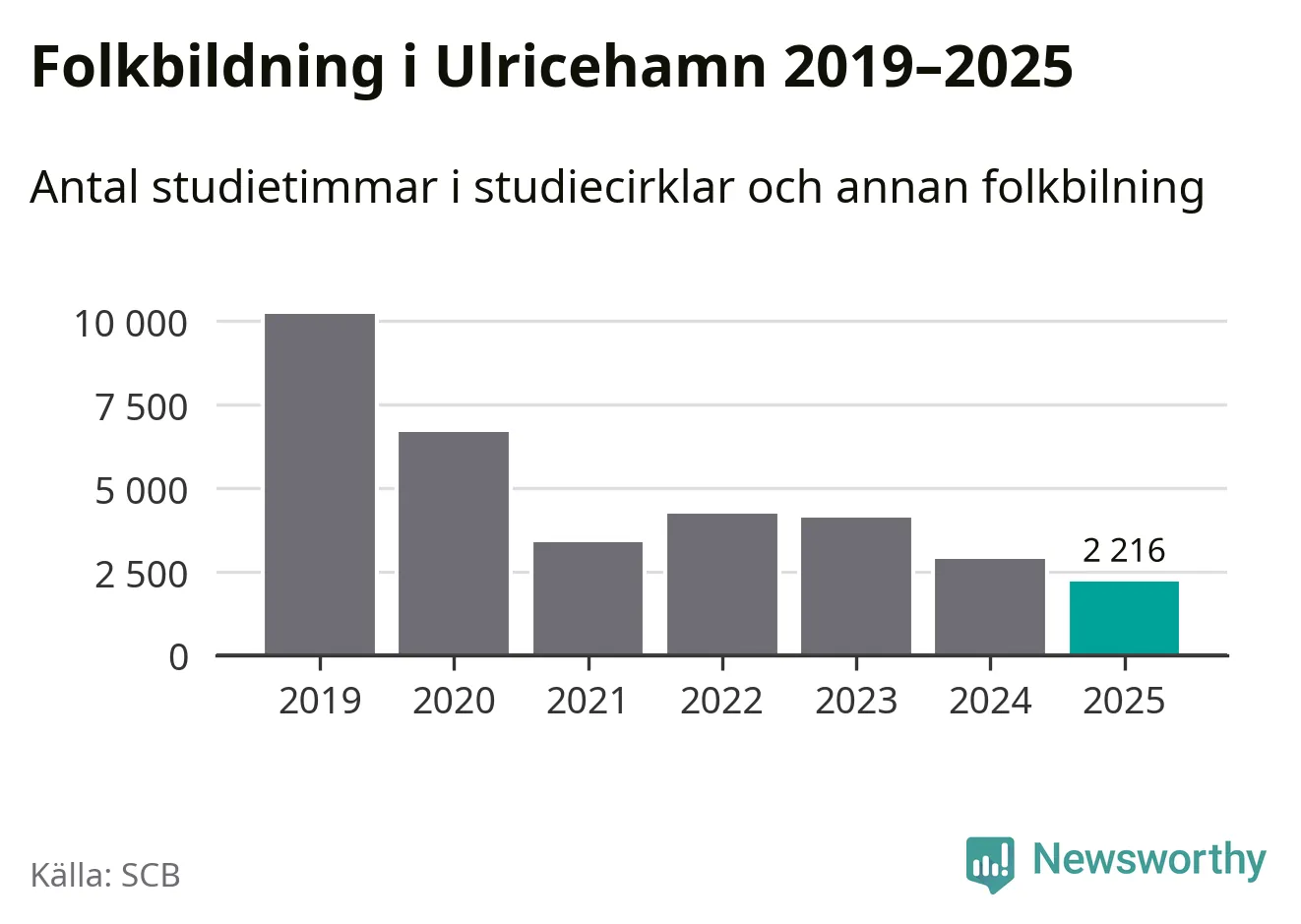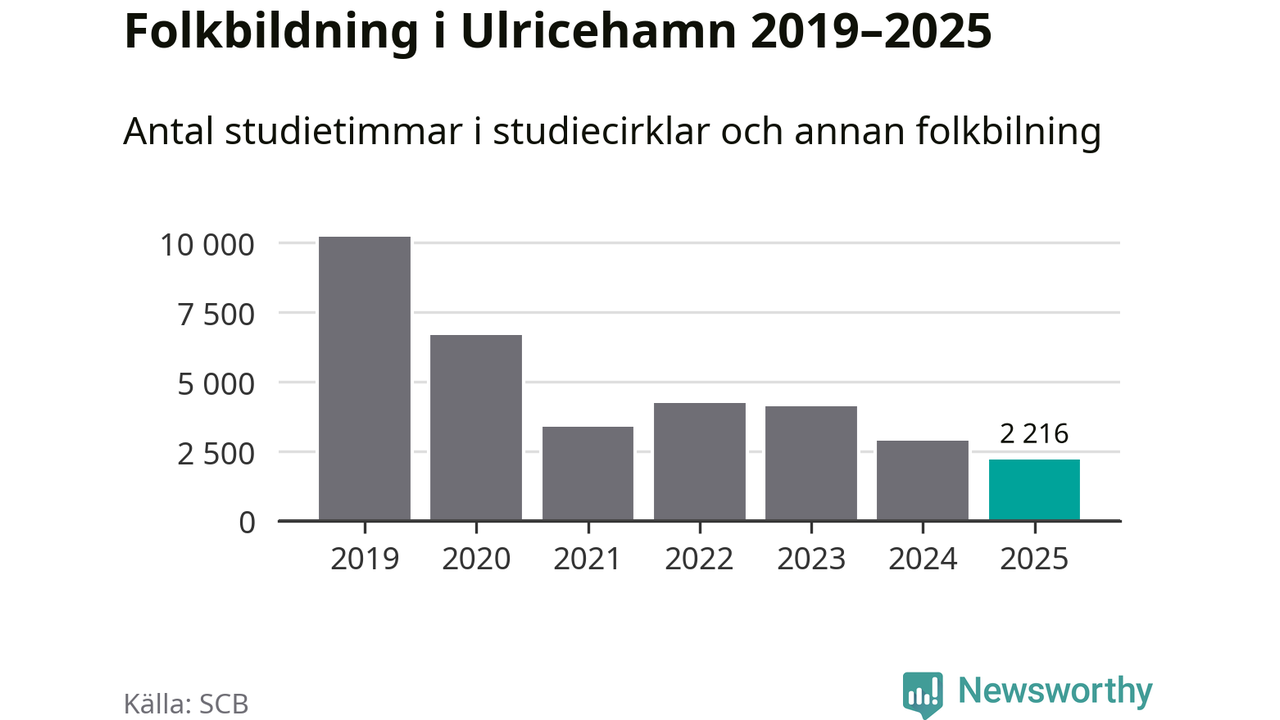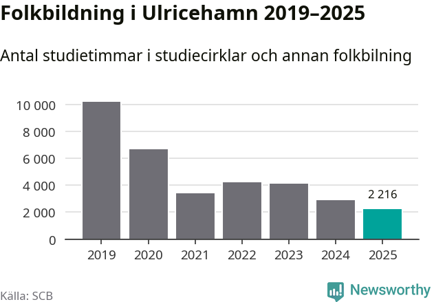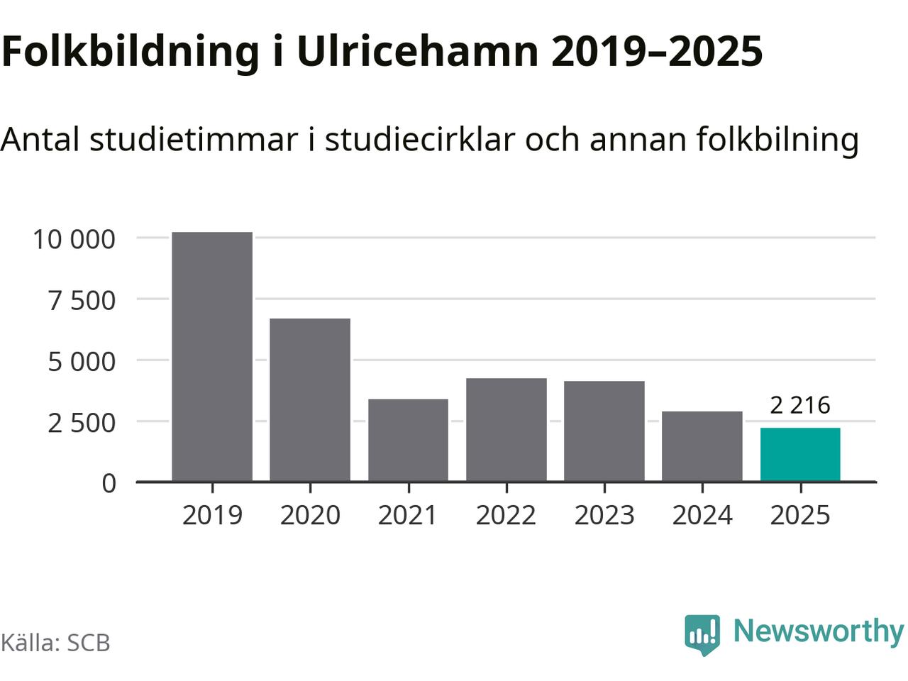 Studieförbunden drabbades hårt av pandemin. Även i Ulricehamn noterades det lägsta antalet studietimmar under 2021, som då var 67 procent färre än 2019 – vilket fortfarande är fler än 2025.