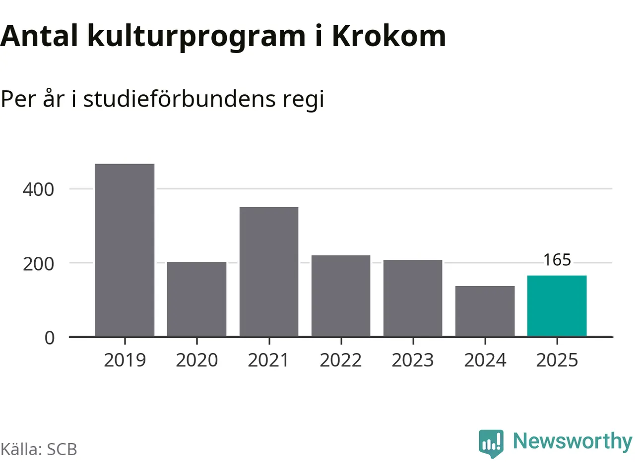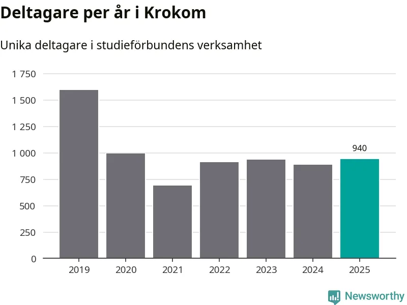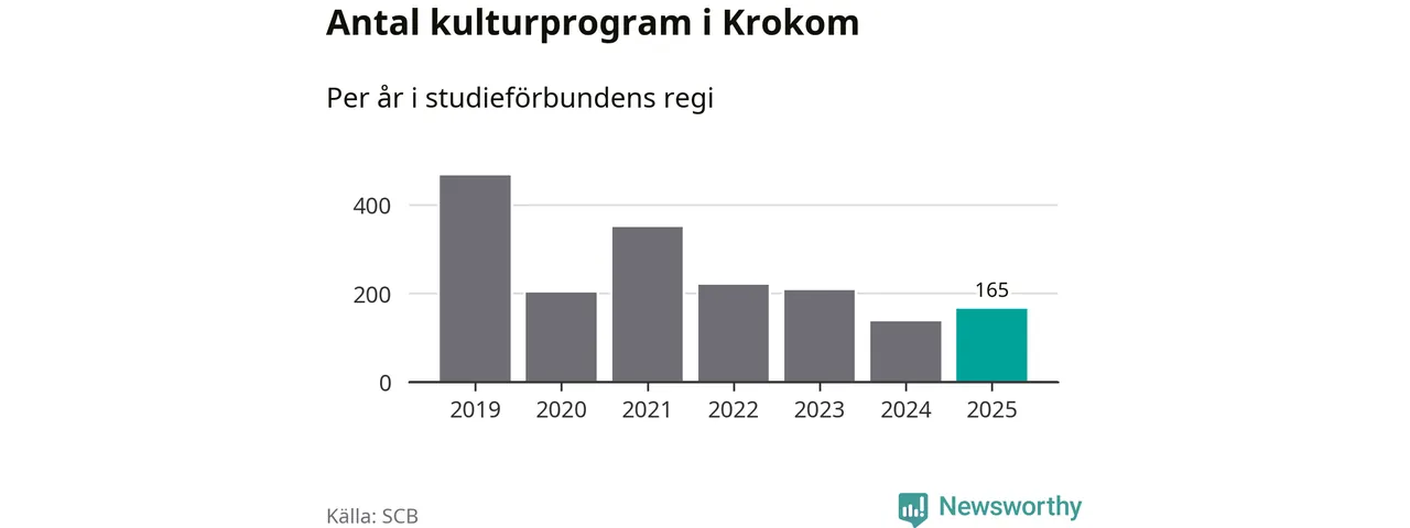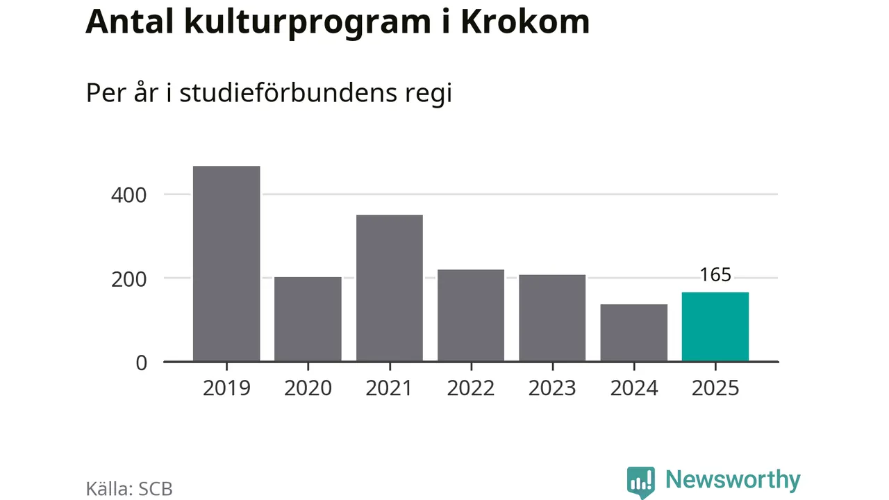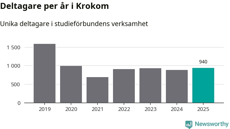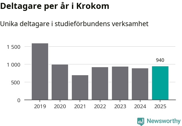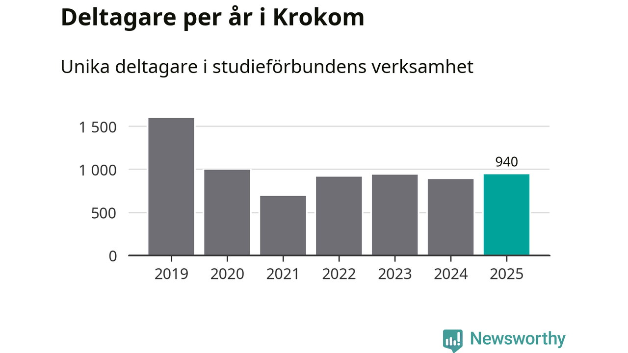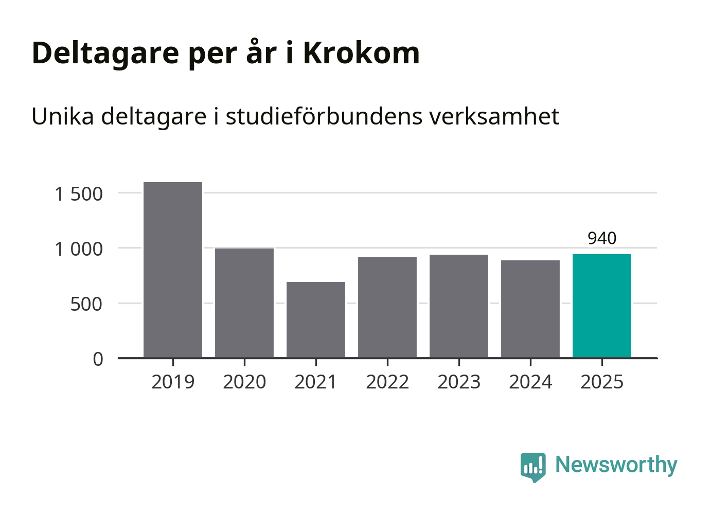 Antalet unika deltagare ökade i Krokom i fjol: från 888 till 940 personer. Det innebär att sex procent av befolkningen i kommunen deltog i studieförbundens verksamhet under 2025. Det är den näst lägsta andelen i Jämtland.