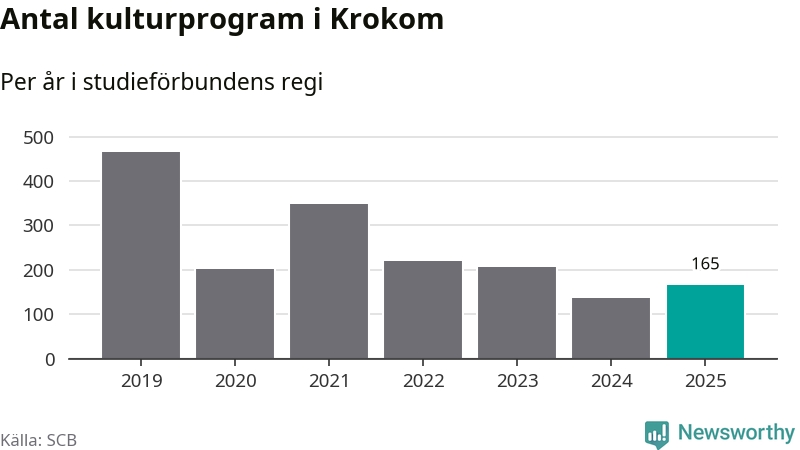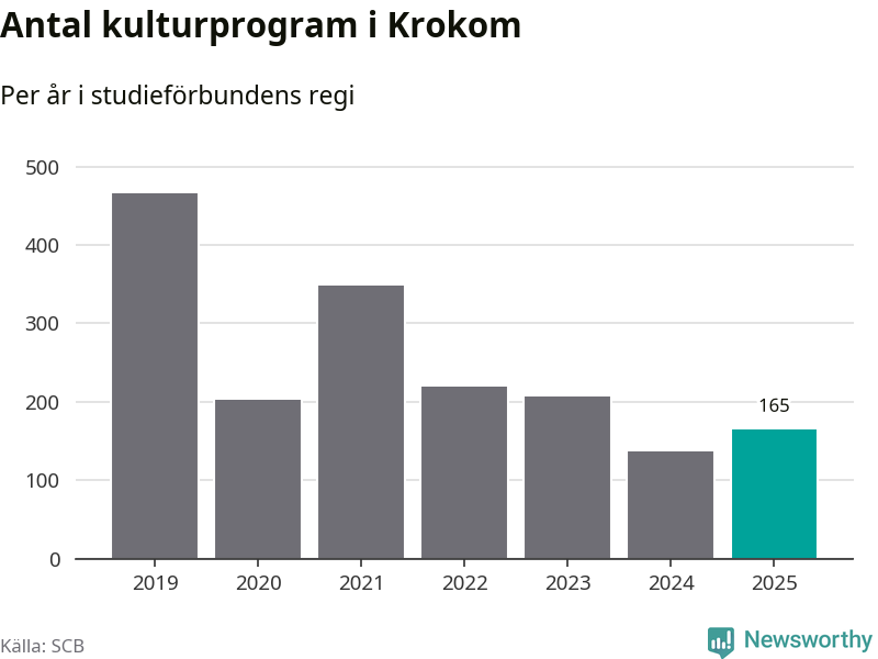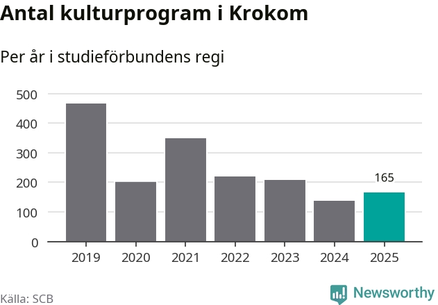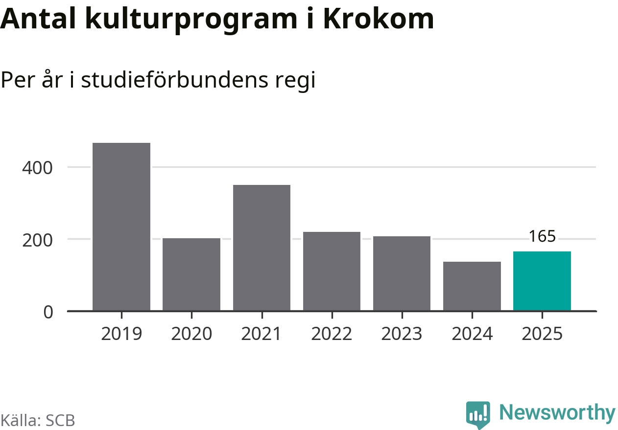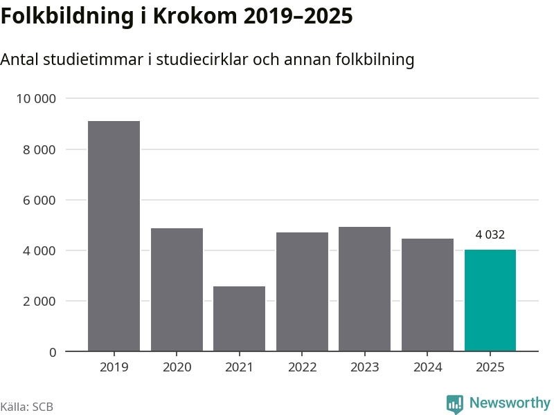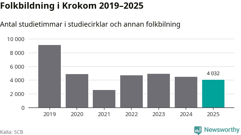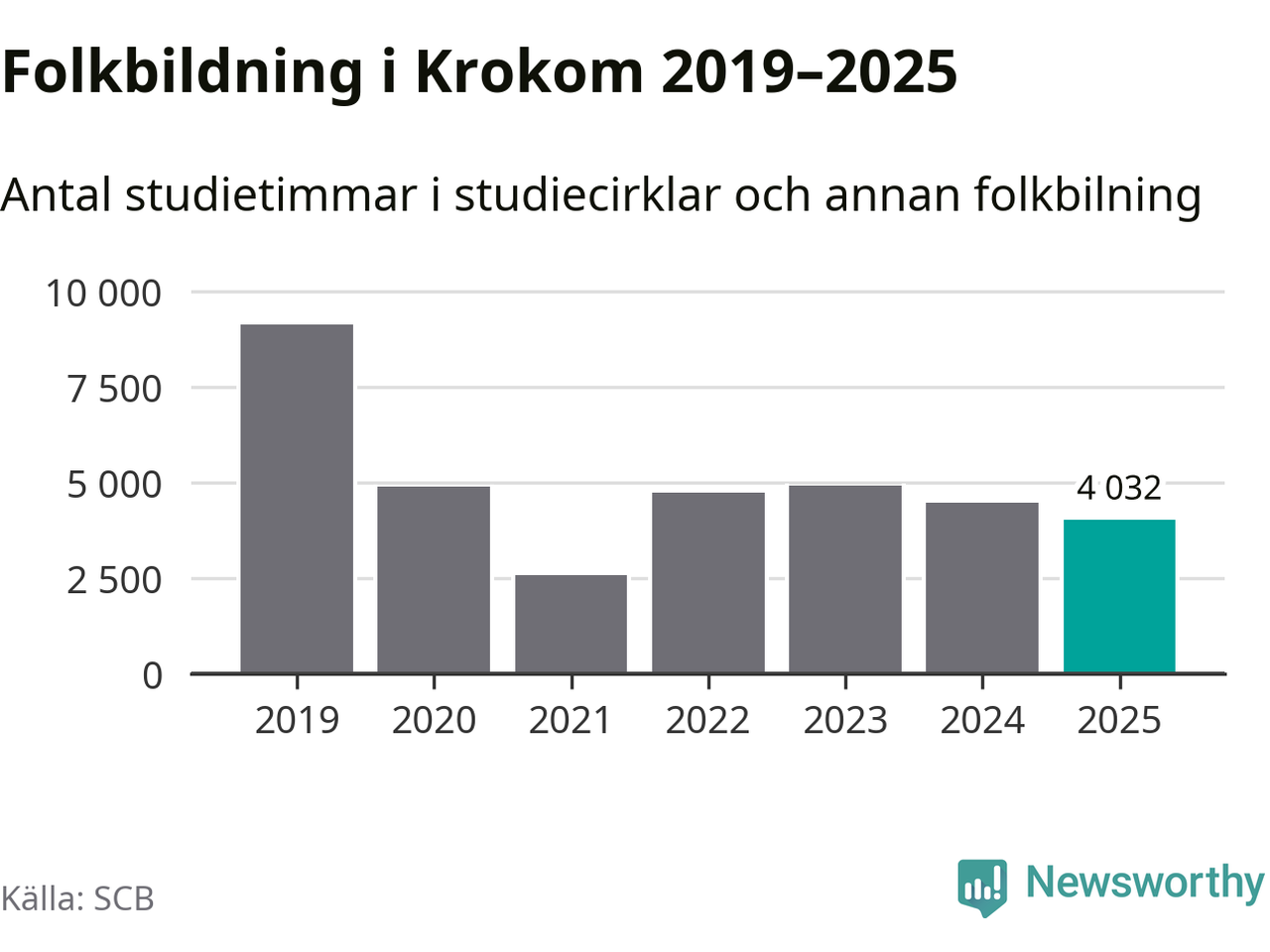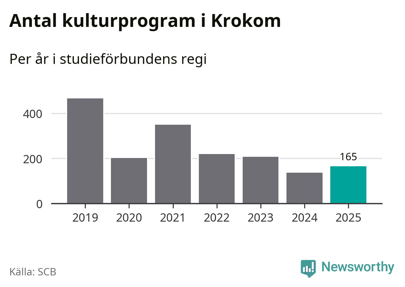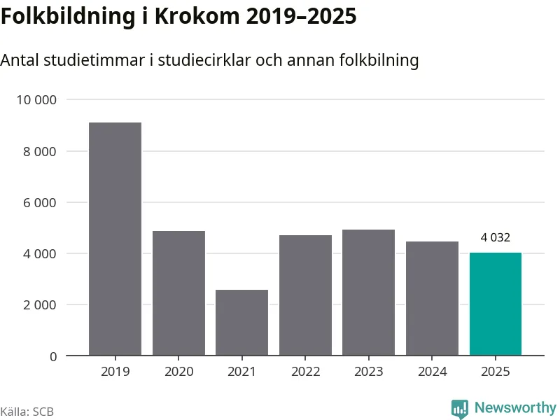 Studieförbunden drabbades hårt av pandemin. Även i Krokom noterades det lägsta antalet studietimmar under 2021, som då var 72 procent färre än 2019. År 2024 var antalet studietimmar åter högre men de var fortfarande långt från förpandeminivåerna.