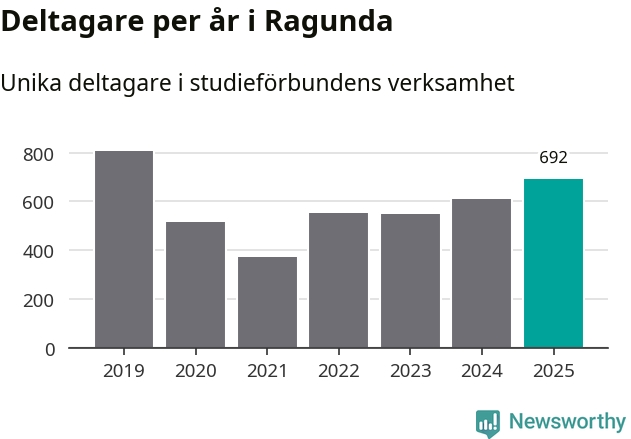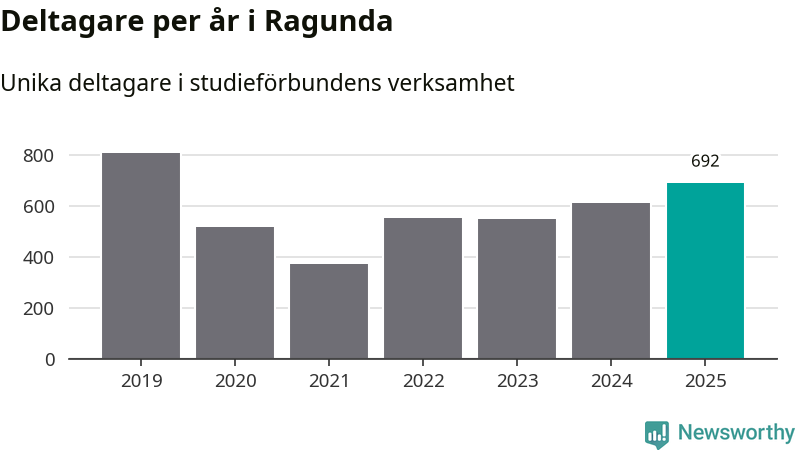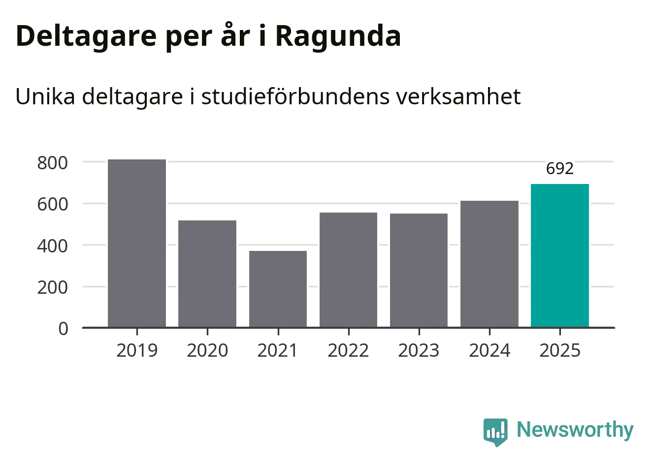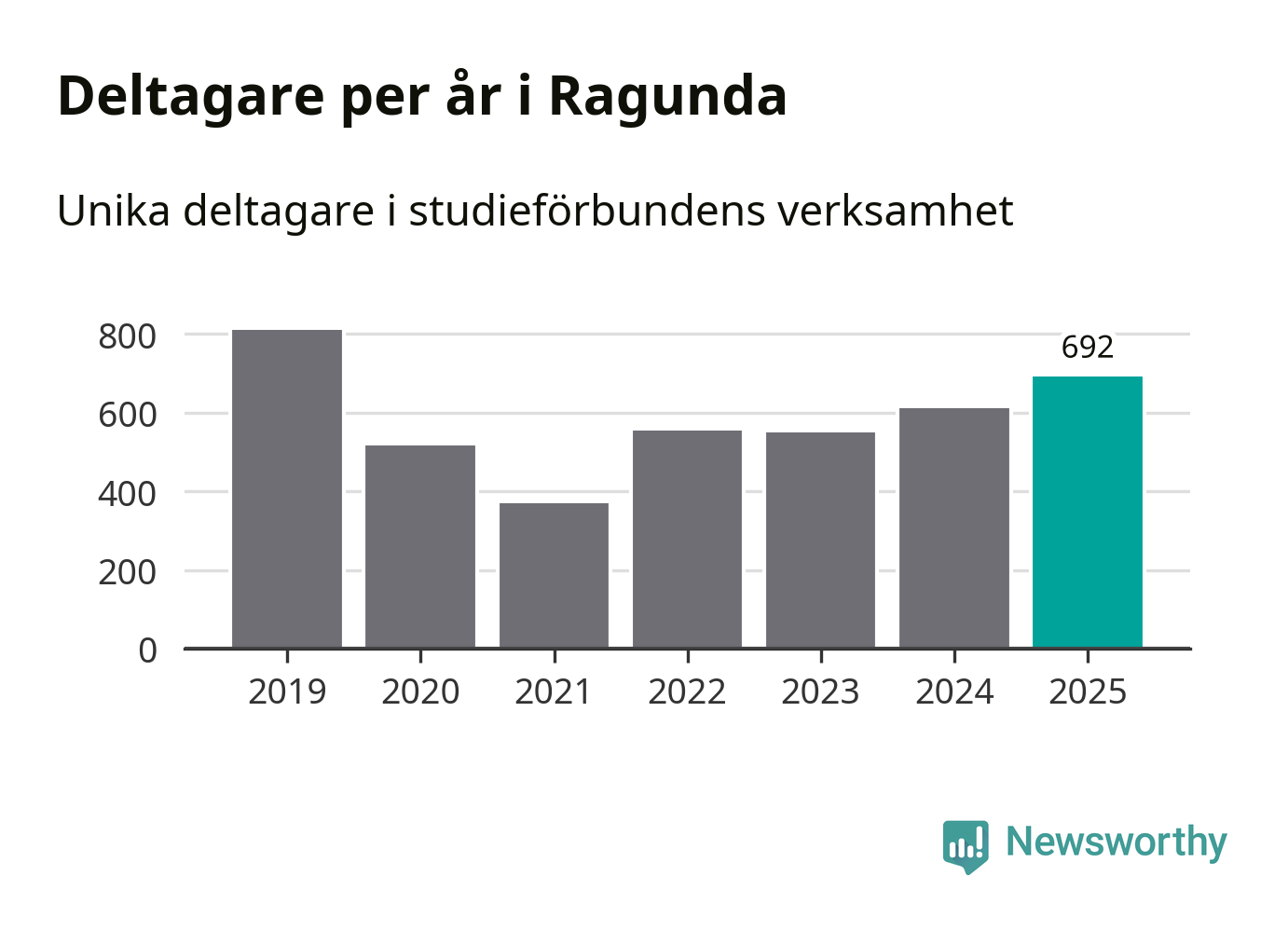 Även antalet unika deltagare ökade i Ragunda i fjol: från 611 till 692 personer. Det innebär att 13 procent av befolkningen i kommunen deltog i studieförbundens verksamhet under 2025. Det är den högsta andelen i Jämtland.