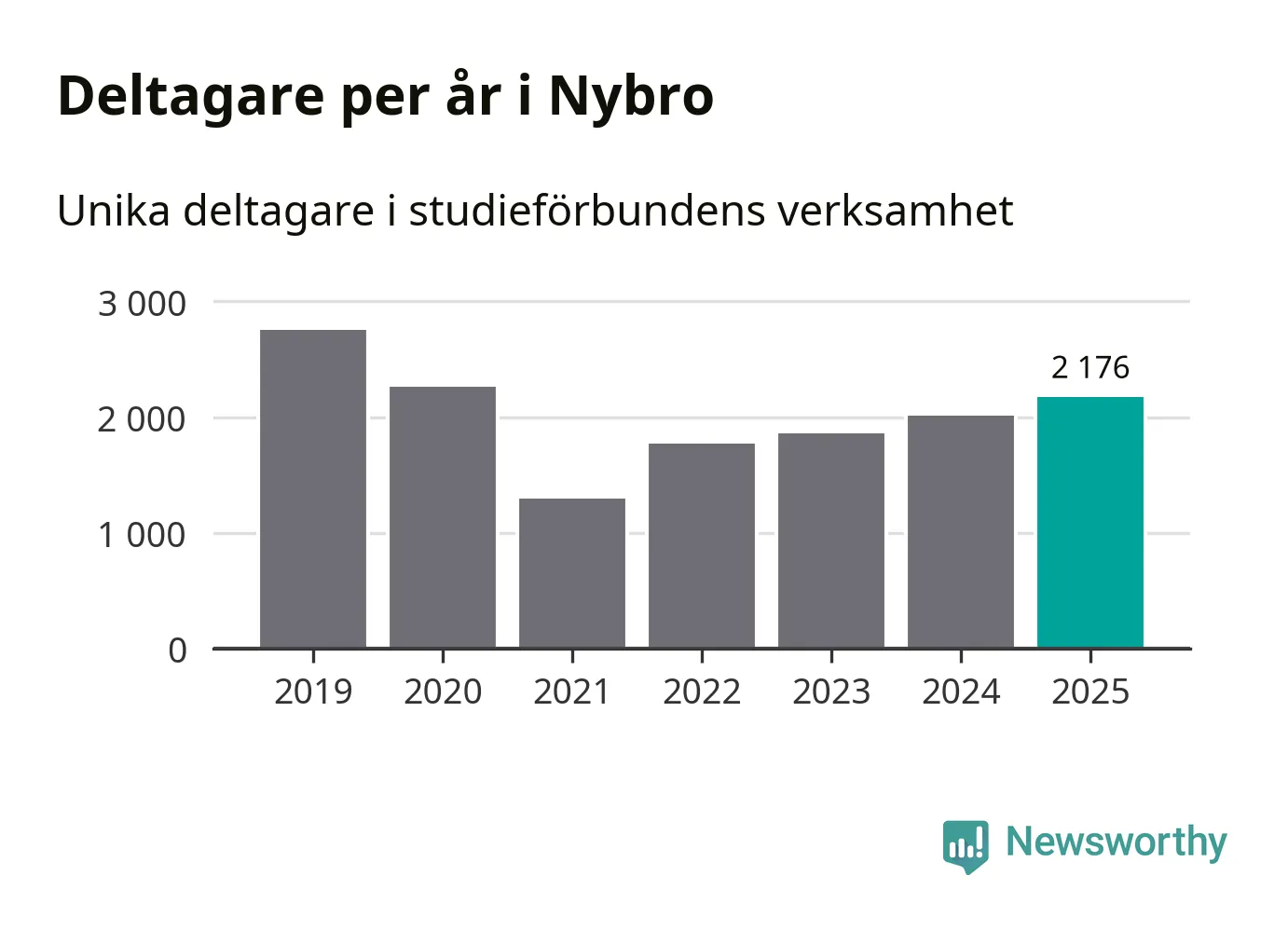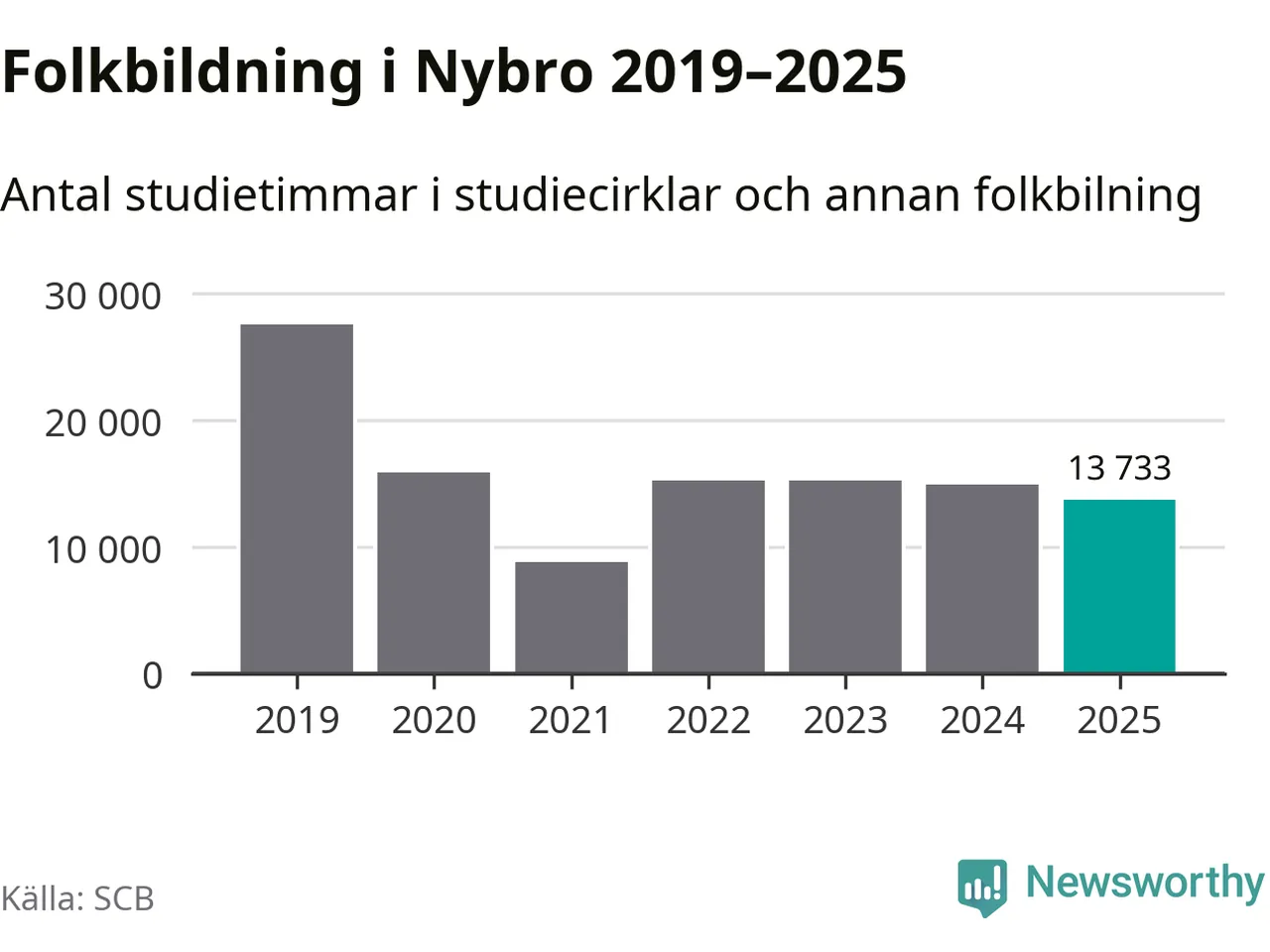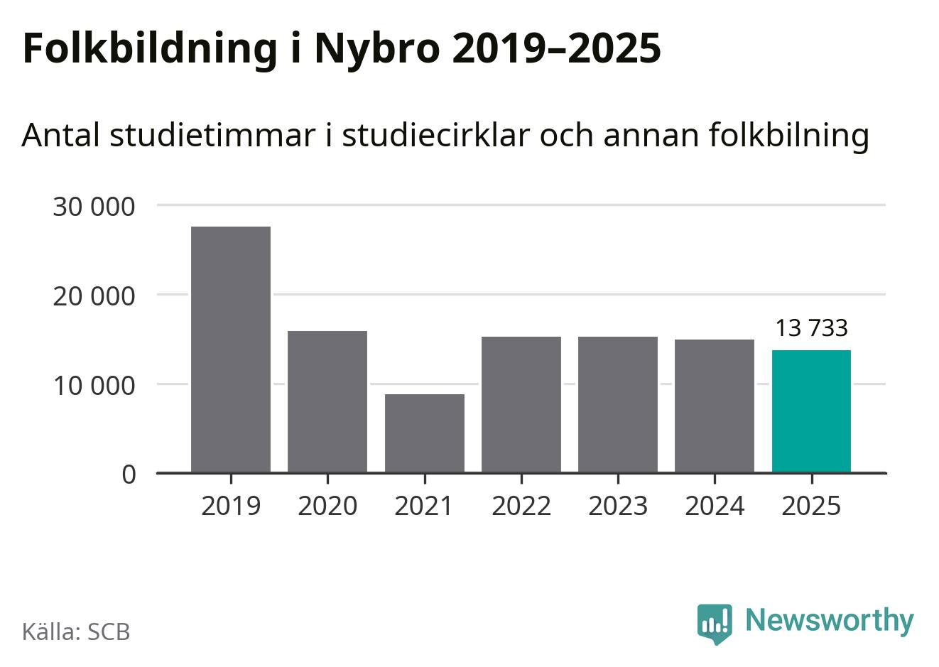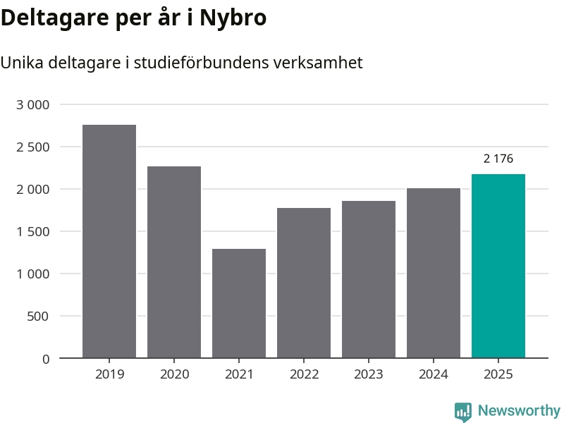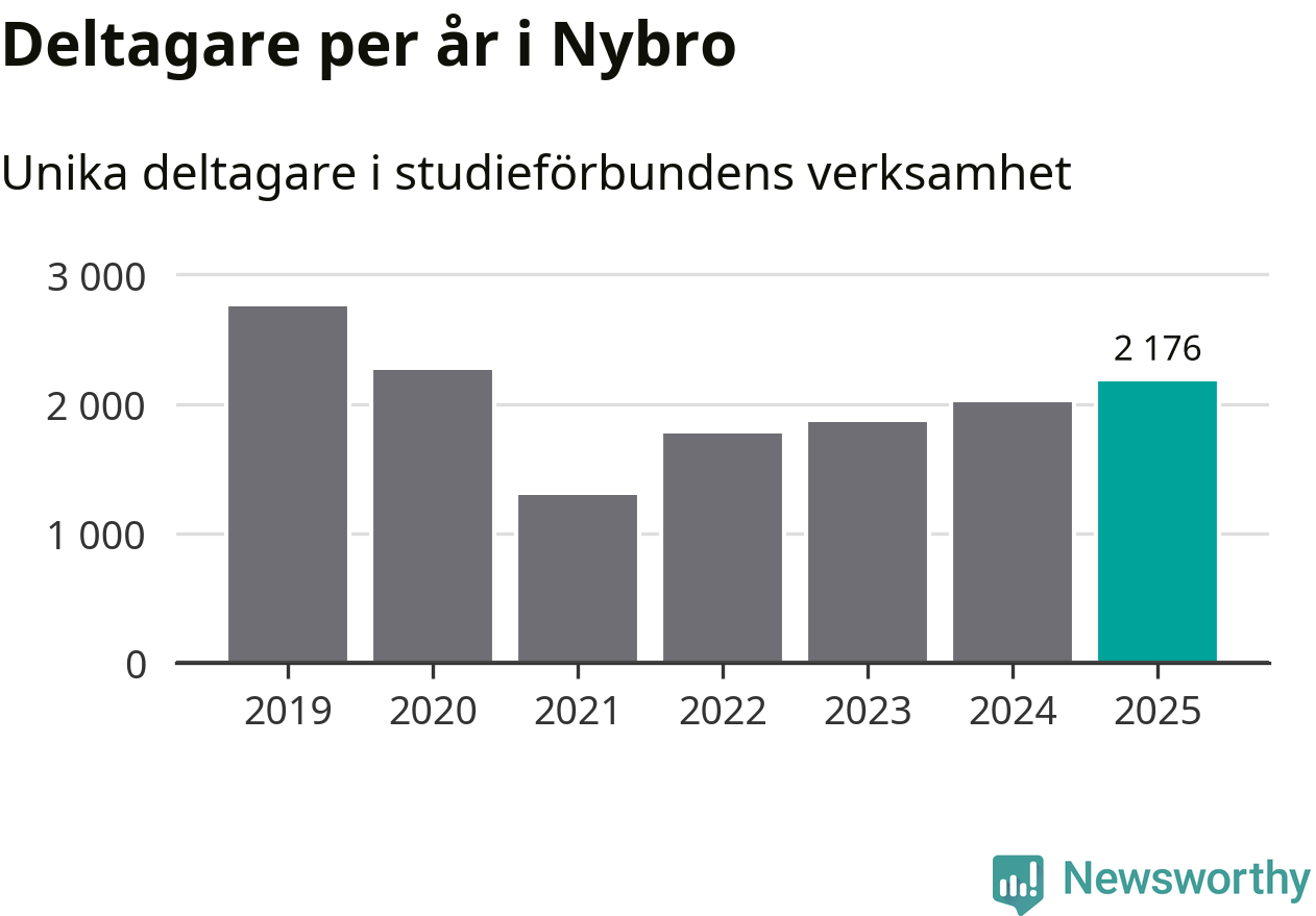 Studieförbunden drabbades hårt av pandemin. Även i Nybro noterades det lägsta antalet studietimmar under 2021, som då var 68 procent färre än 2019. År 2024 var antalet studietimmar åter högre men de var fortfarande långt från förpandeminivåerna.