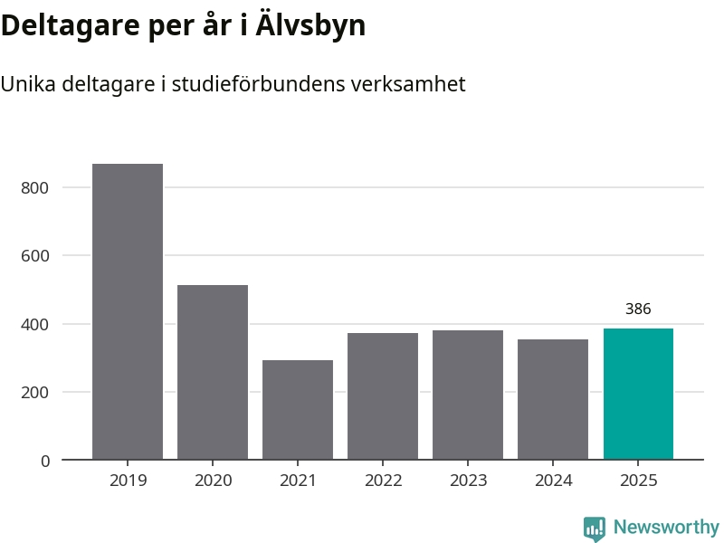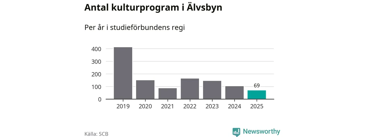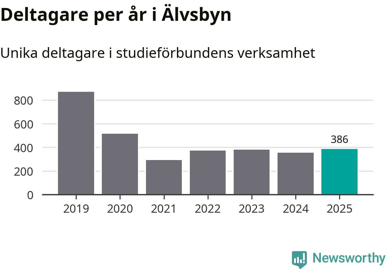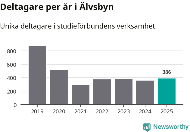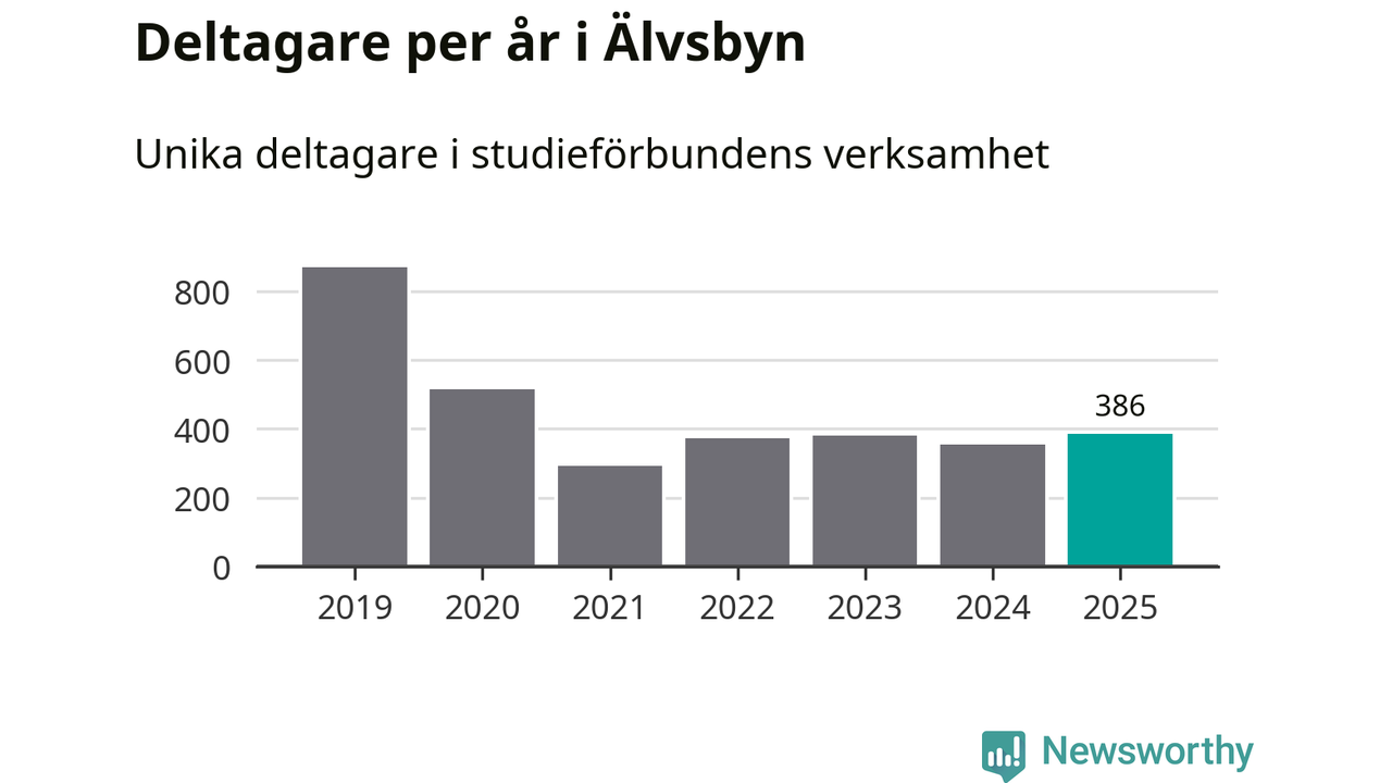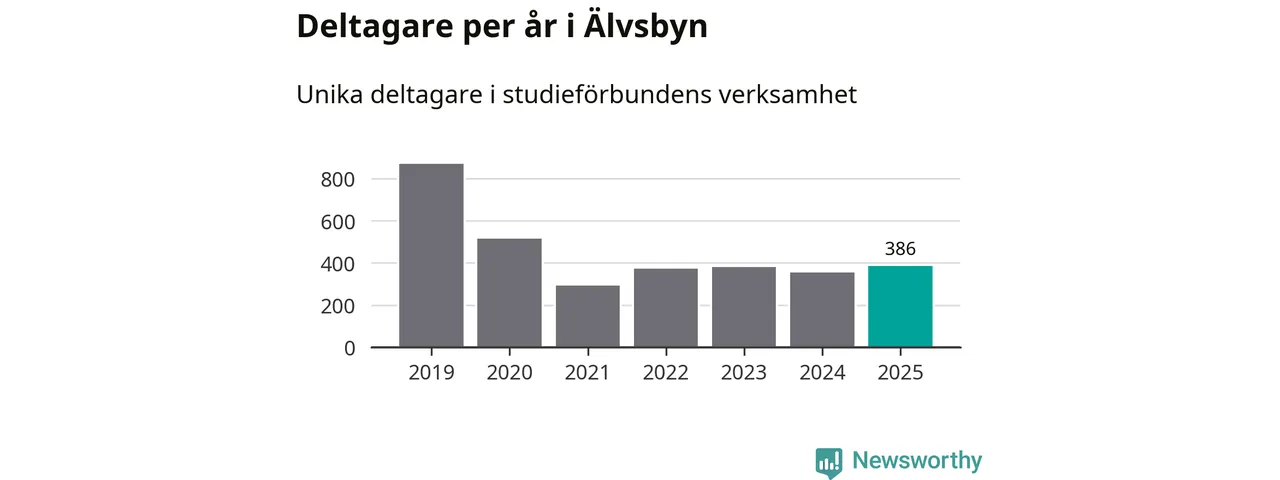 Antalet unika deltagare ökade i Älvsbyn i fjol: från 355 till 386 personer. Det innebär att fem procent av befolkningen i kommunen deltog i studieförbundens verksamhet under 2025. Det är den näst lägsta andelen i Norrbotten.