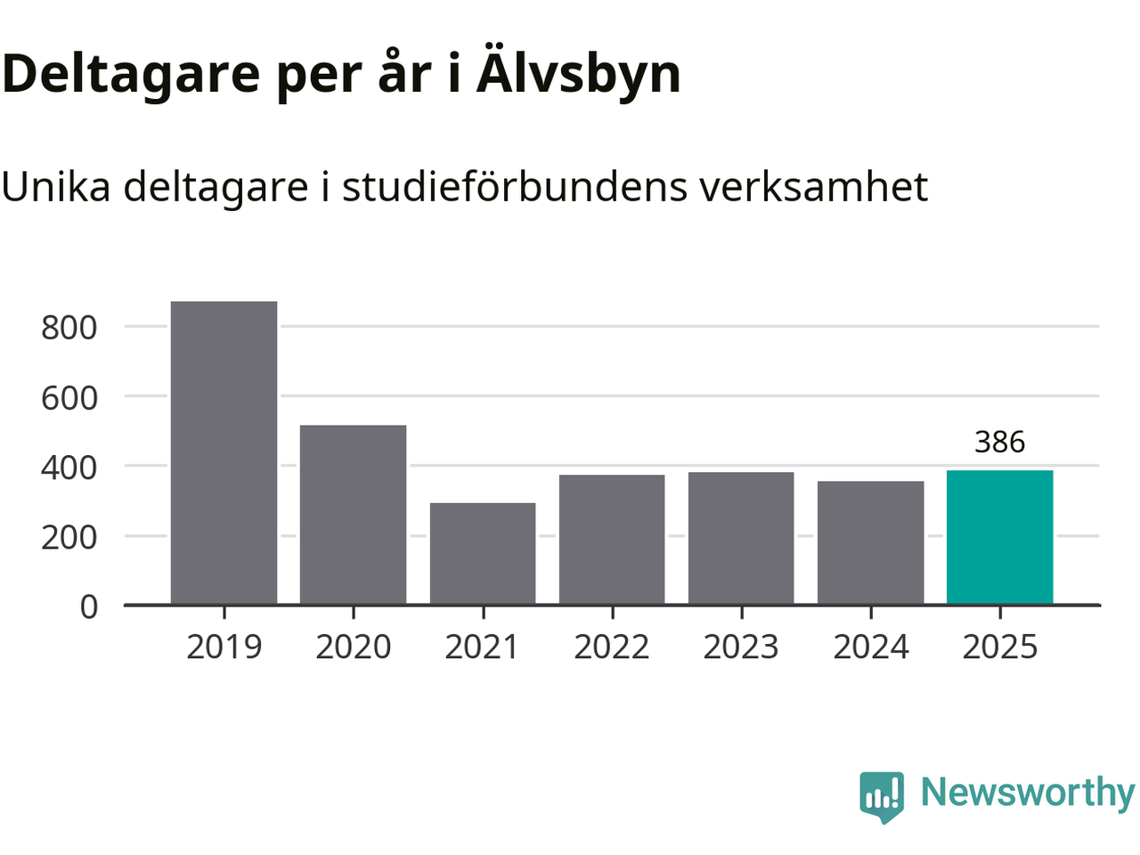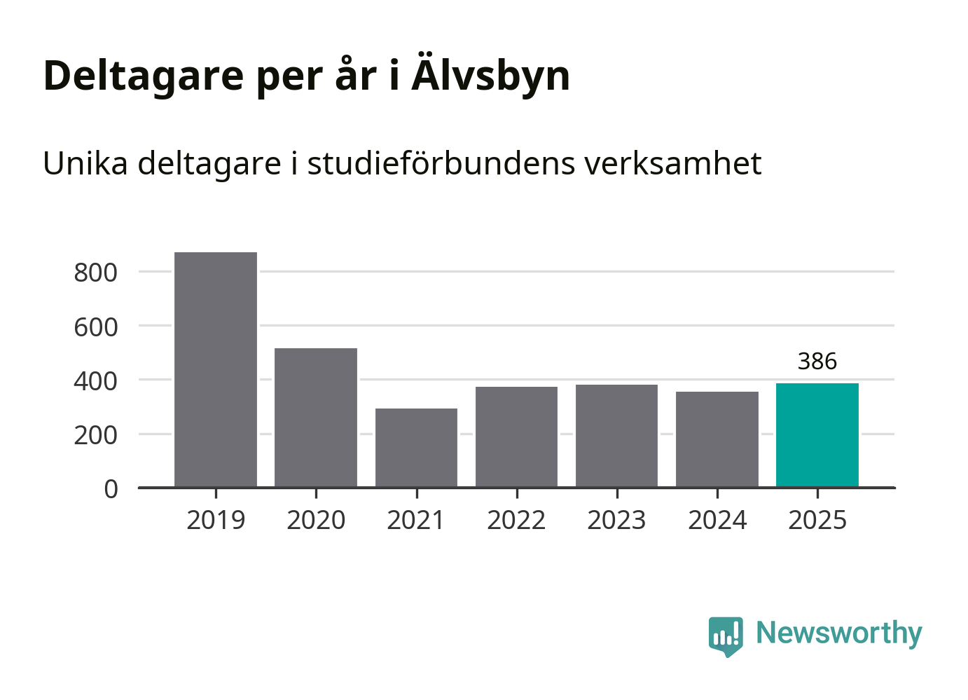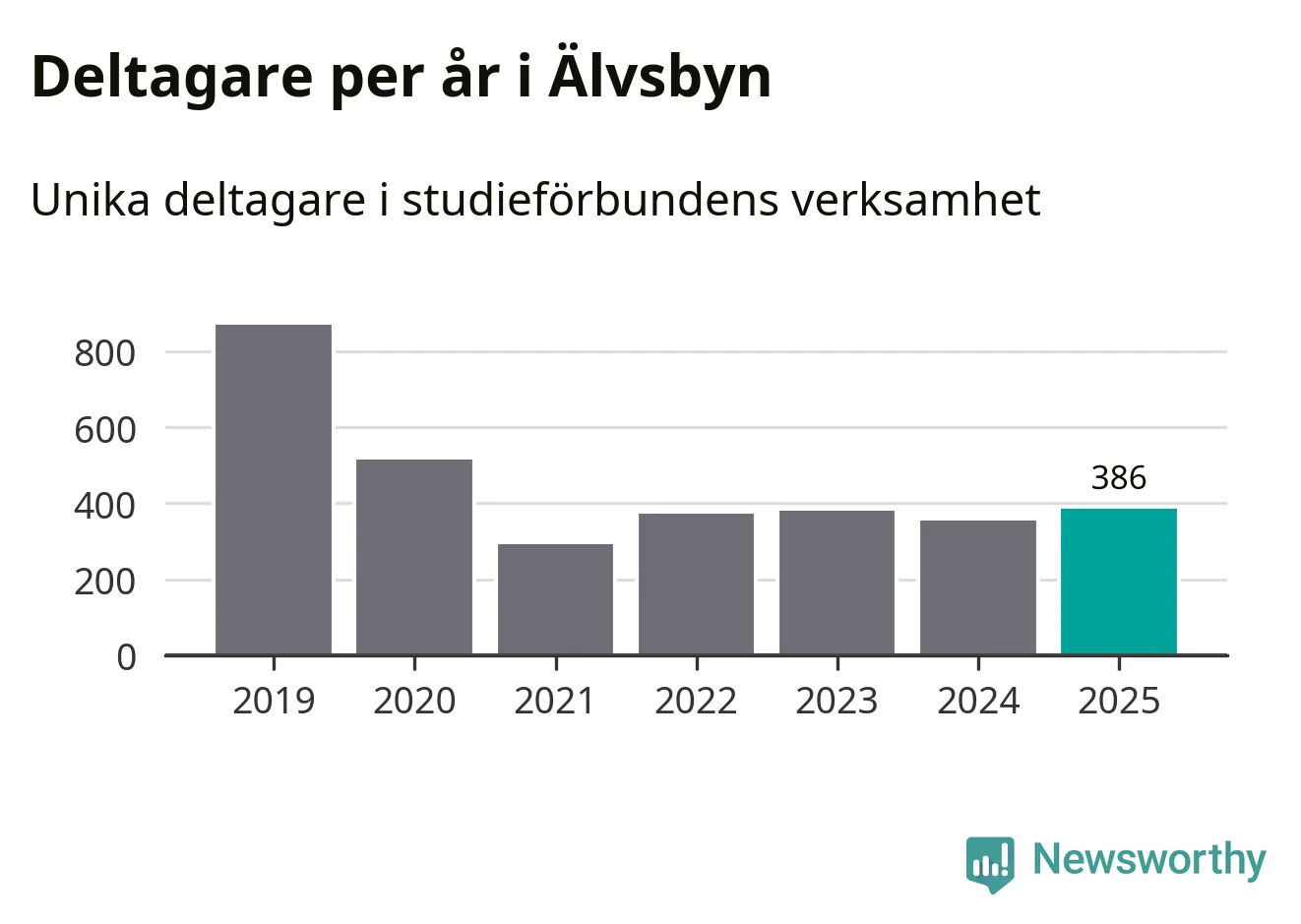 Antalet unika deltagare ökade i Älvsbyn i fjol: från 355 till 386 personer. Det innebär att fem procent av befolkningen i kommunen deltog i studieförbundens verksamhet under 2025. Det är den näst lägsta andelen i Norrbotten.