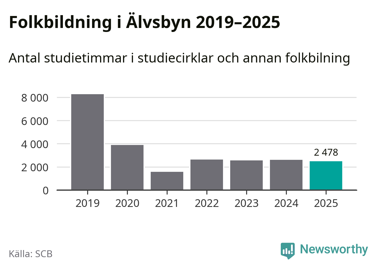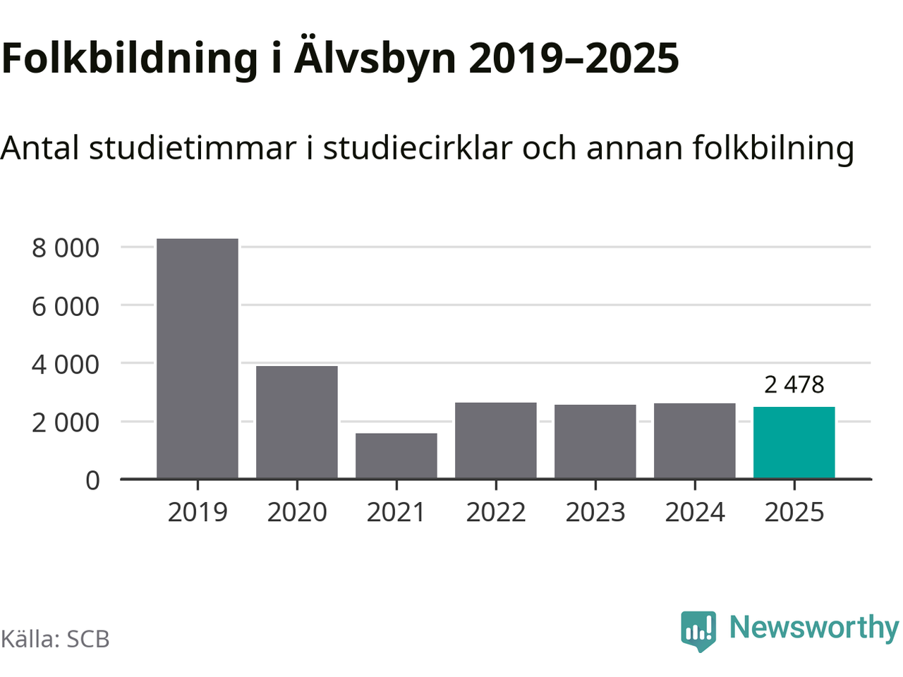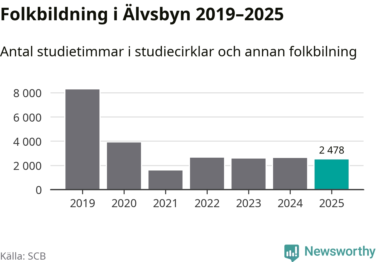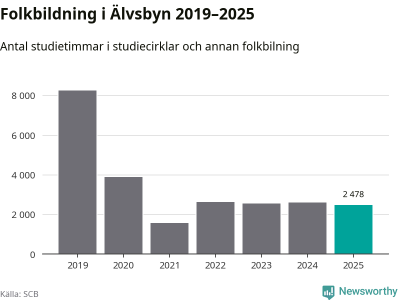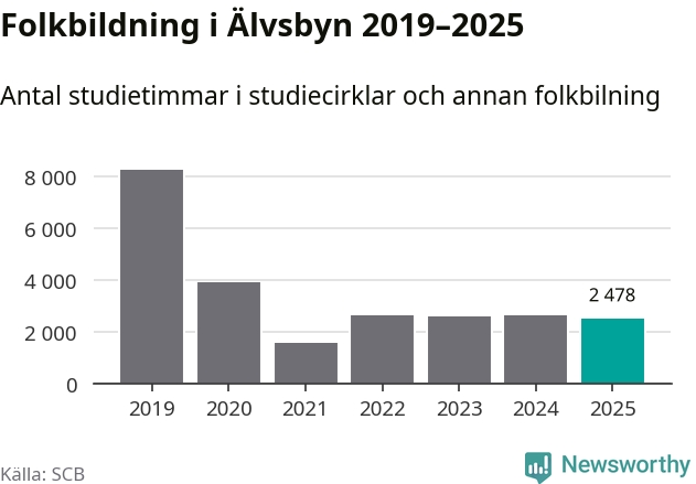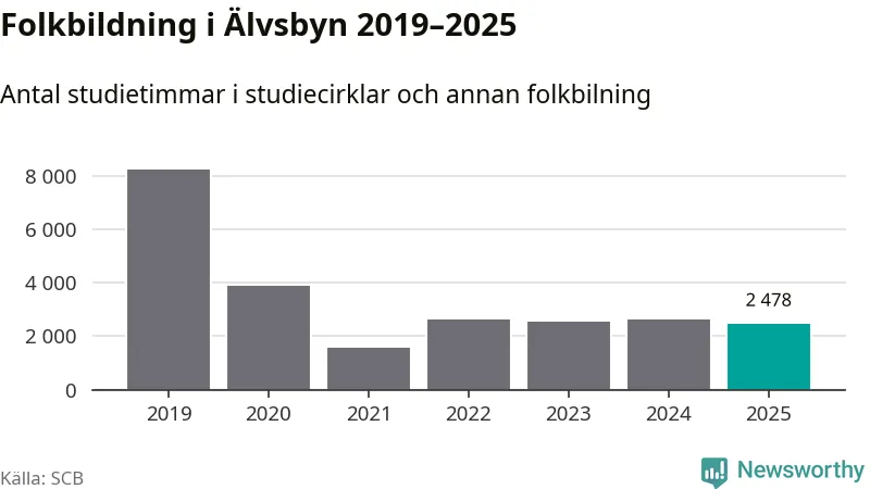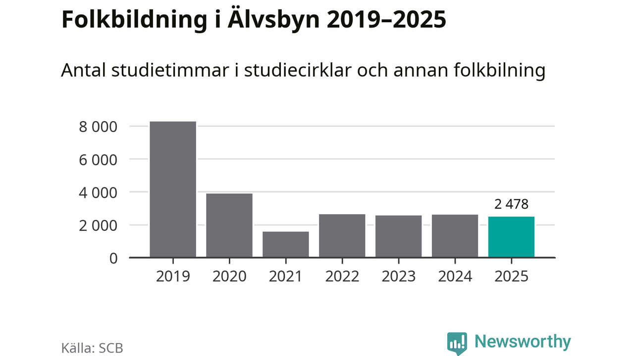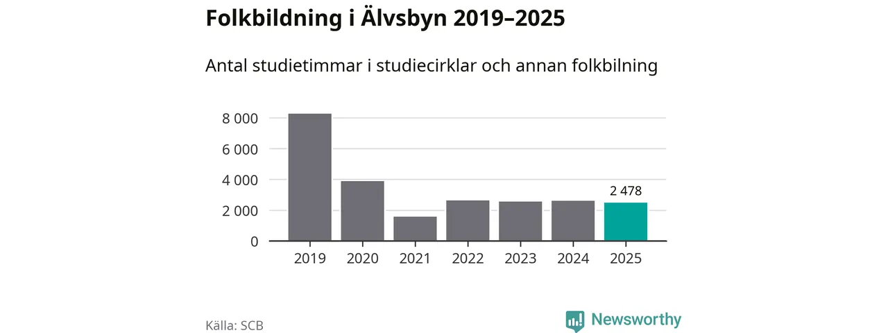 Studieförbunden drabbades hårt av pandemin. Även i Älvsbyn noterades det lägsta antalet studietimmar under 2021, som då var 81 procent färre än 2019. År 2024 var antalet studietimmar åter högre men de var fortfarande långt från förpandeminivåerna.