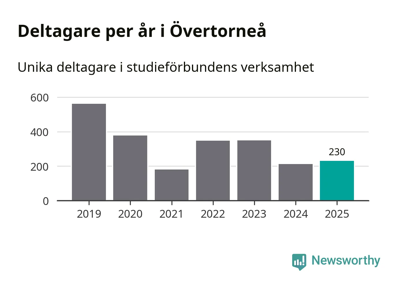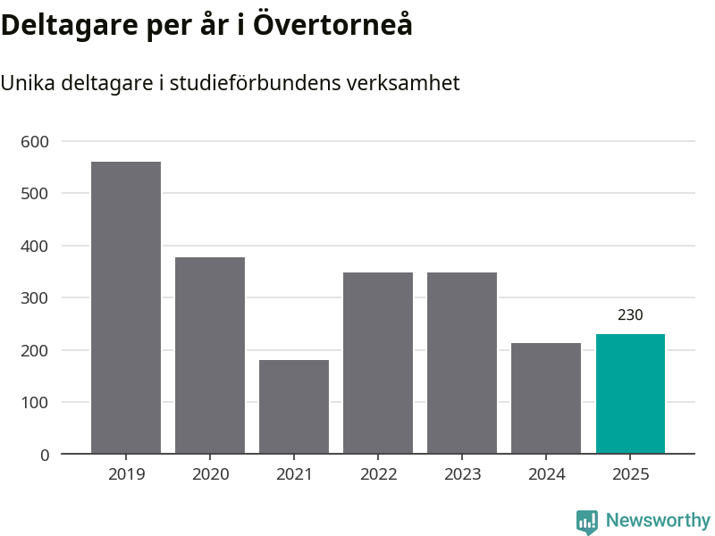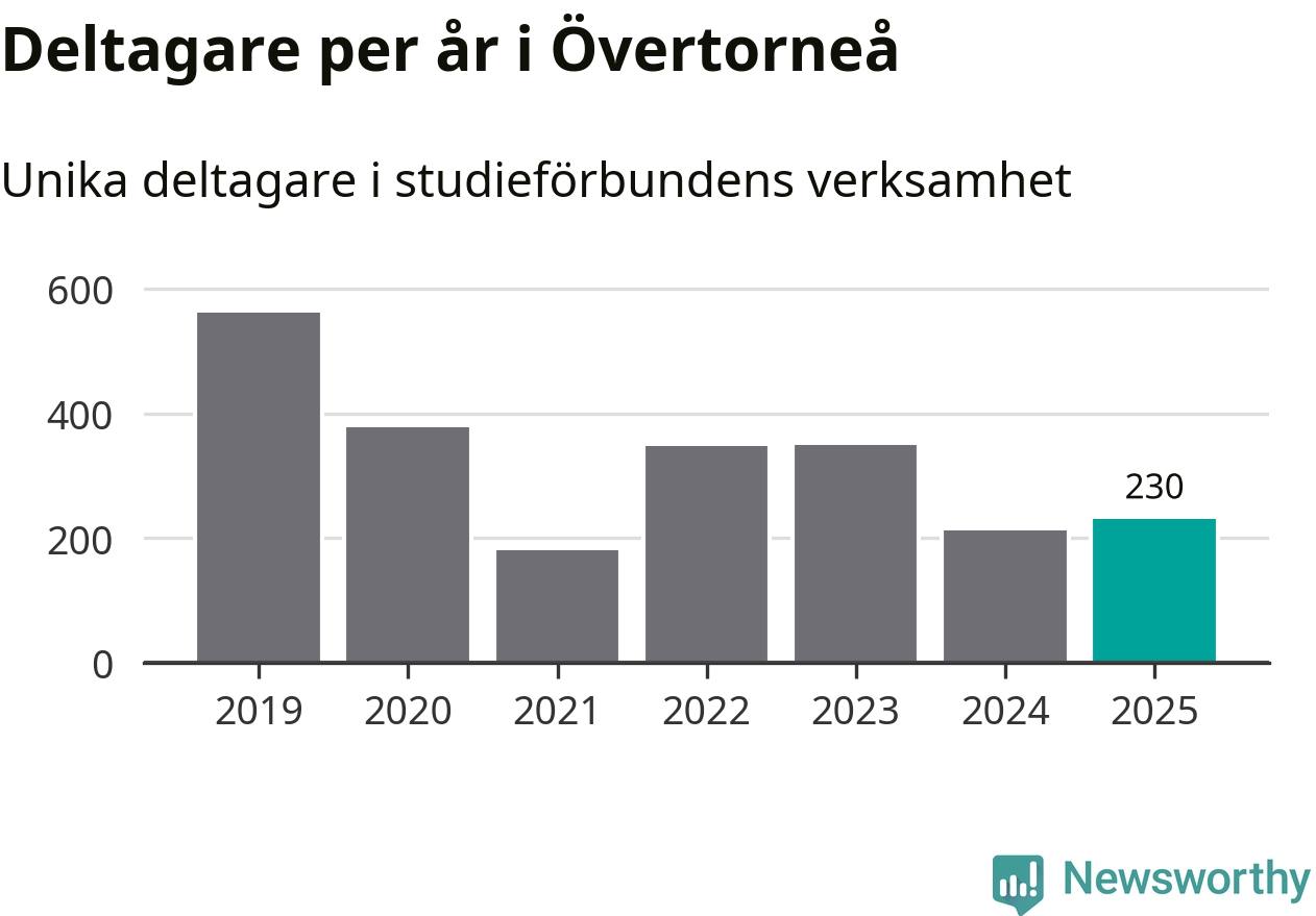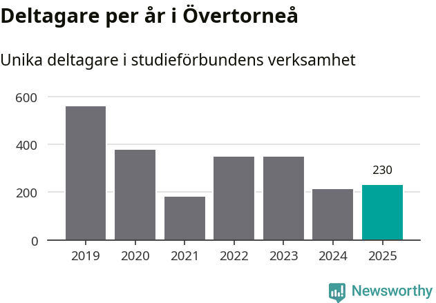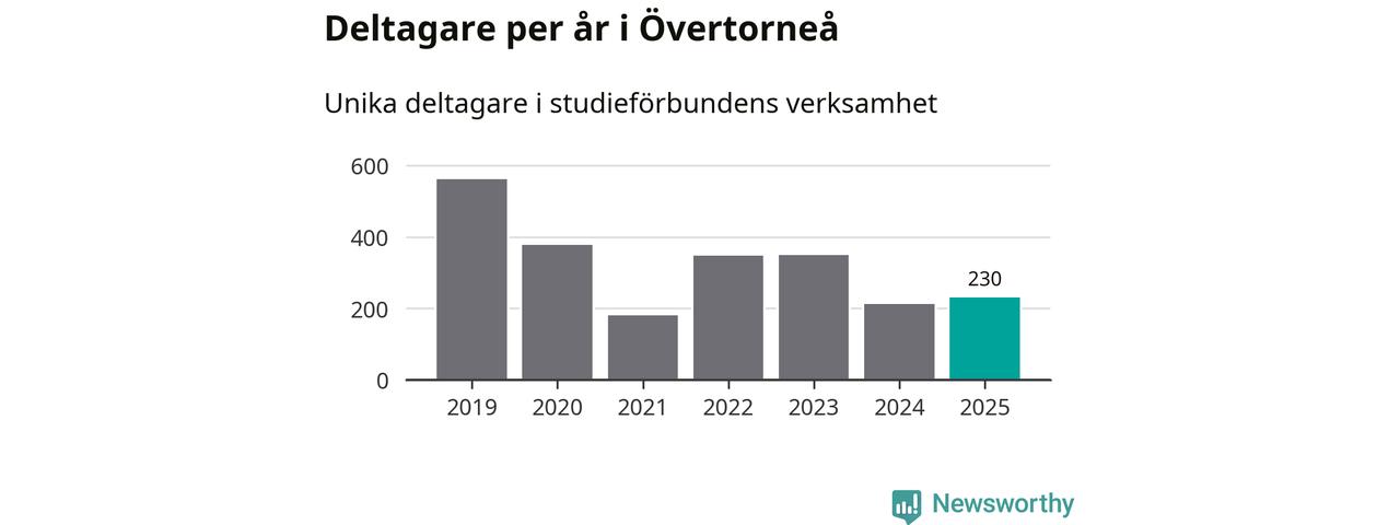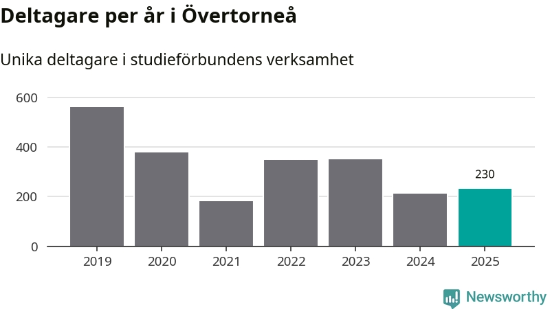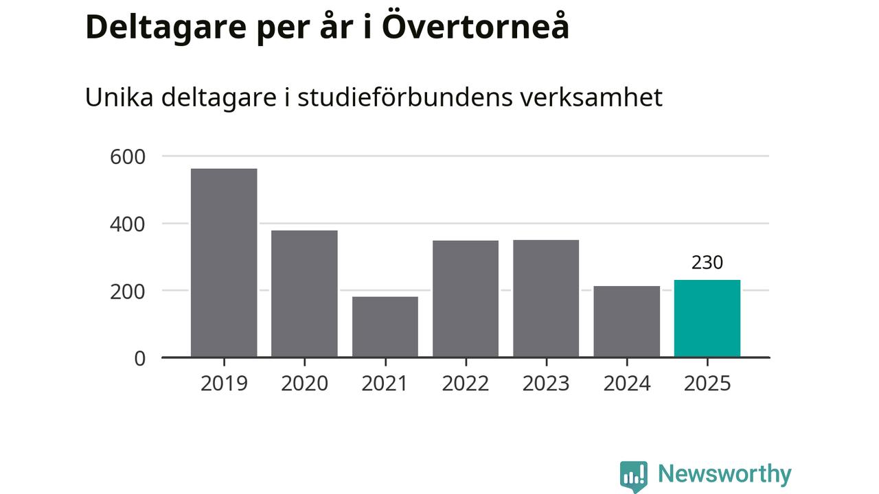 Antalet unika deltagare ökade i Övertorneå i fjol: från 213 till 230 personer. Det innebär att sex procent av befolkningen i kommunen deltog i studieförbundens verksamhet under 2025, vilket är ungefär som rikssnittet.