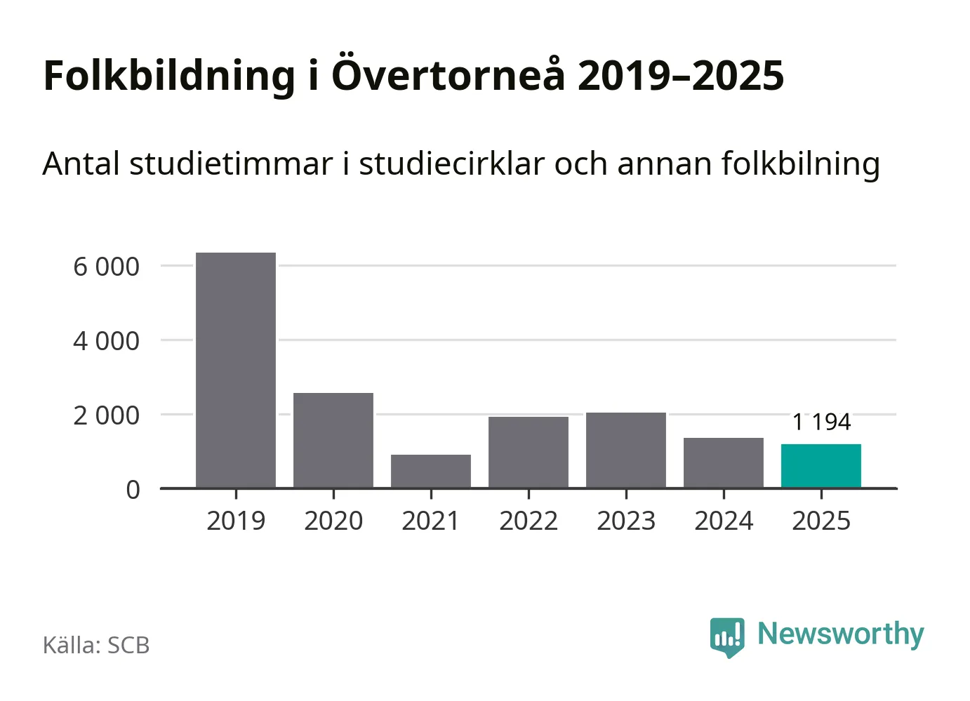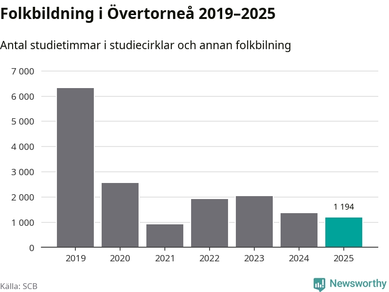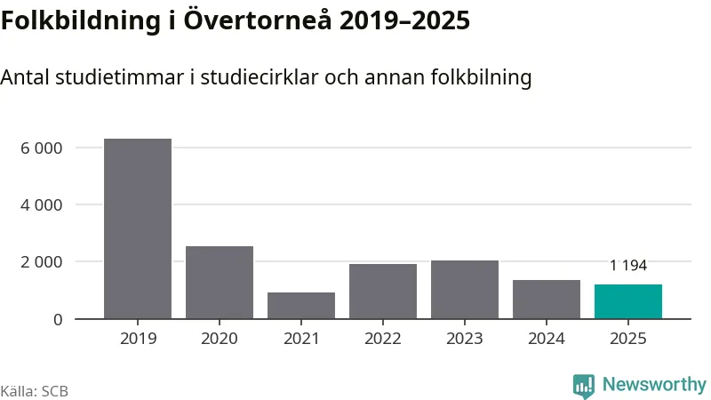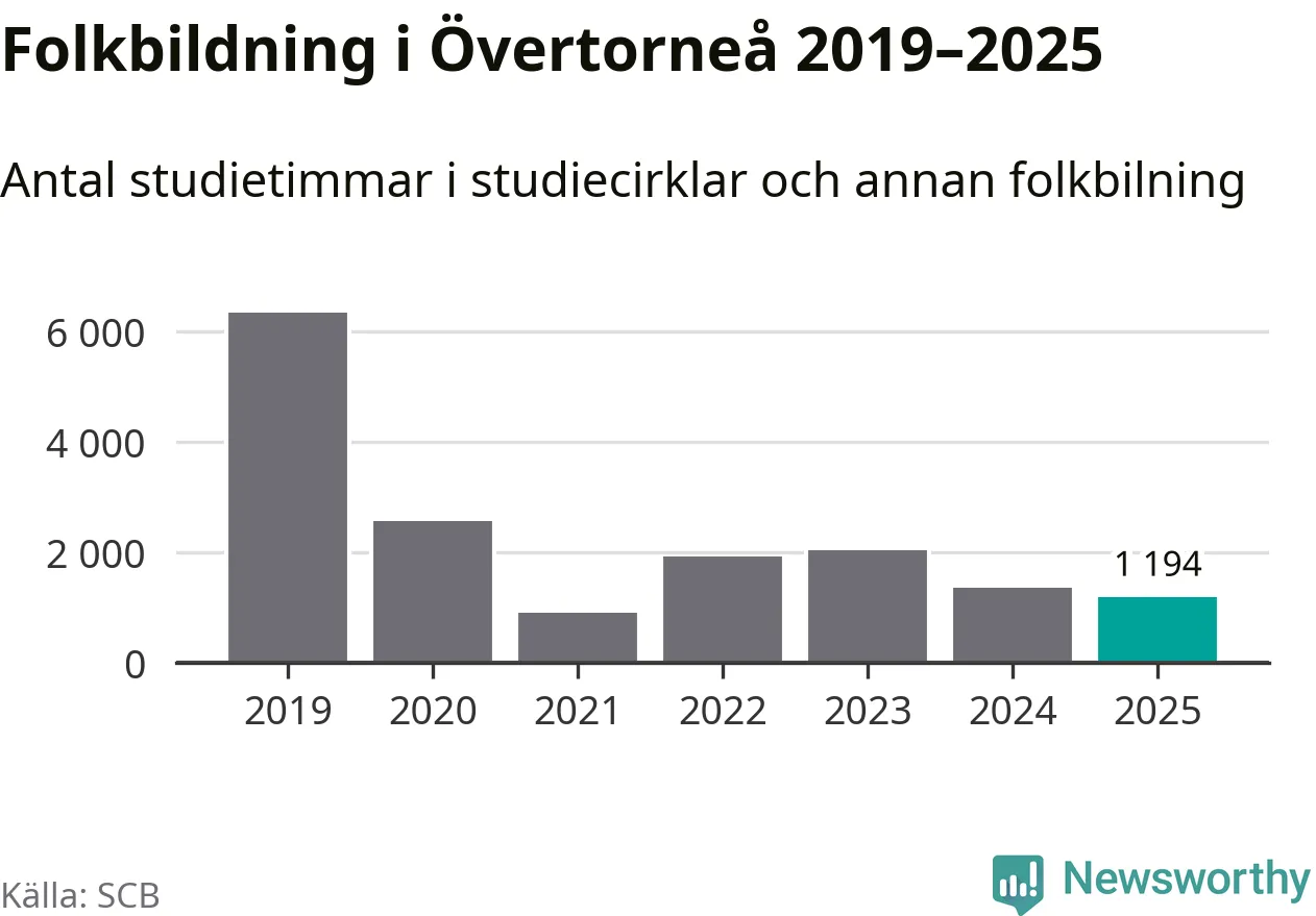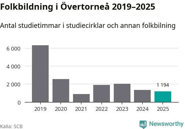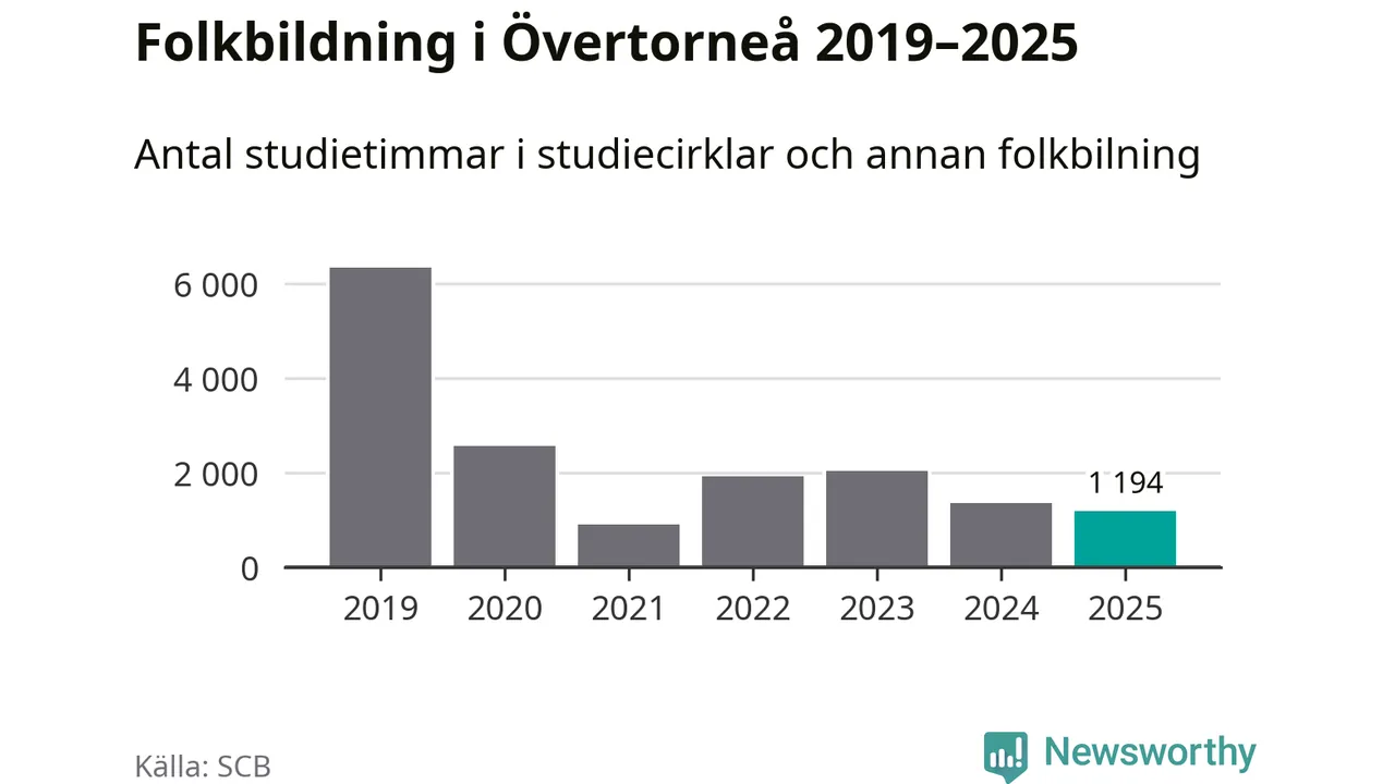 Studieförbunden drabbades hårt av pandemin. Även i Övertorneå noterades det lägsta antalet studietimmar under 2021, som då var 86 procent färre än 2019. År 2024 var antalet studietimmar åter högre men de var fortfarande långt från förpandeminivåerna.