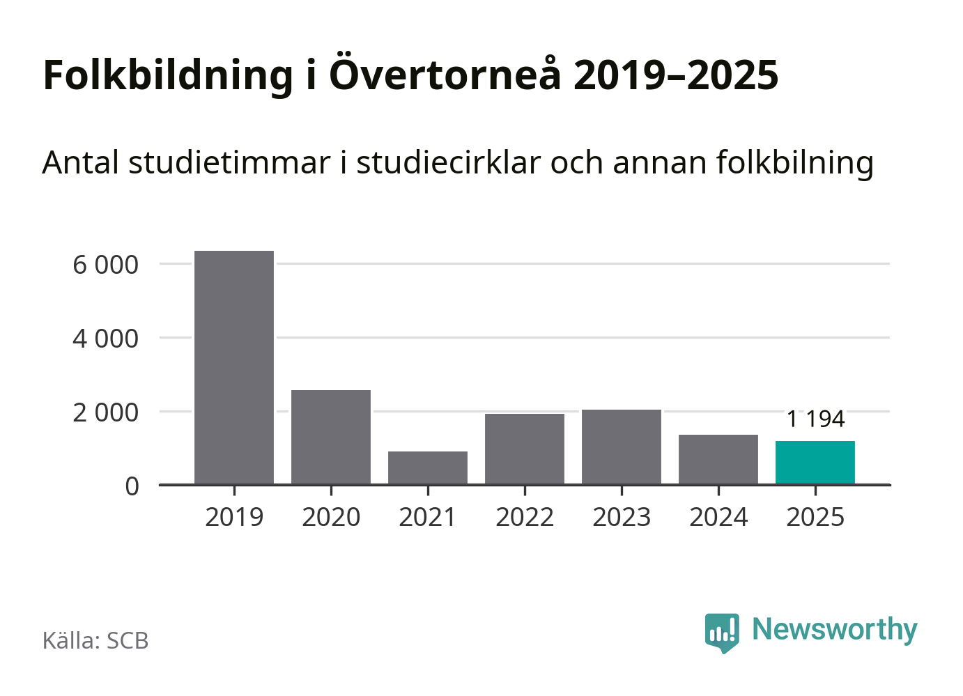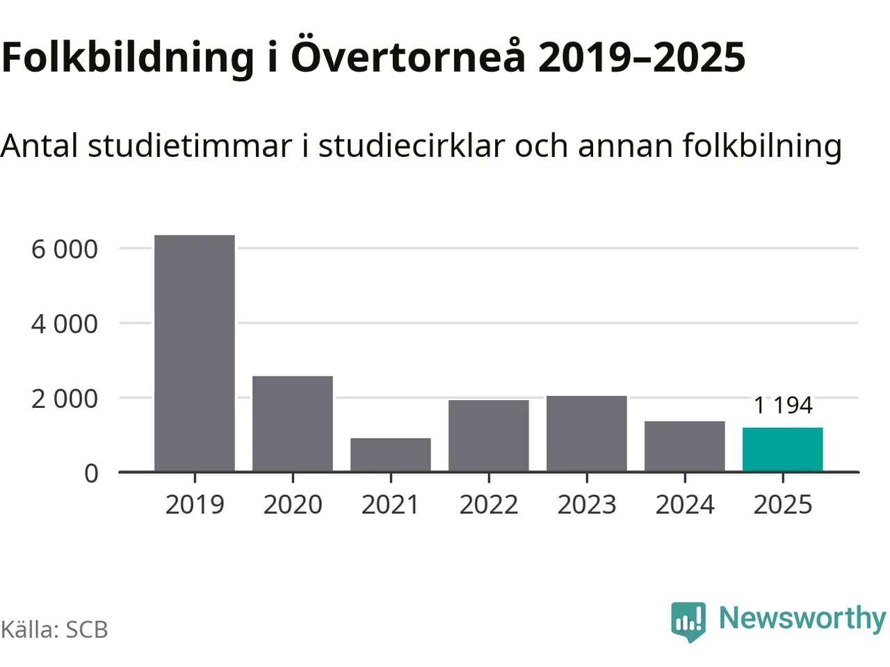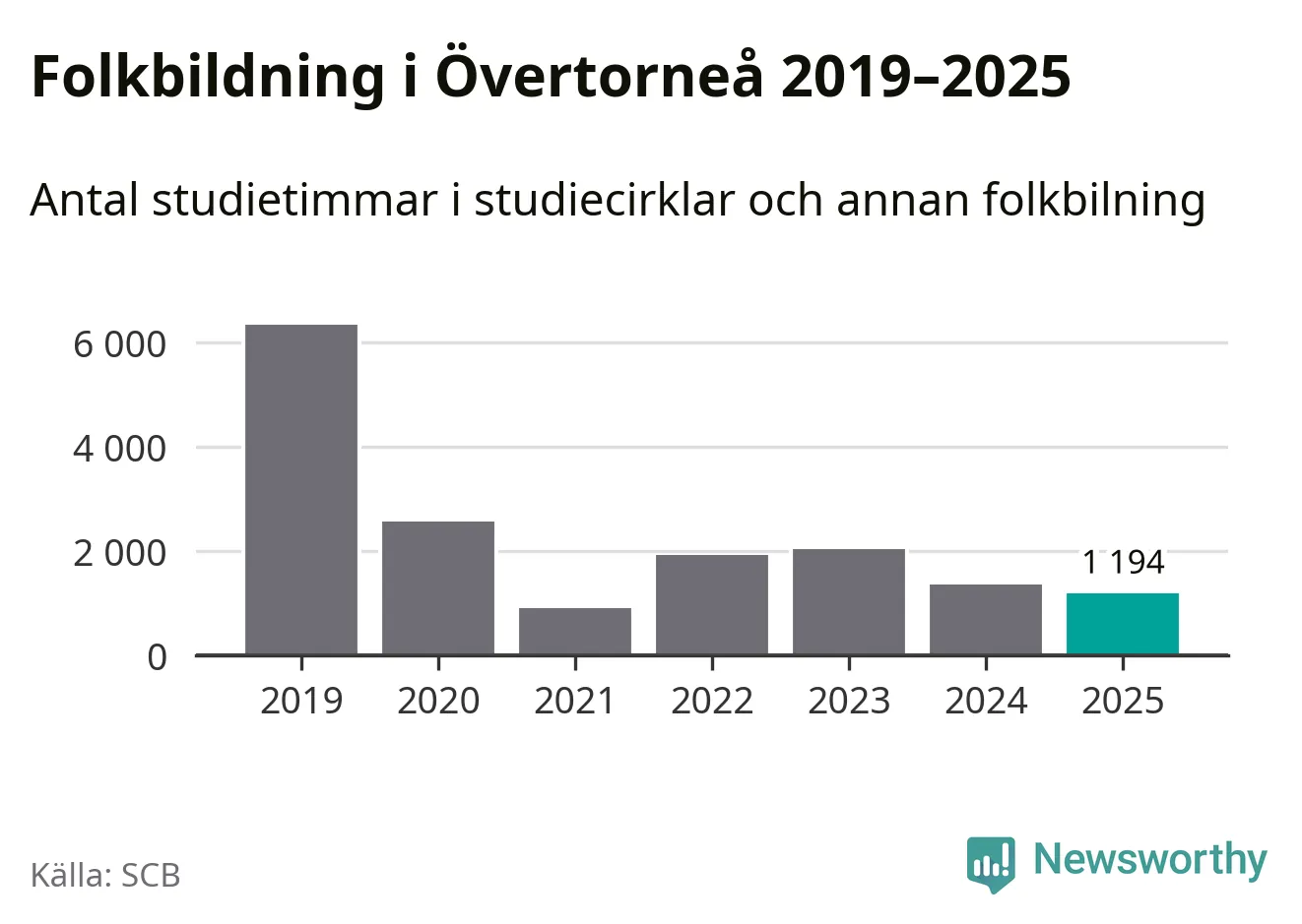 Studieförbunden drabbades hårt av pandemin. Även i Övertorneå noterades det lägsta antalet studietimmar under 2021, som då var 86 procent färre än 2019. År 2024 var antalet studietimmar åter högre men de var fortfarande långt från förpandeminivåerna.