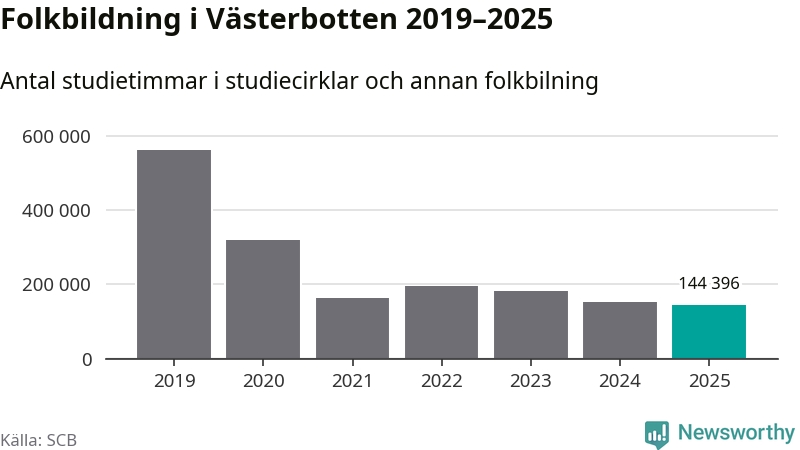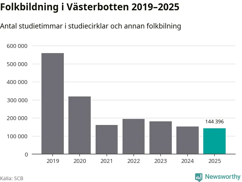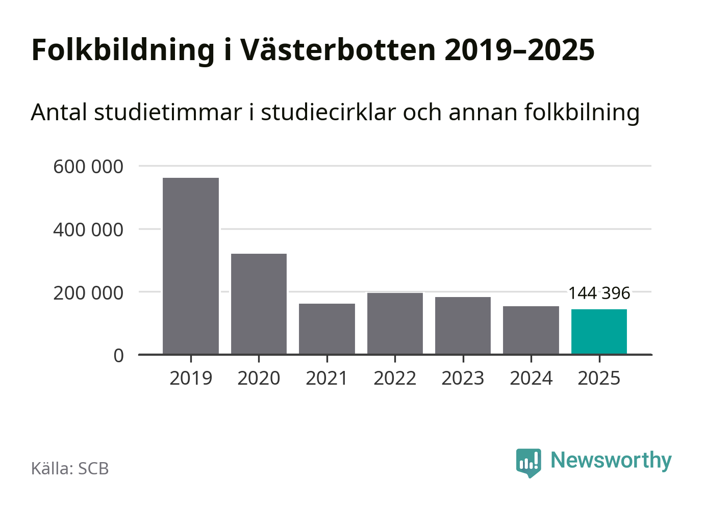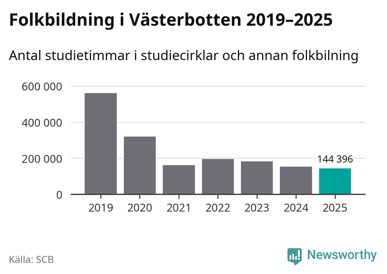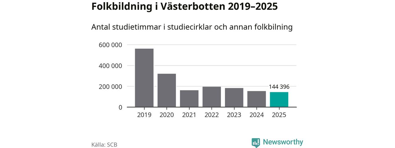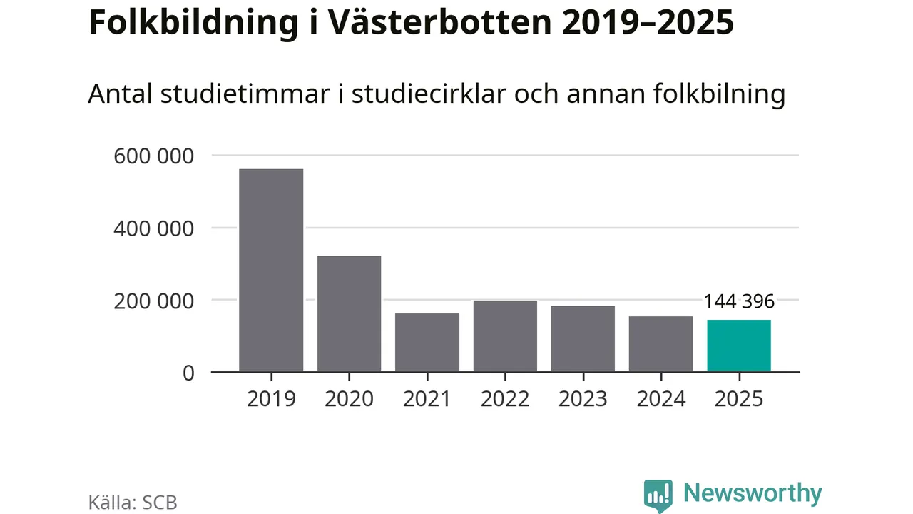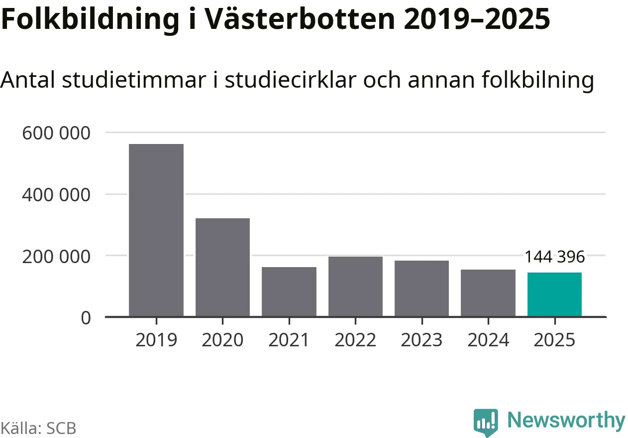 Studieförbunden drabbades hårt av pandemin. Även i Västerbotten noterades det lägsta antalet studietimmar under 2021, som då var 71 procent färre än 2019 – vilket fortfarande är fler än 2025.
