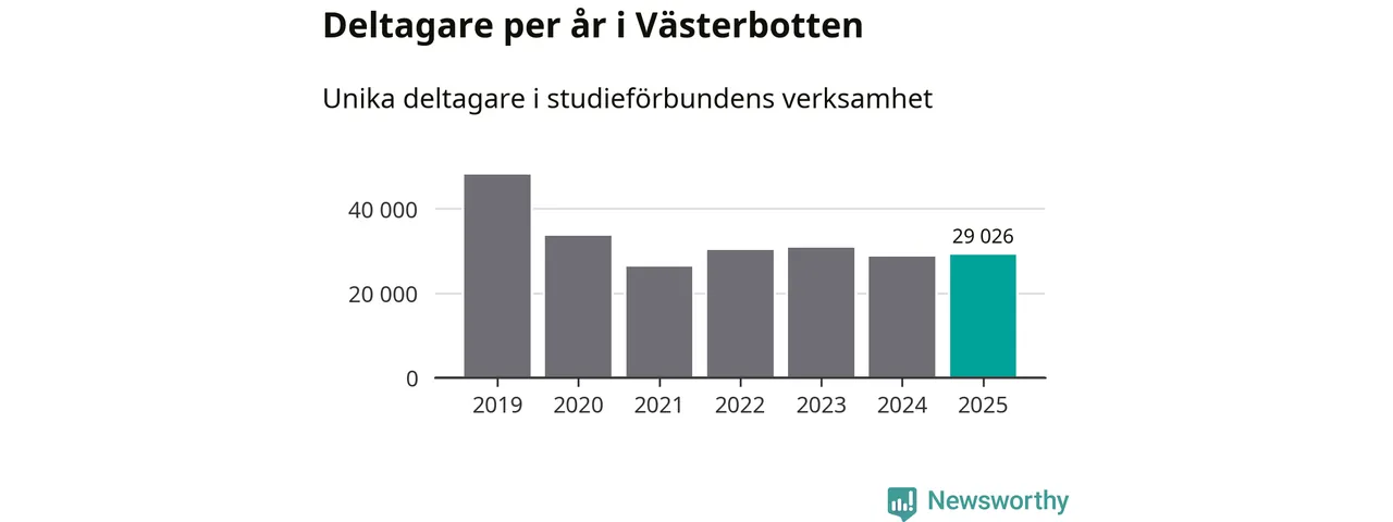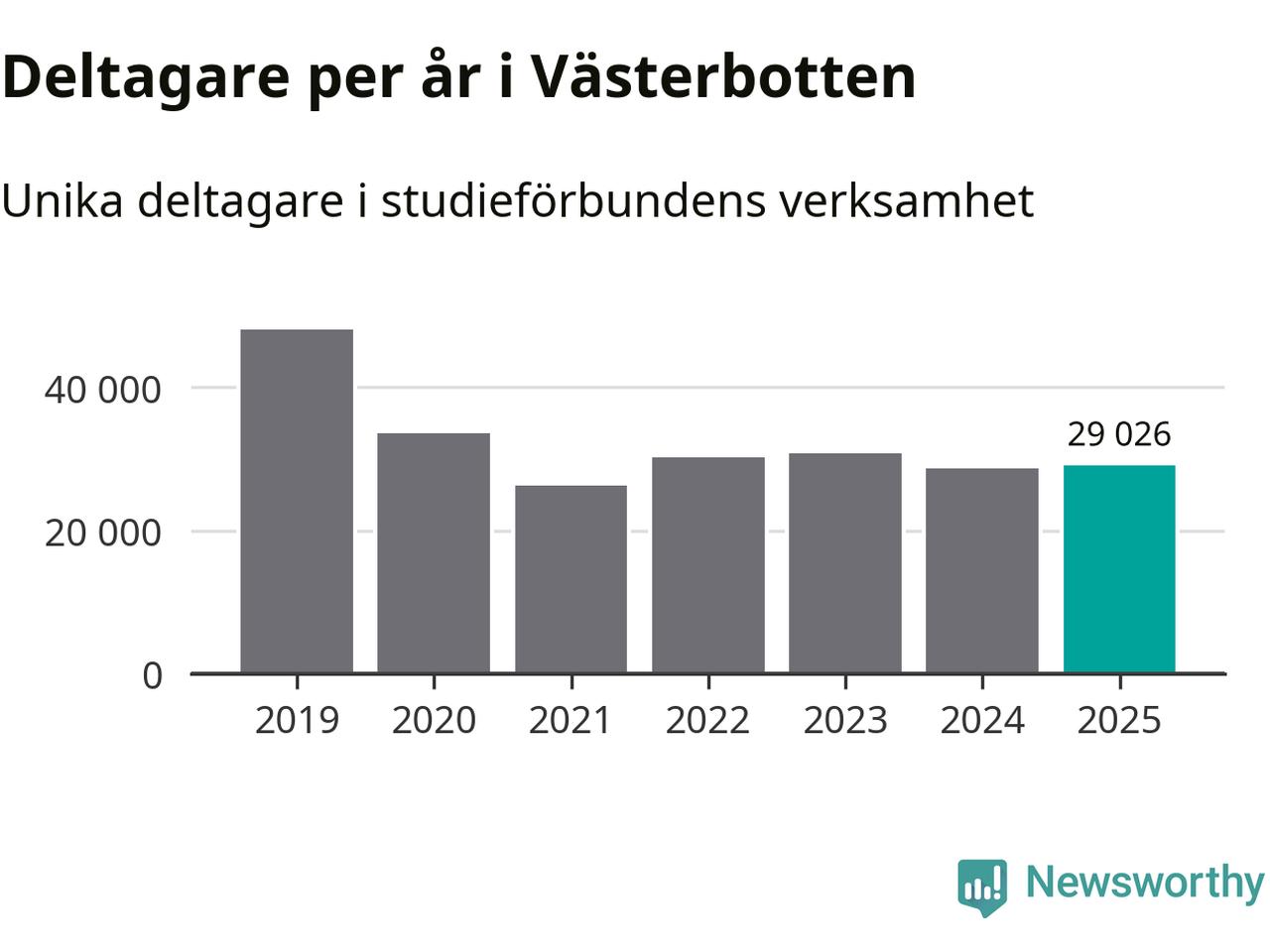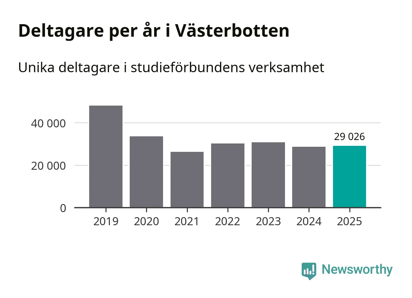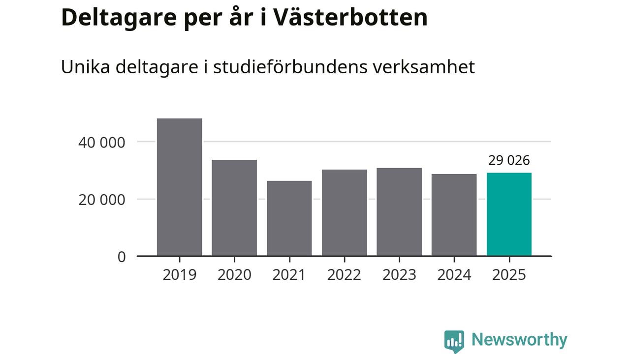 Omkring 29 000 västerbottningar deltog i någon form av folkbildning under 2025, vilket är ungefär lika många som året innan. Det innebär att var tionde invånare i länet deltog i studieförbundens verksamhet under 2025. Det är den näst högsta andelen i landet.
