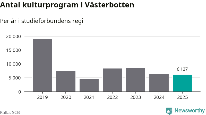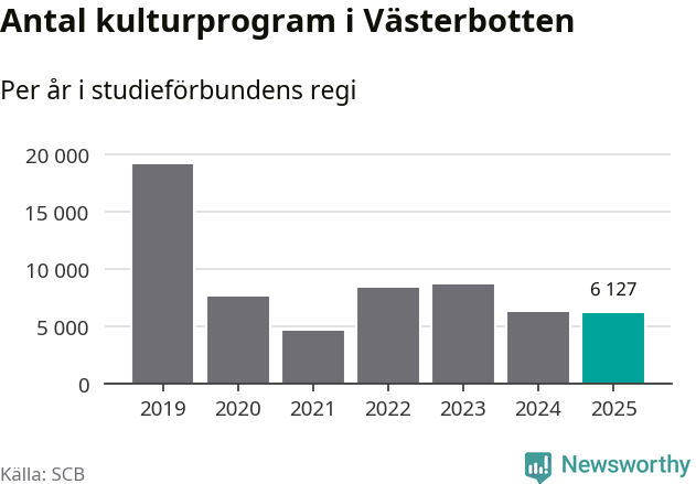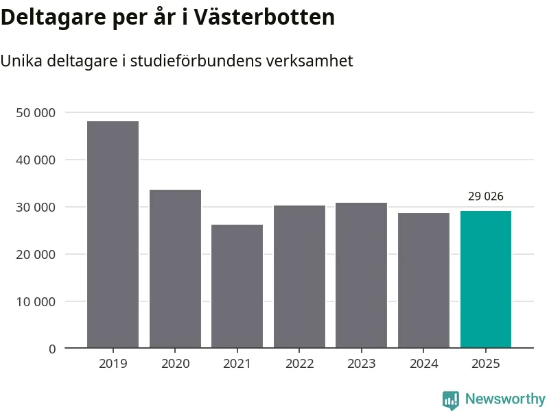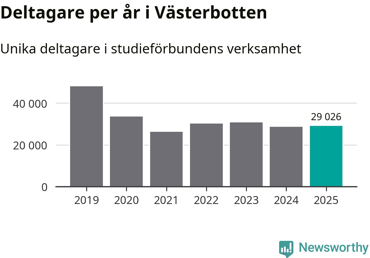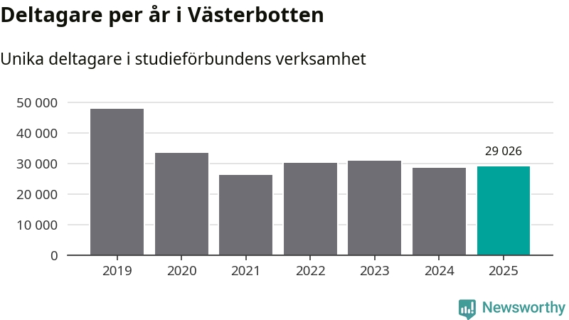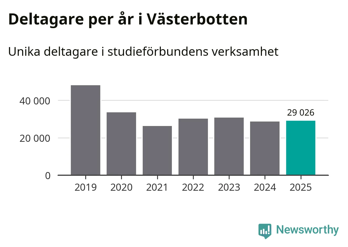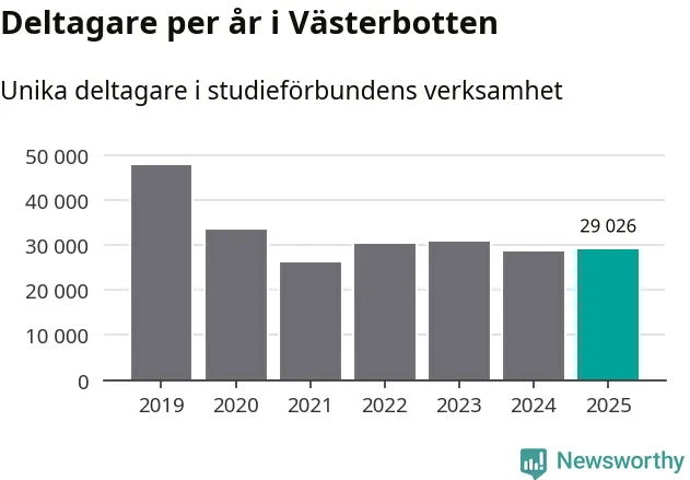 Omkring 29 000 västerbottningar deltog i någon form av folkbildning under 2025, vilket är ungefär lika många som året innan. Det innebär att var tionde invånare i länet deltog i studieförbundens verksamhet under 2025. Det är den näst högsta andelen i landet.