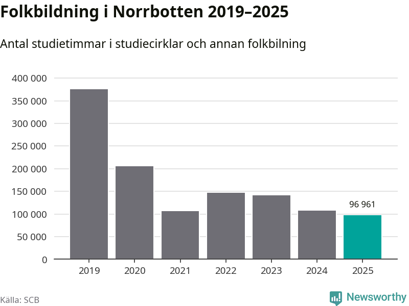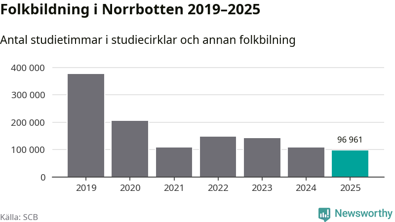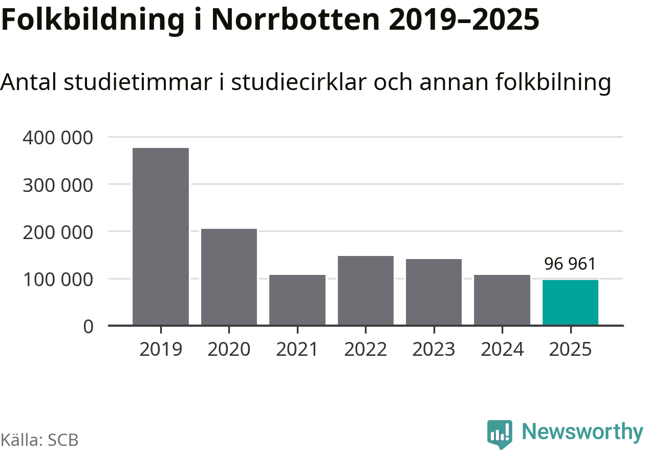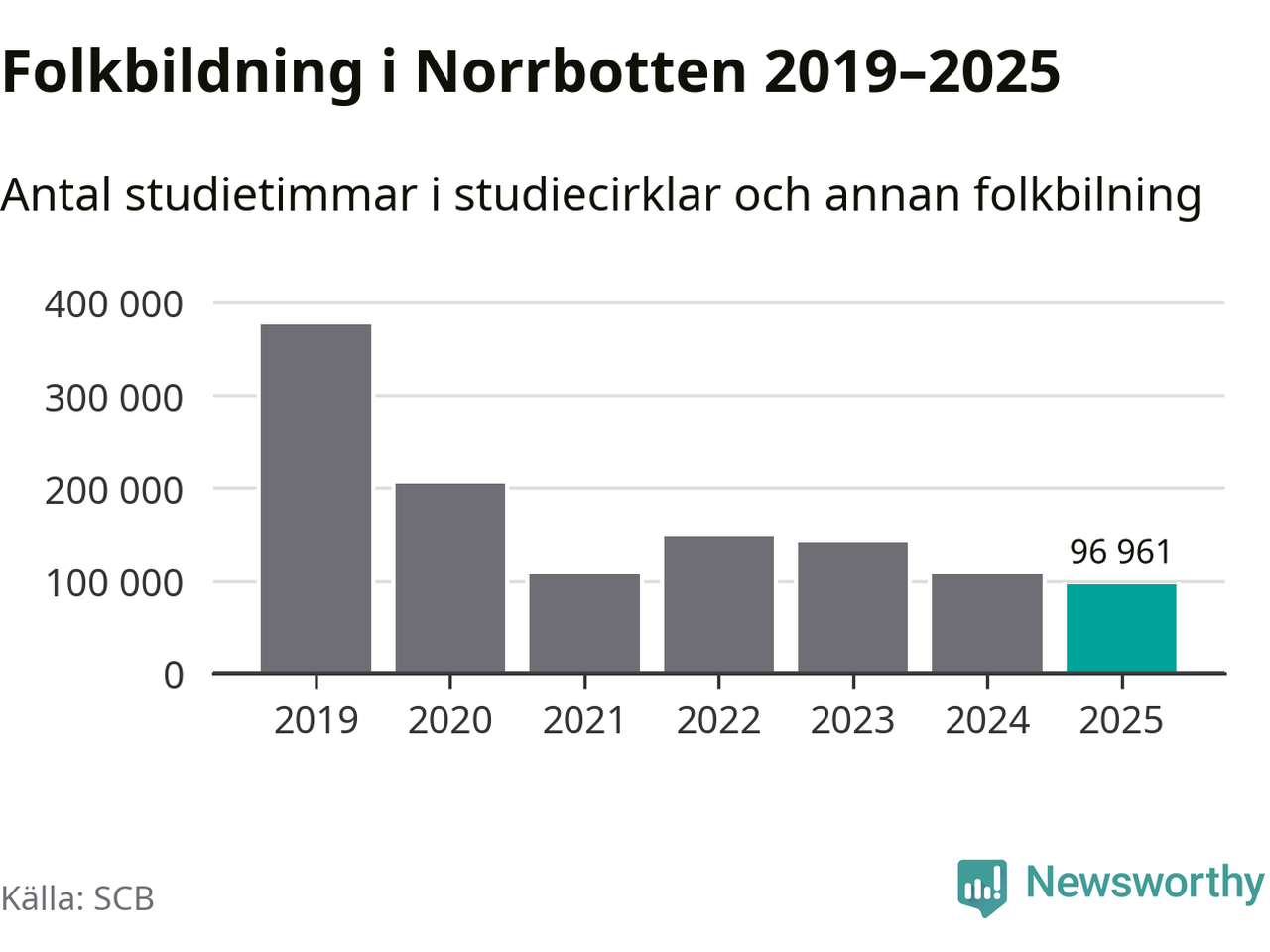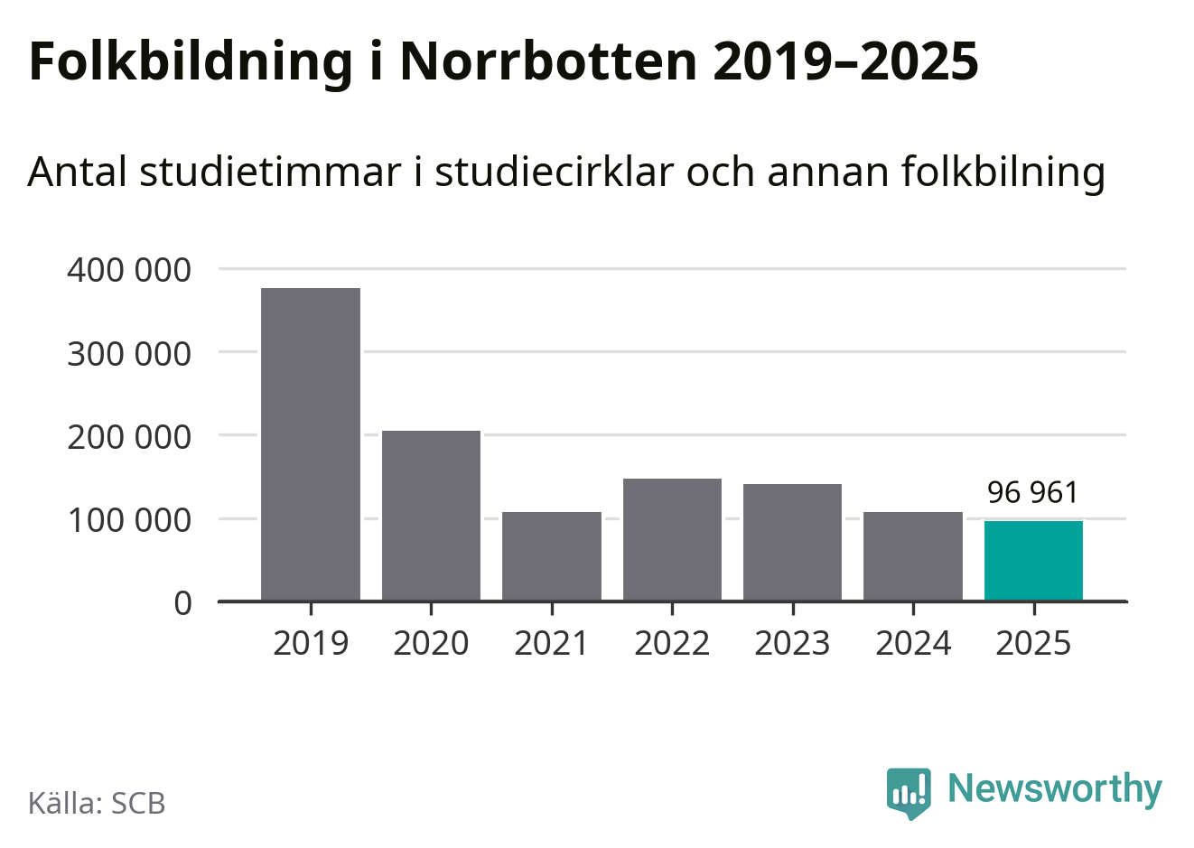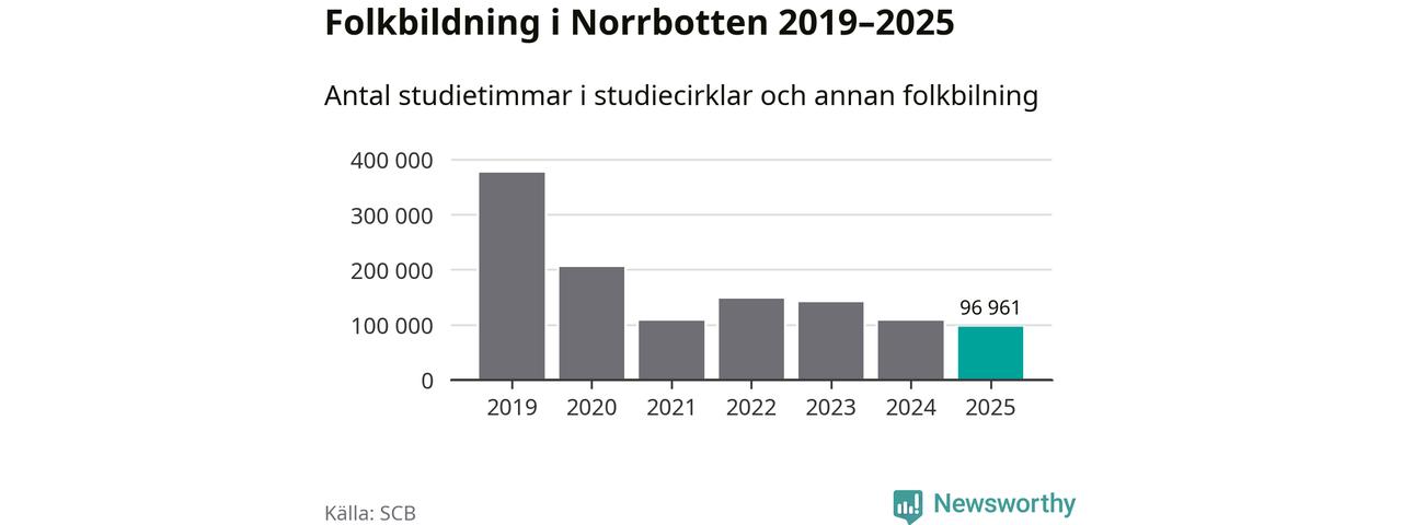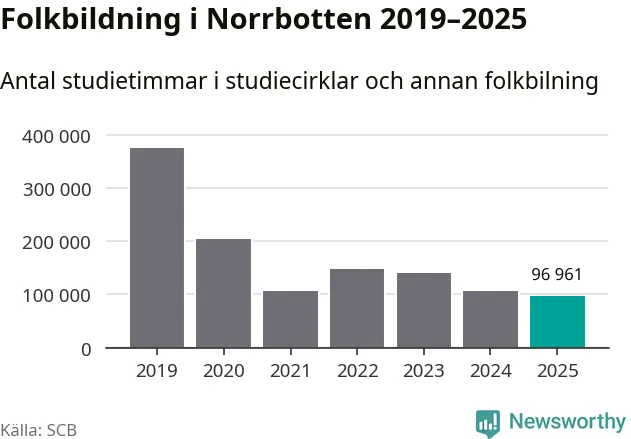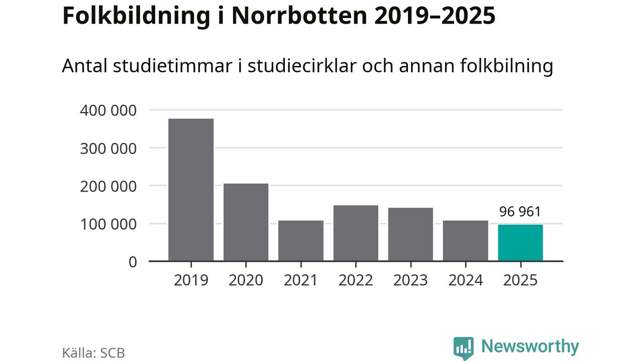 Studieförbunden drabbades hårt av pandemin. Även i Norrbotten noterades det lägsta antalet studietimmar under 2021, som då var 72 procent färre än 2019 – vilket fortfarande är fler än 2025.