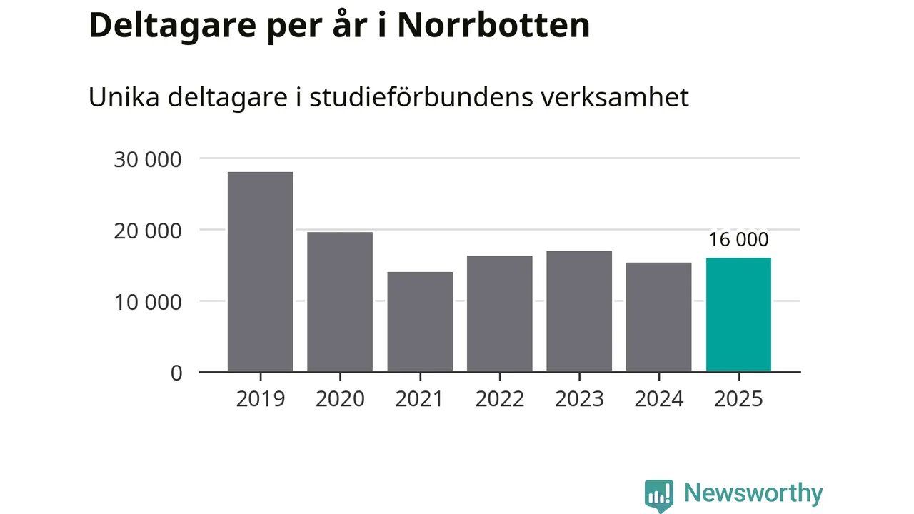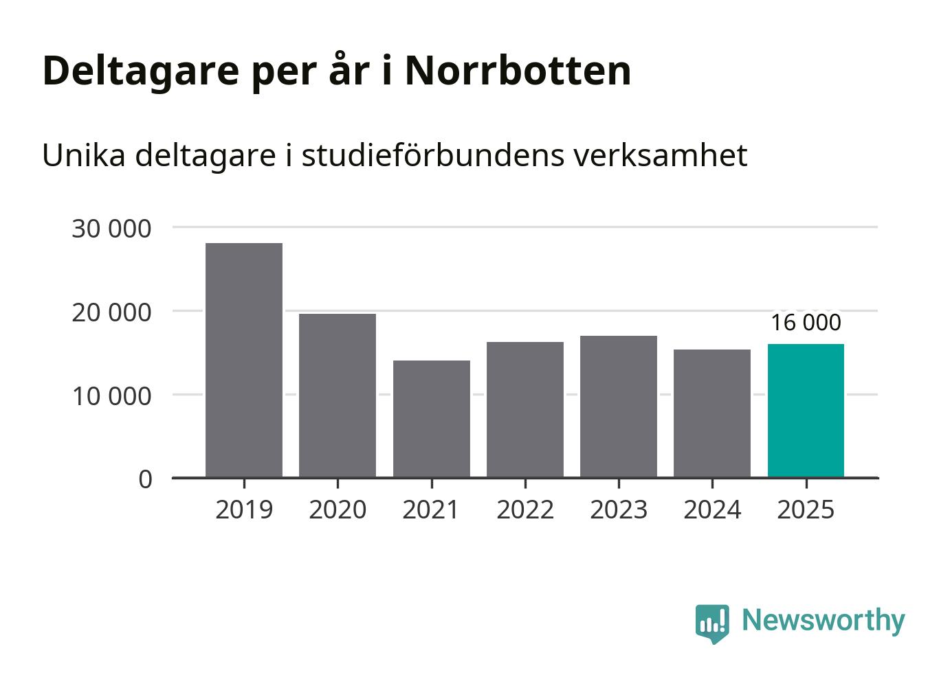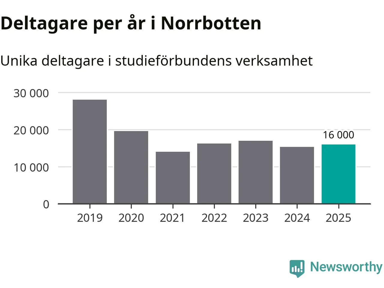 Antalet unika deltagare ökade i Norrbotten i fjol: från 15 355 till 16 000 personer. Det innebär att sex procent av befolkningen i länet deltog i studieförbundens verksamhet under 2025, vilket är ungefär som rikssnittet.